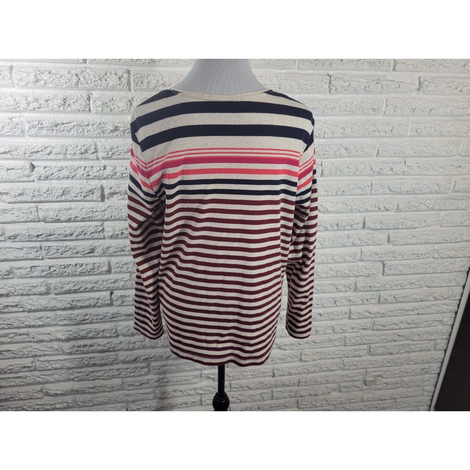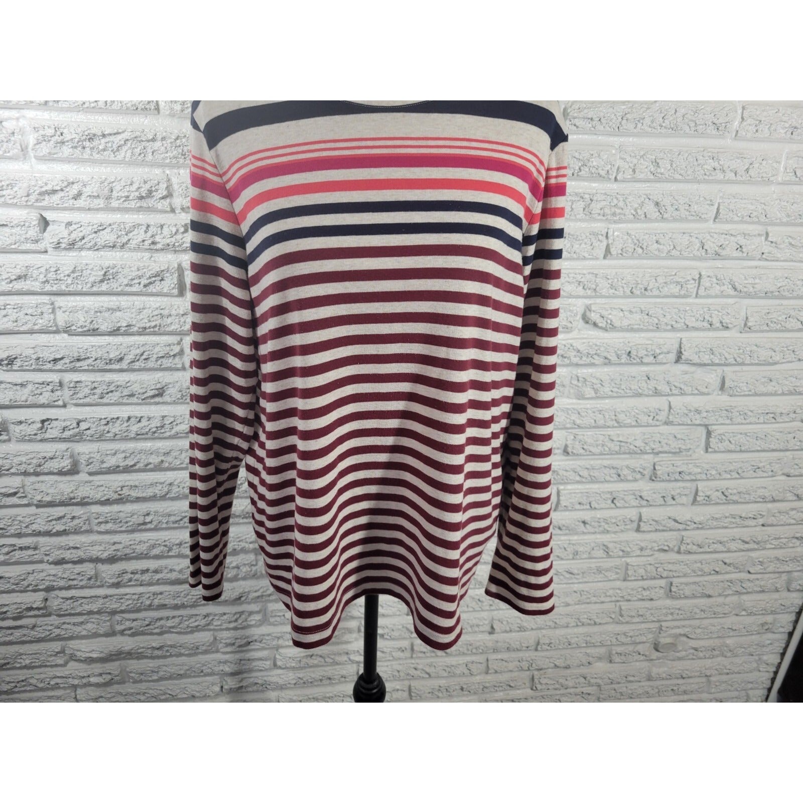 Croft Barrow Womens Top XXL Plus Tee Classic Brown Stripe Casual Long Sleeve