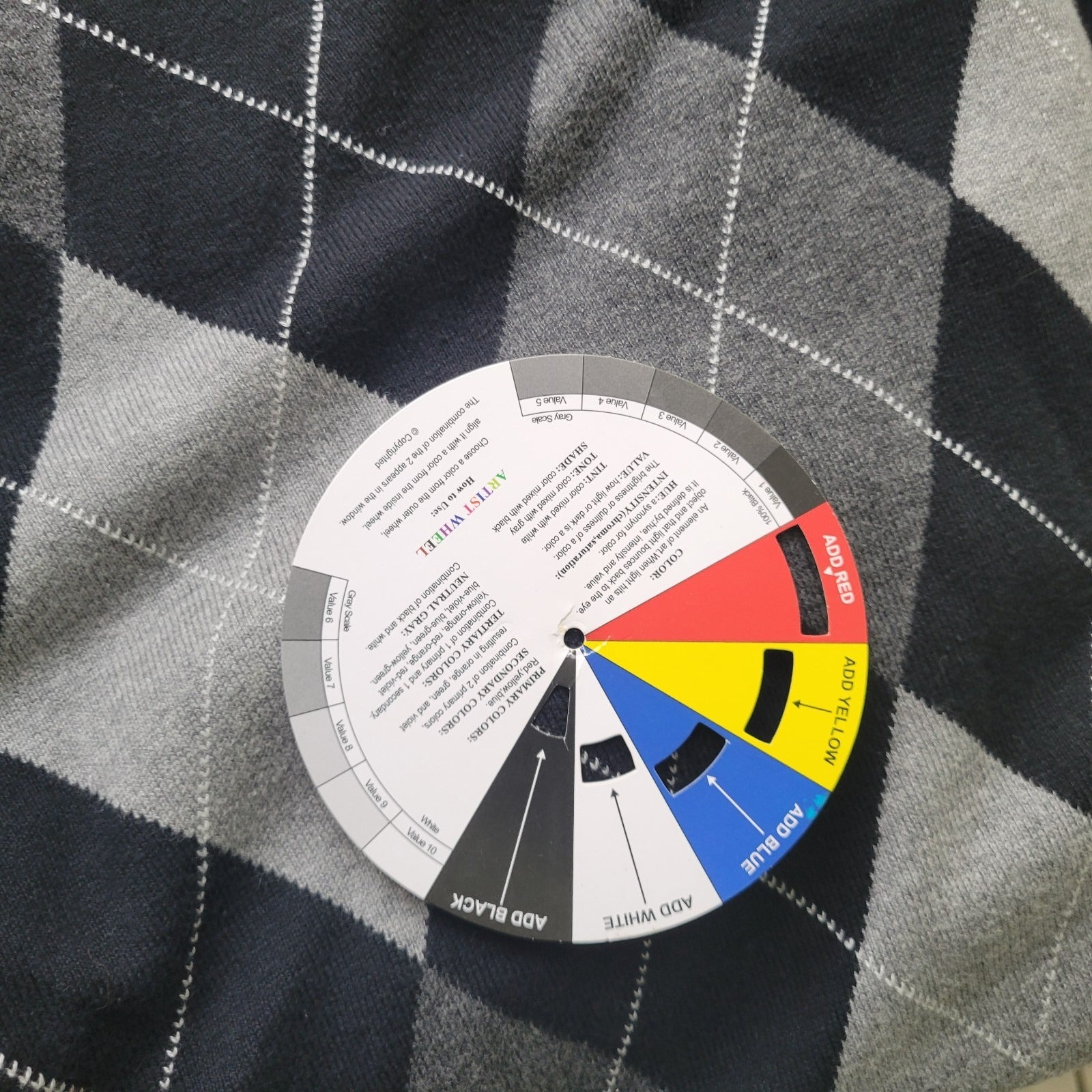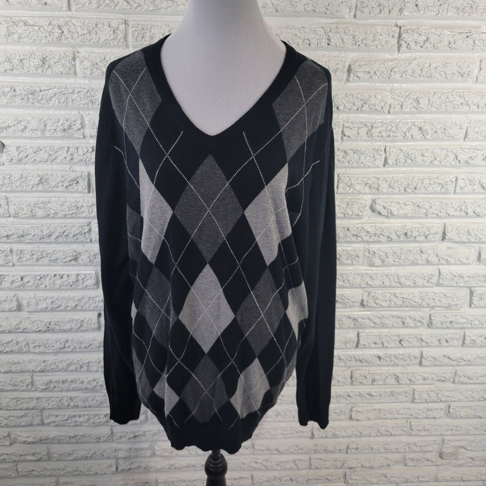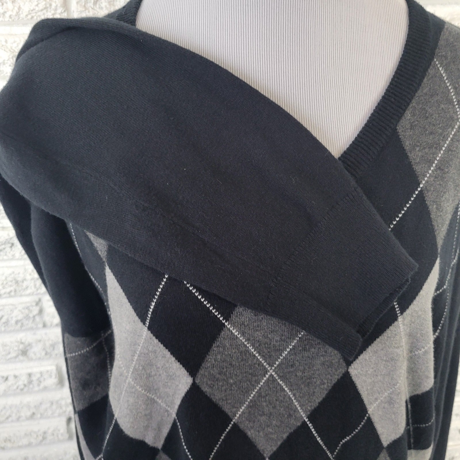 Croft & Barrow Women's XL Black Gray Argyle V-Neck Sweater Stretch Pullover