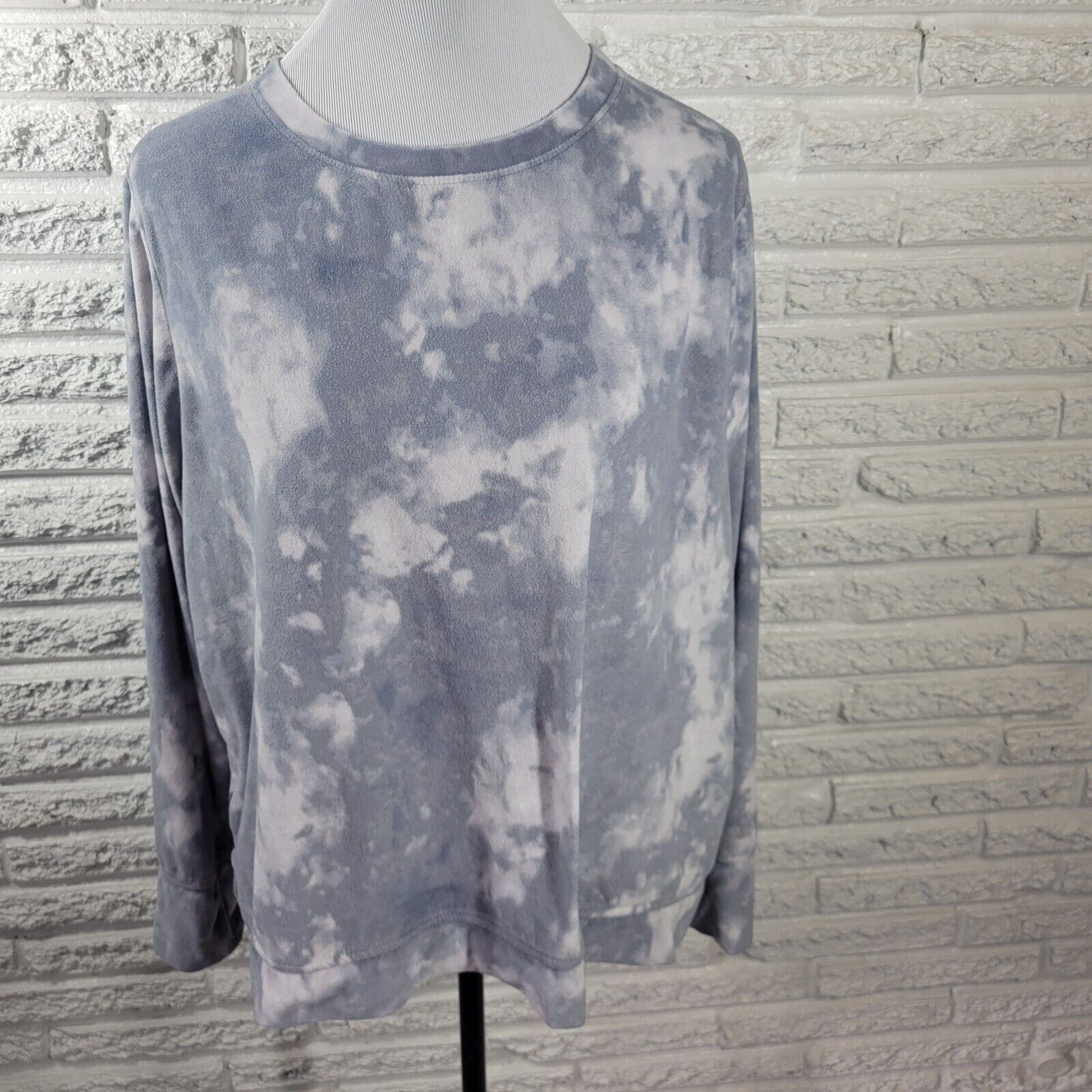 Cuddl Duds Women Sweatshirt Extra Large Pullover Gray Tie Dye Pajama Soft Fleece