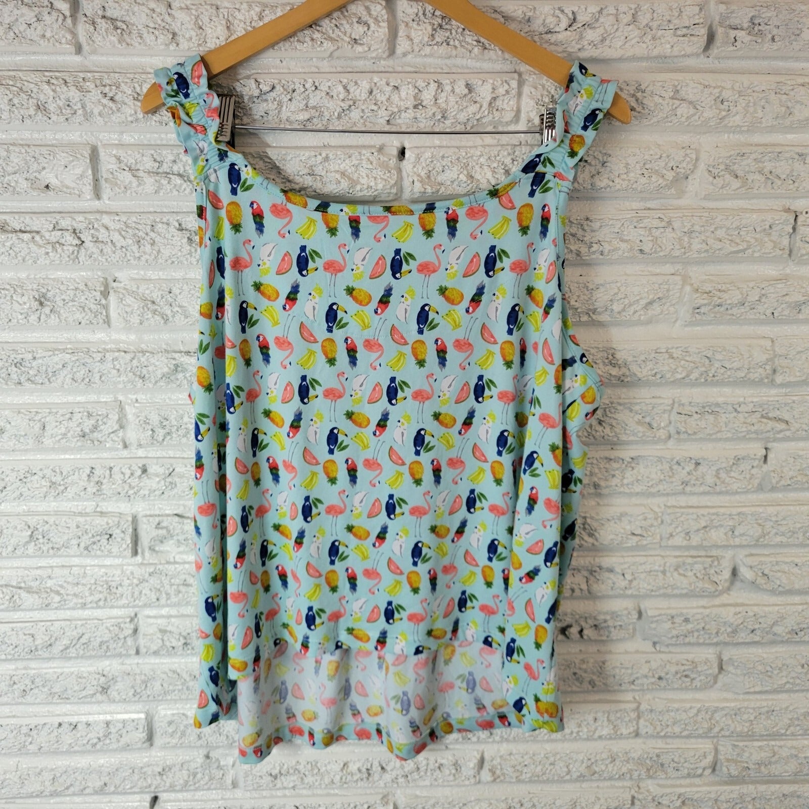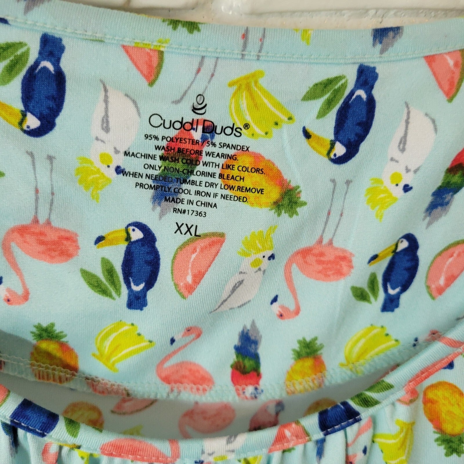 Cuddl Duds Womens Pajama Top XXL Plus Tank Toucan Flamingo Cockatoo Birds Blue
