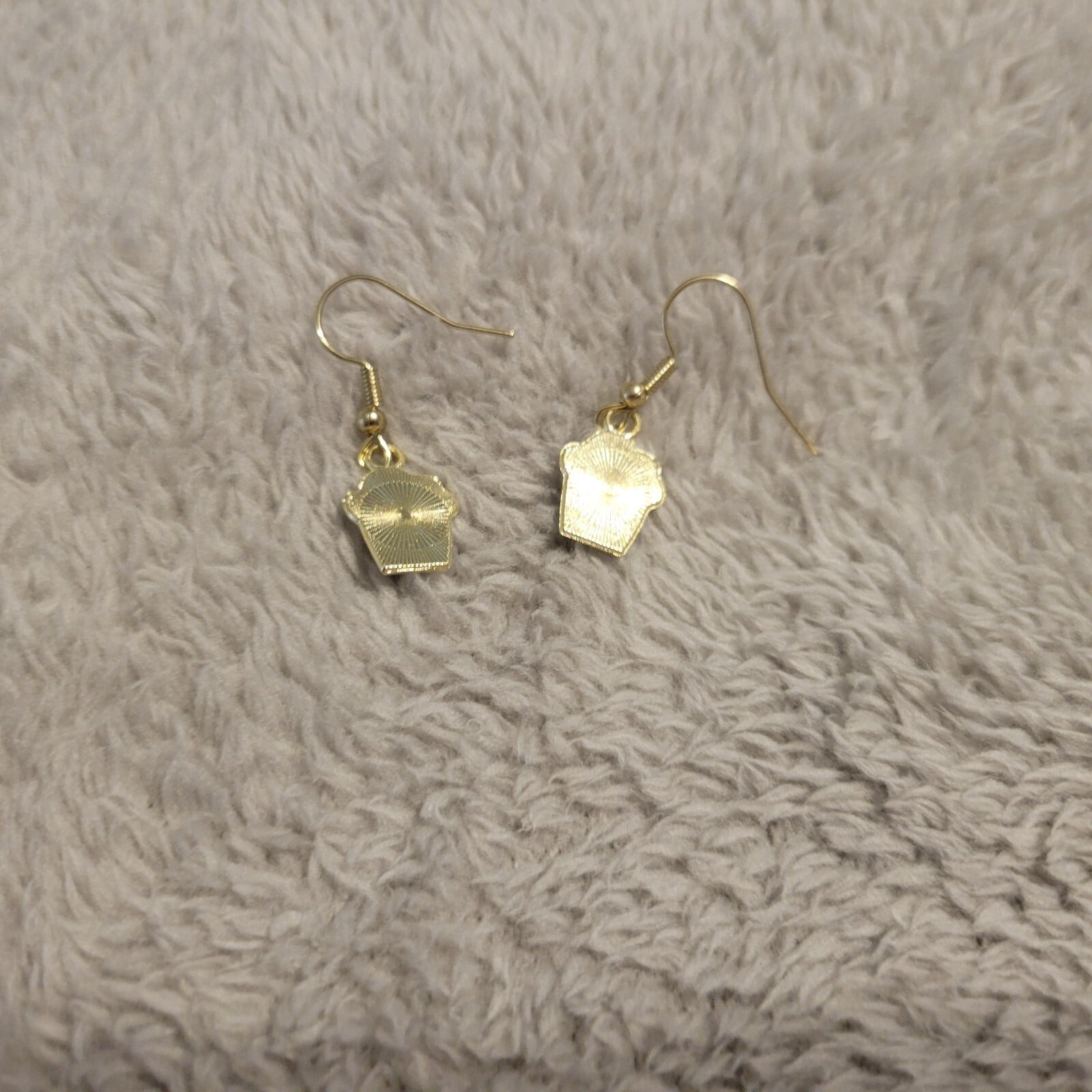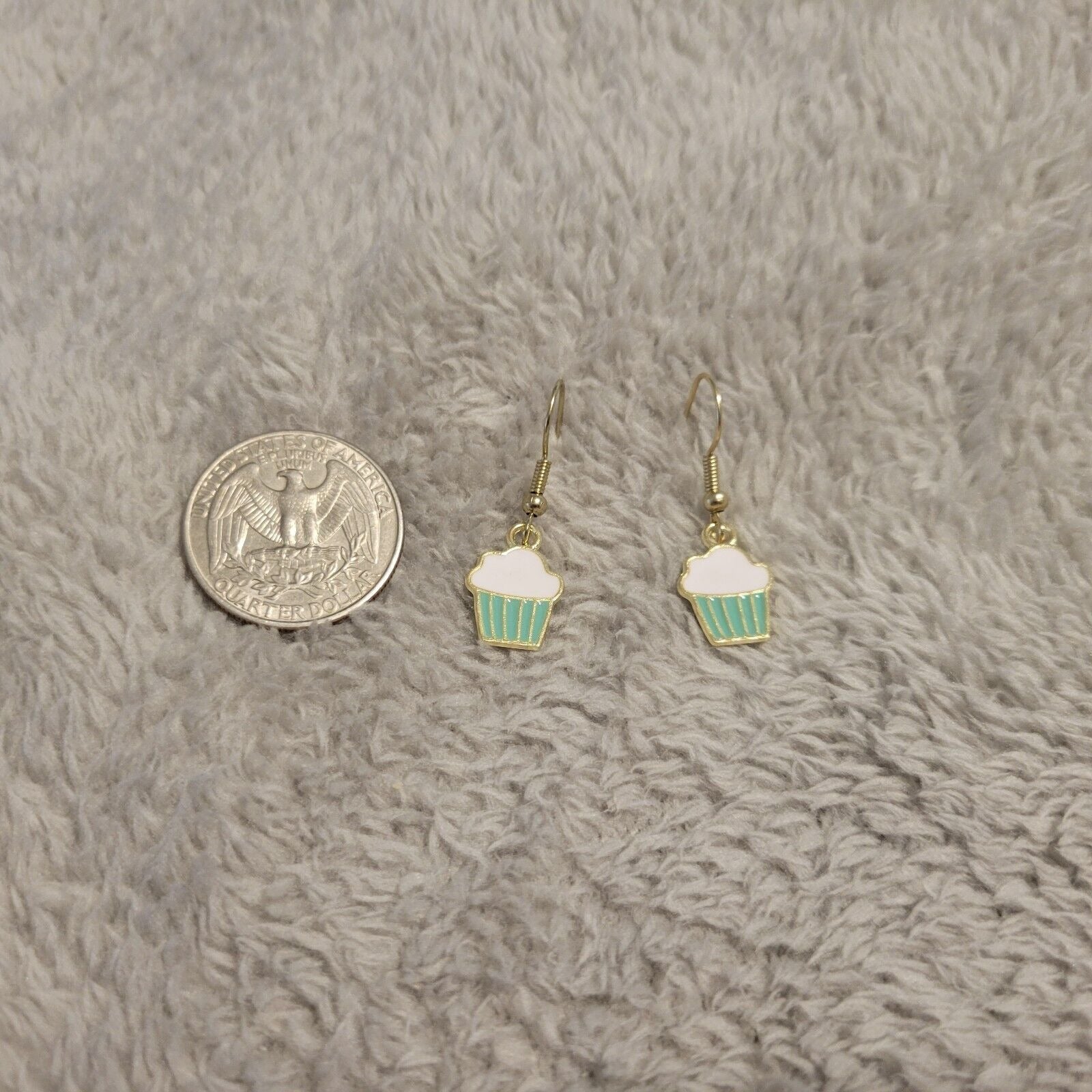 Cupcakes Earrings Gold Tone Green One Pair Sweets Novelty Fun
