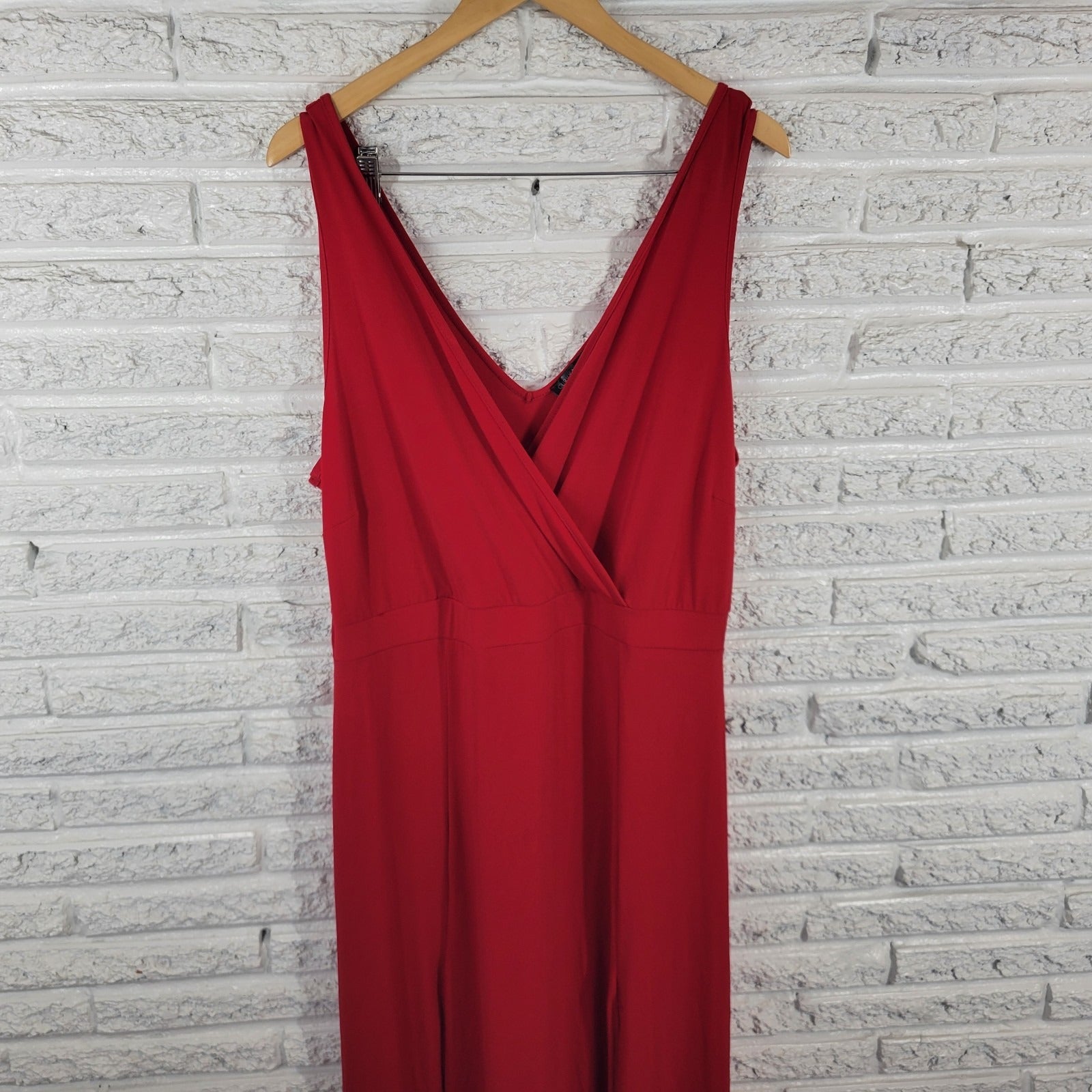 Curvy Sense Womens Dress 3X Plus Sleeveless Maxi Red Sheath Side Slit Poly Blend