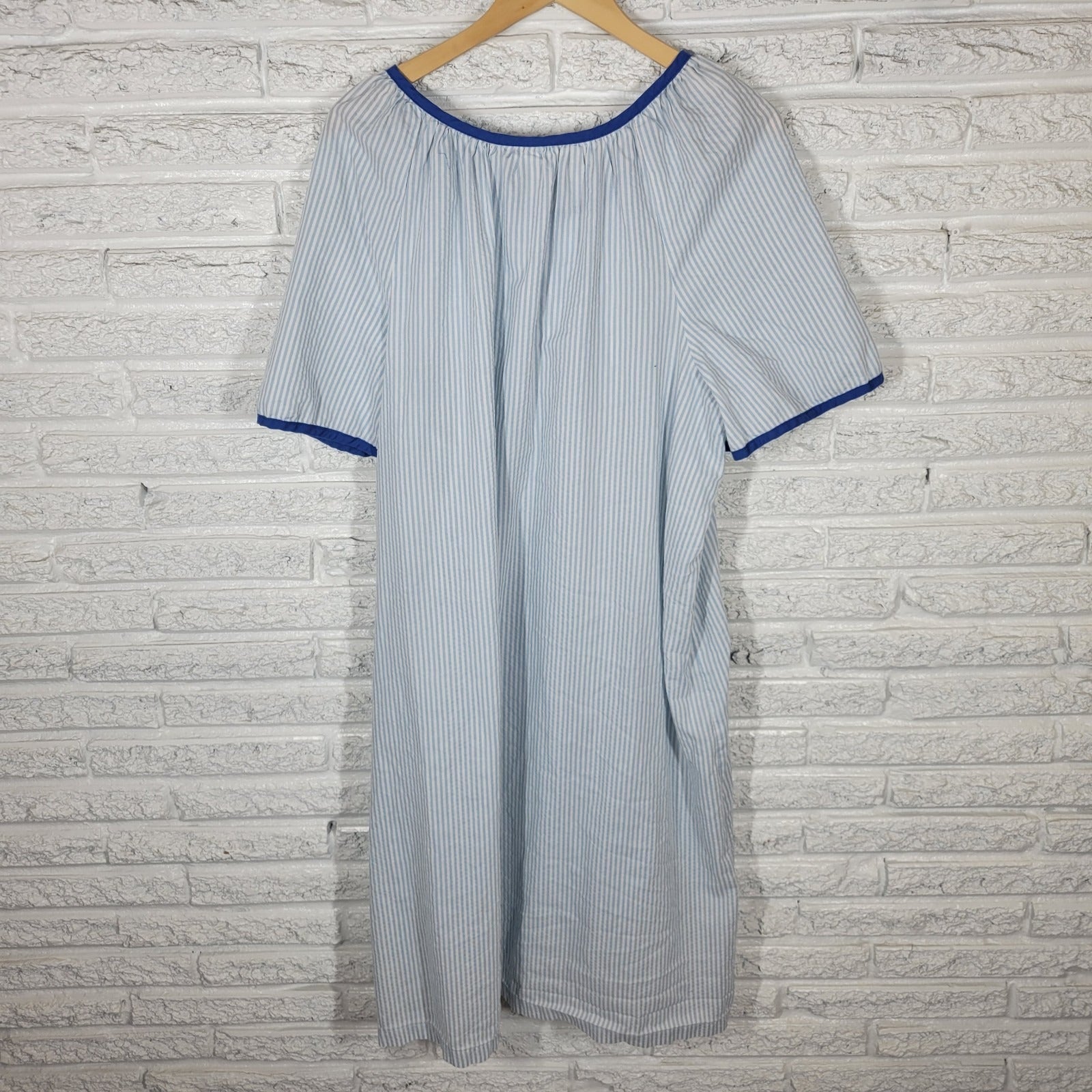 CW Classics Womens Dress 1X Plus House Loungewear Blue Stripe Lightweight Pocket