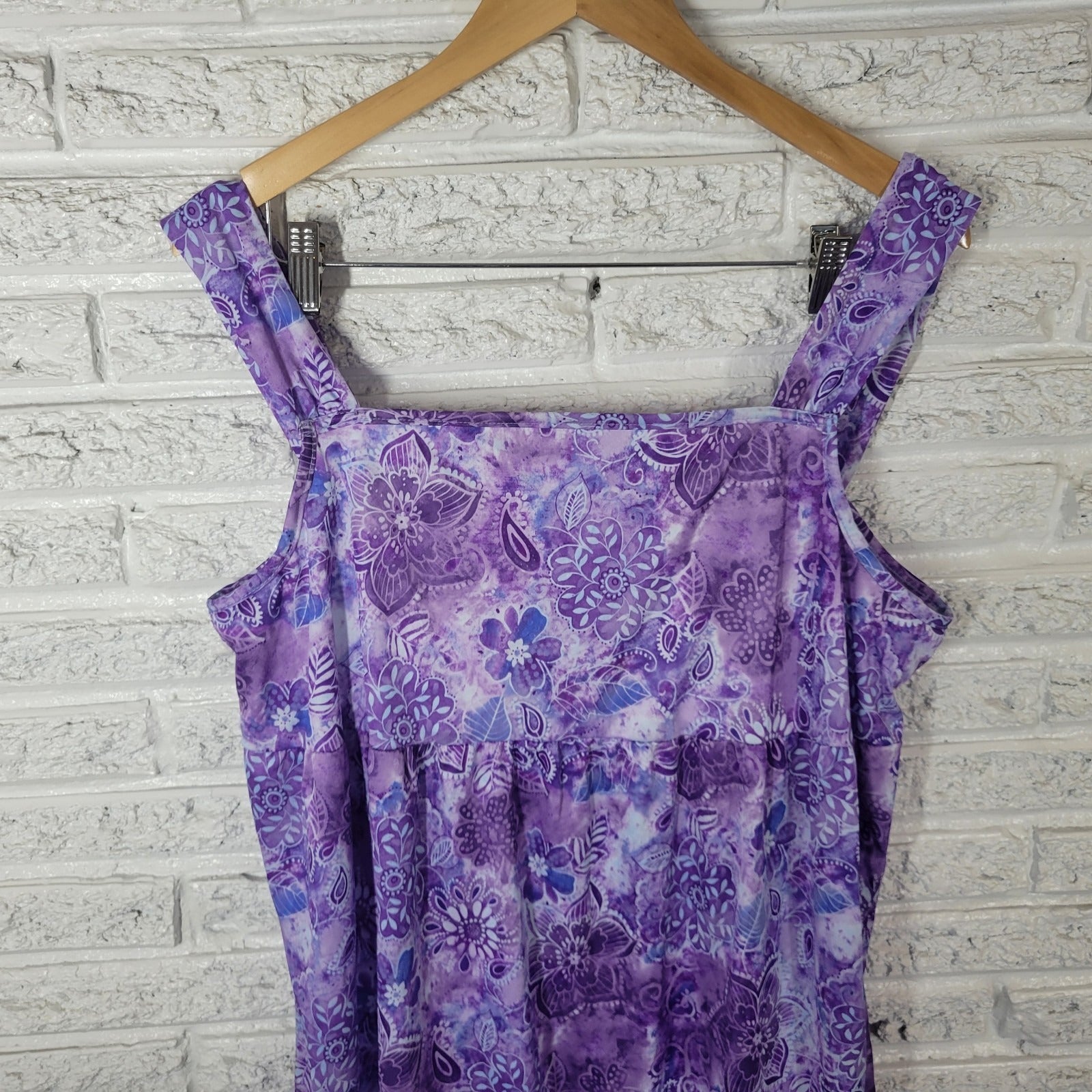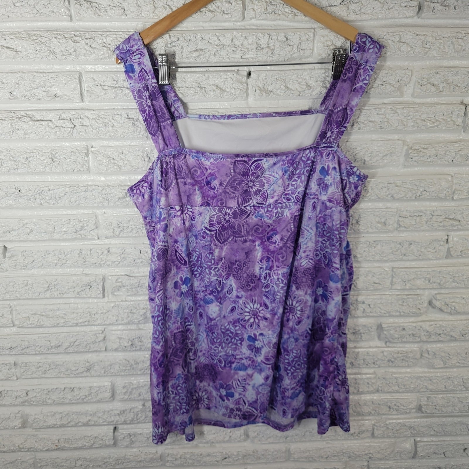 CW Classics Womens Top 2X Plus Swing Wide Strap Purple Floral Casual Lightweight
