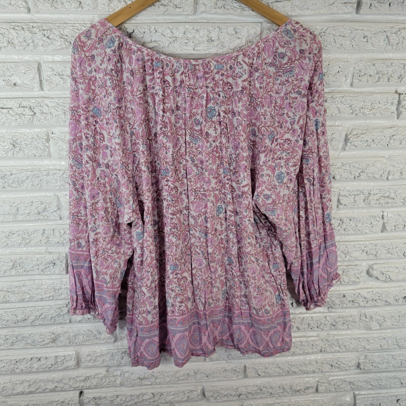 Cynthia Rowley Womens Top 3X Plus Peasant 3/4 Sleeve Pink Floral Lightweight