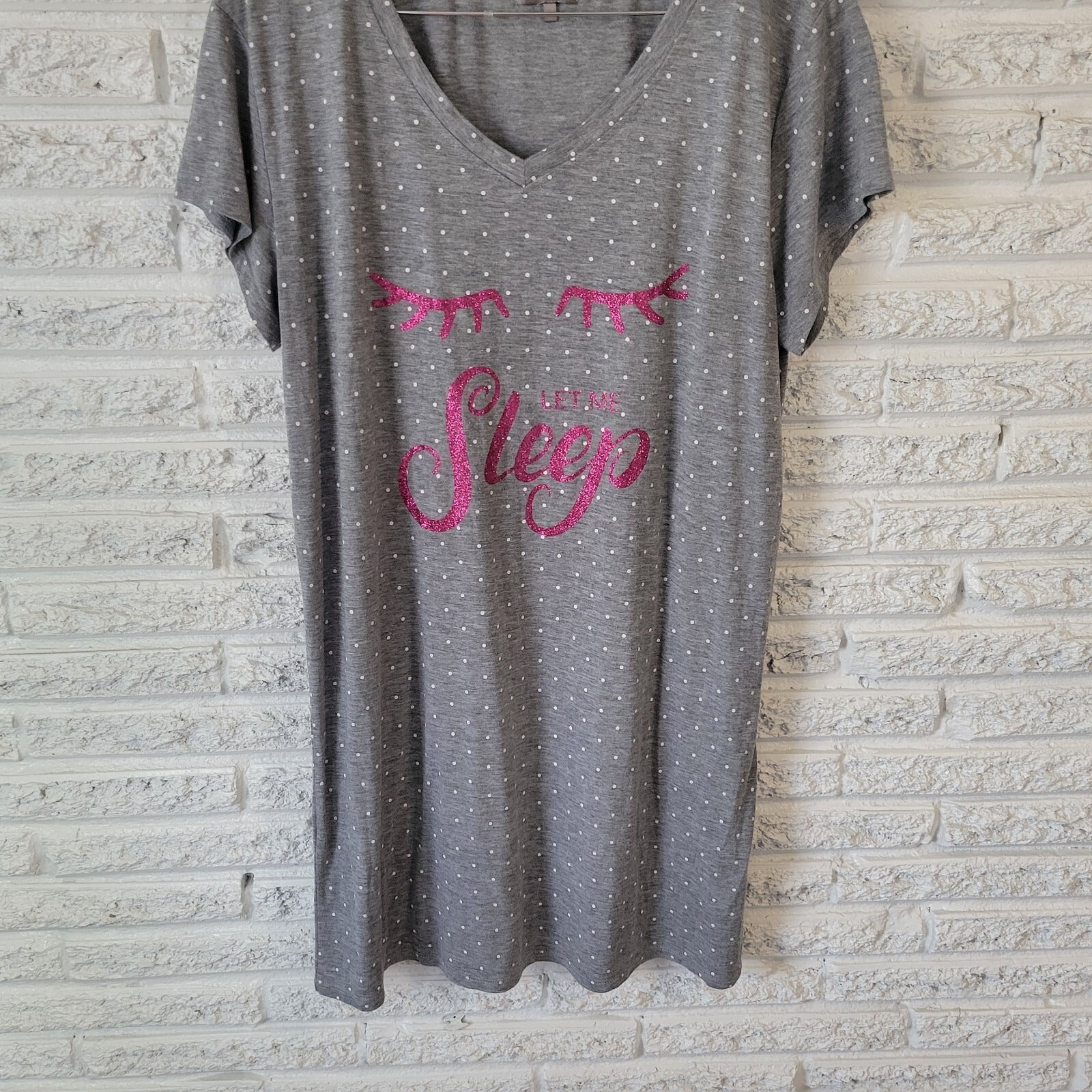 Daisy Fuentes Womens Nightgown 1X Plus Sleep Pajama Top Lightweight Gray Glitter