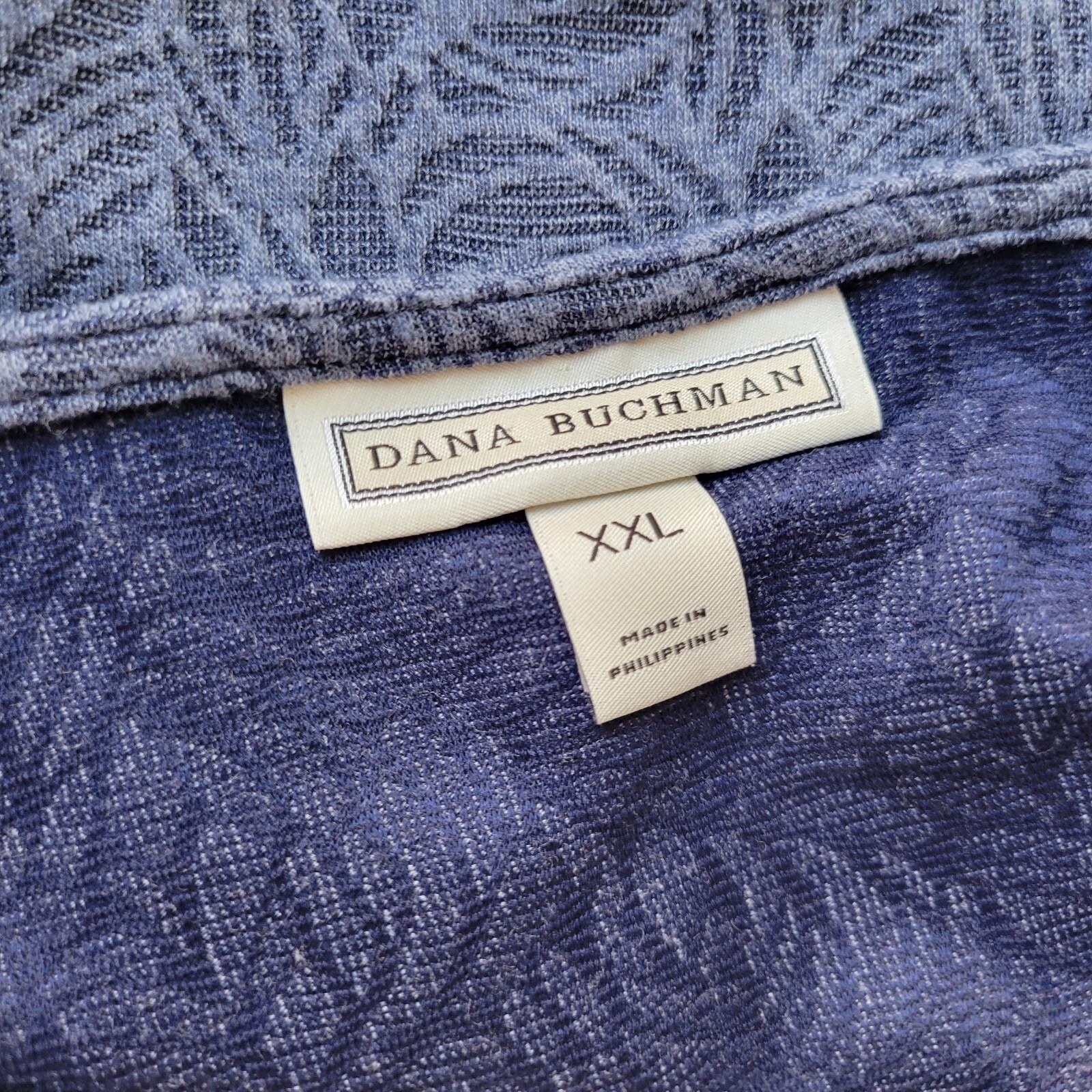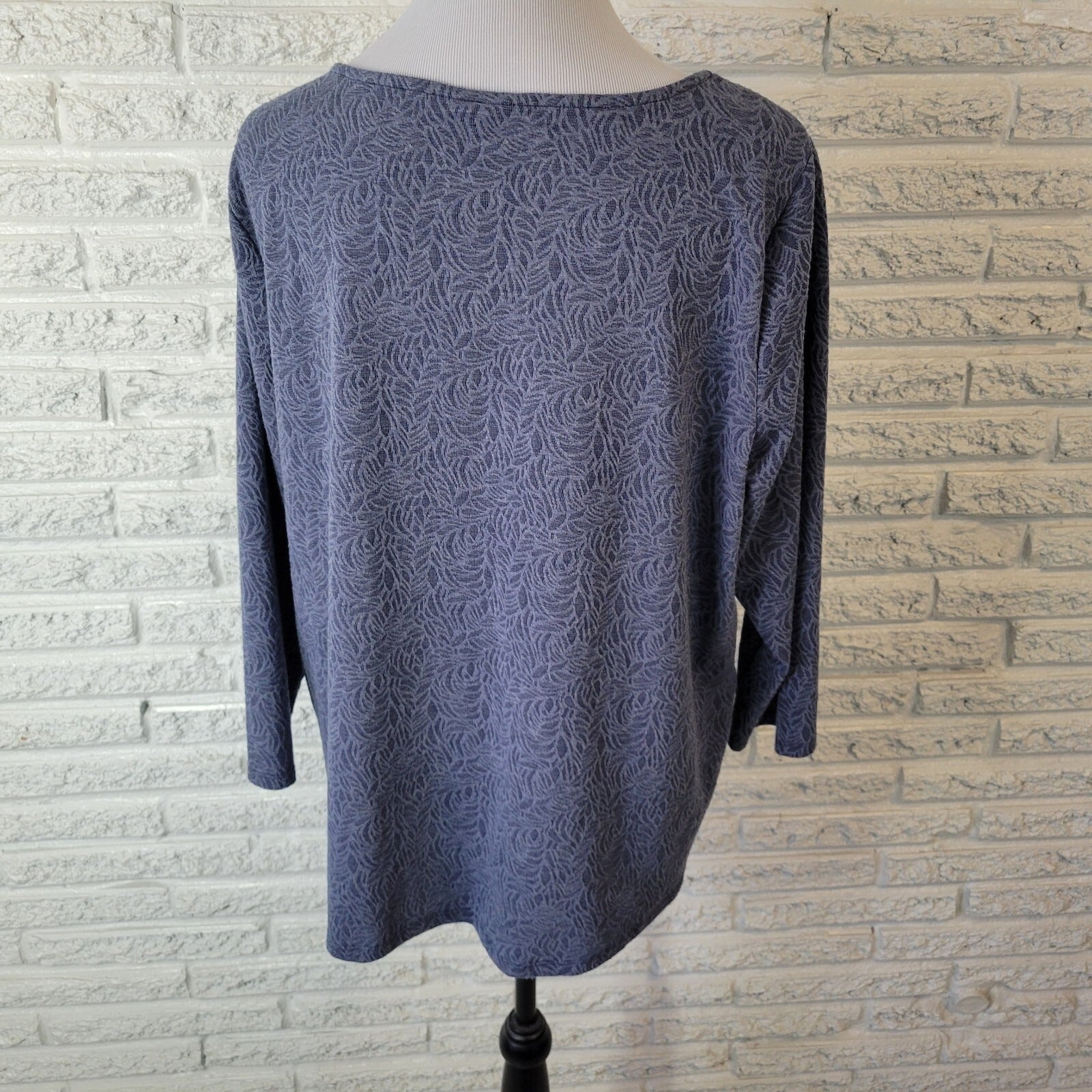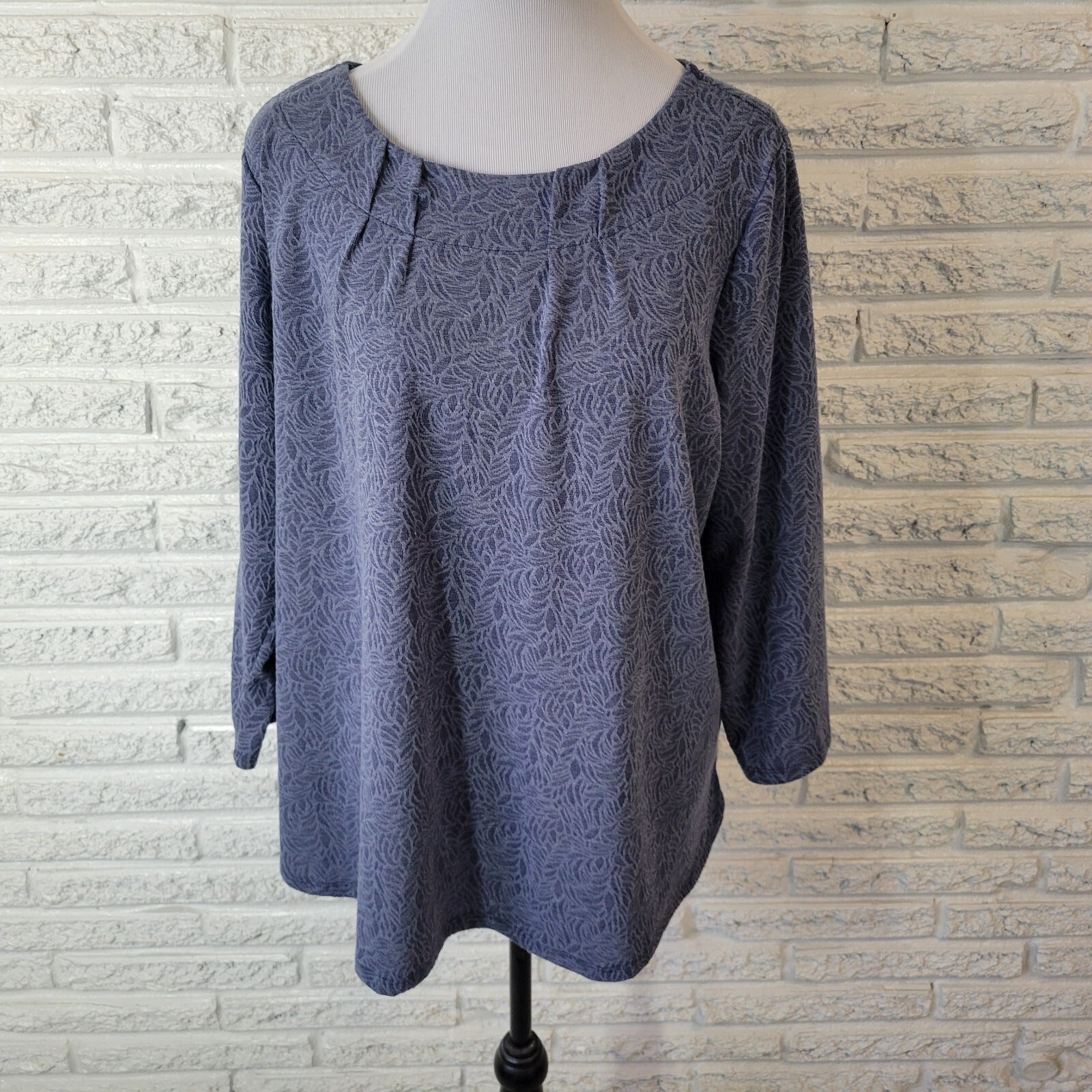 Dana Buchman Womens Top XXL Plus 3/4 Sleeve Blue Leaves Pleated Comfy Poly Blend