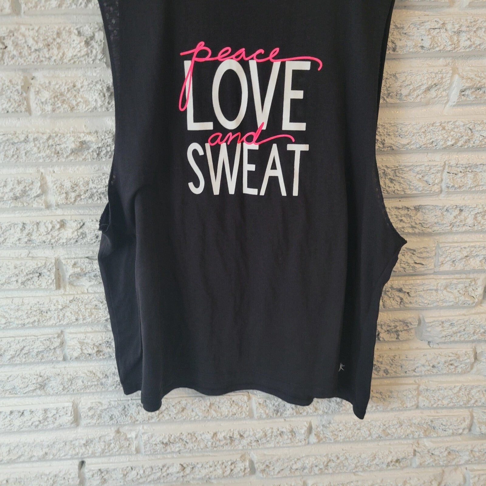 Danskin Now Loose Womens XXL Plus Tee Sleeveless Peace Love Sweat Active Black