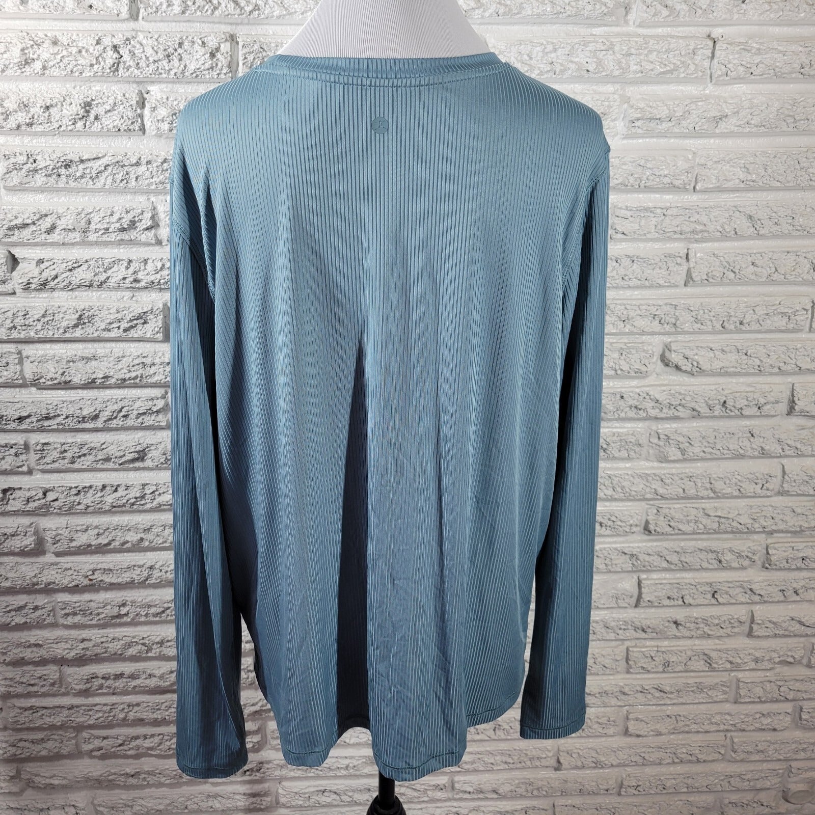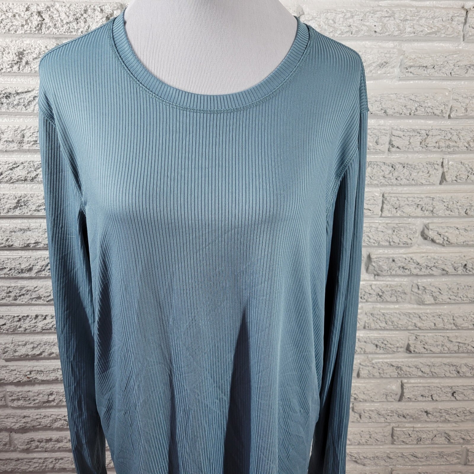 Danskin Womens Top XXL Tee Long Sleeve Poly Bend Powder Blue Ribbed Lightweight