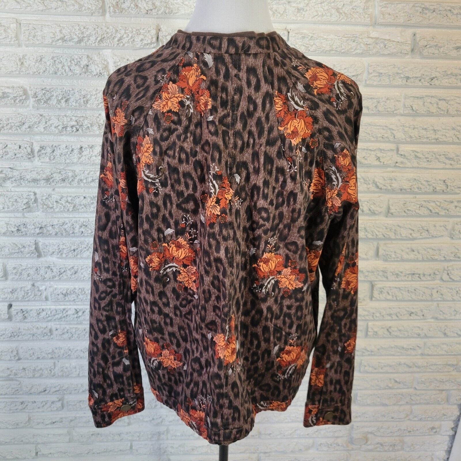 Democracy Womens Jacket XL Orange Brown Animal Print Full Zip Pockets Drawstring