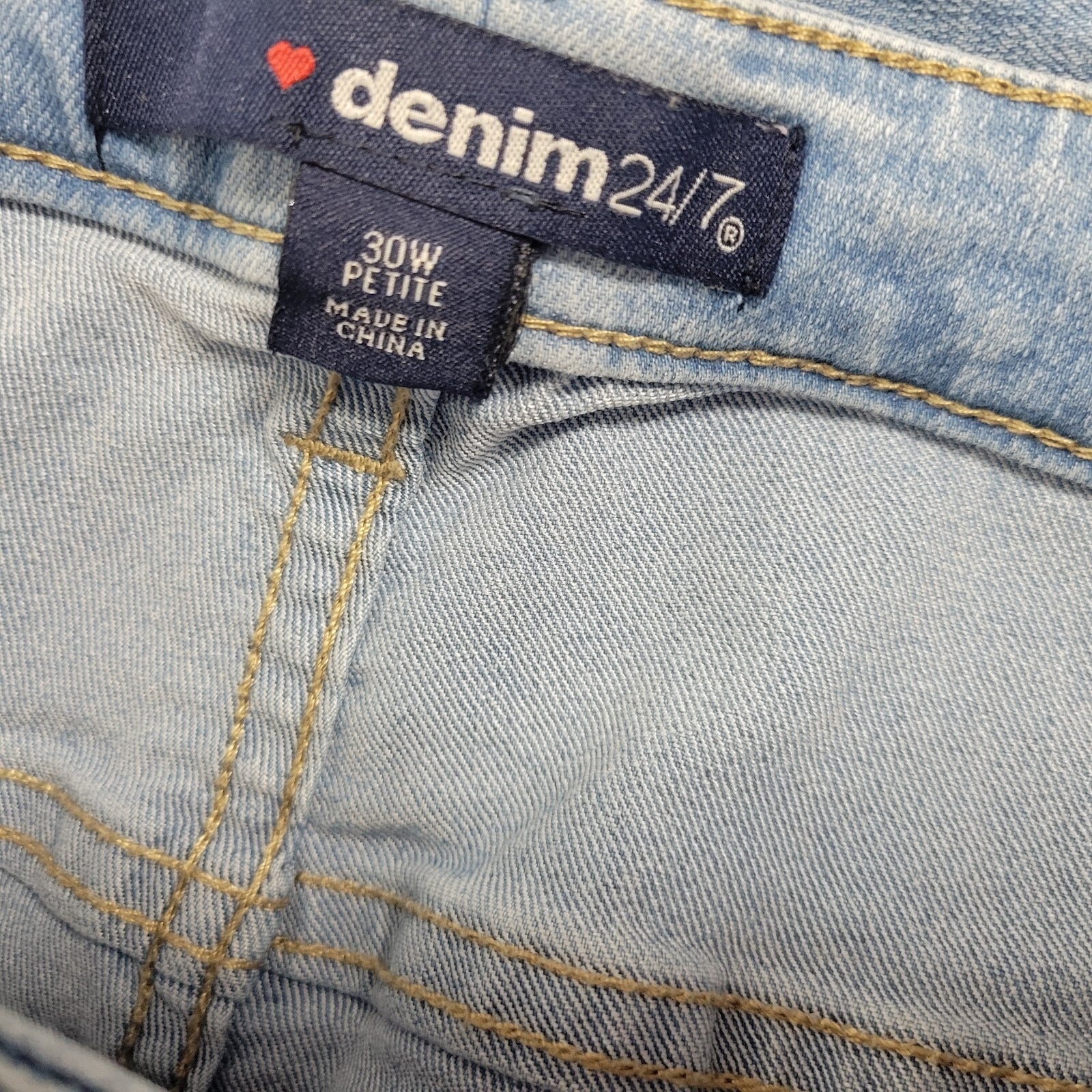 Denim 24 7 Womens Jeans 30WP Plus Cropped Light Blue Denim Zip Fly Comfort Waist