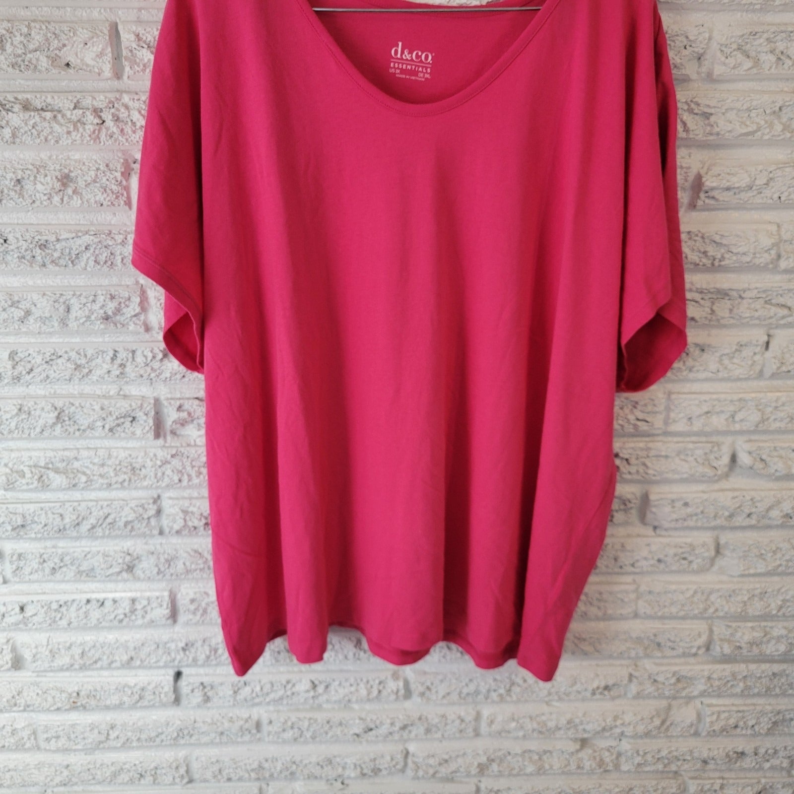 Denim Co QVC Womens Top 3X Plus Tee Short Sleeve Pink Cotton Basic Casual Comfy