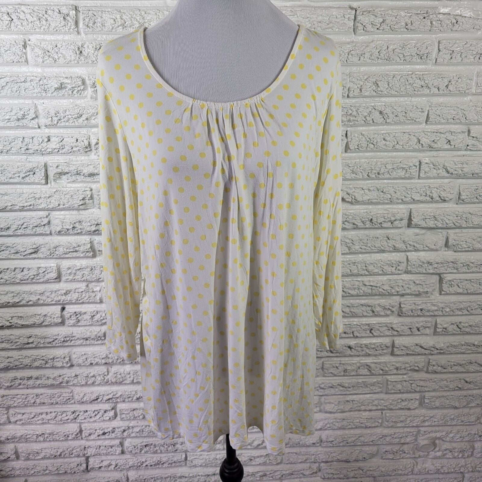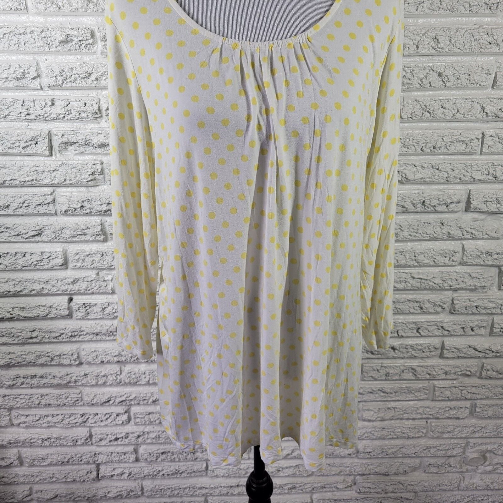 Denim Co Womens Top 1X Plus Tunic Long Sleeve Comfy Yellow Polka Dot Lightweight