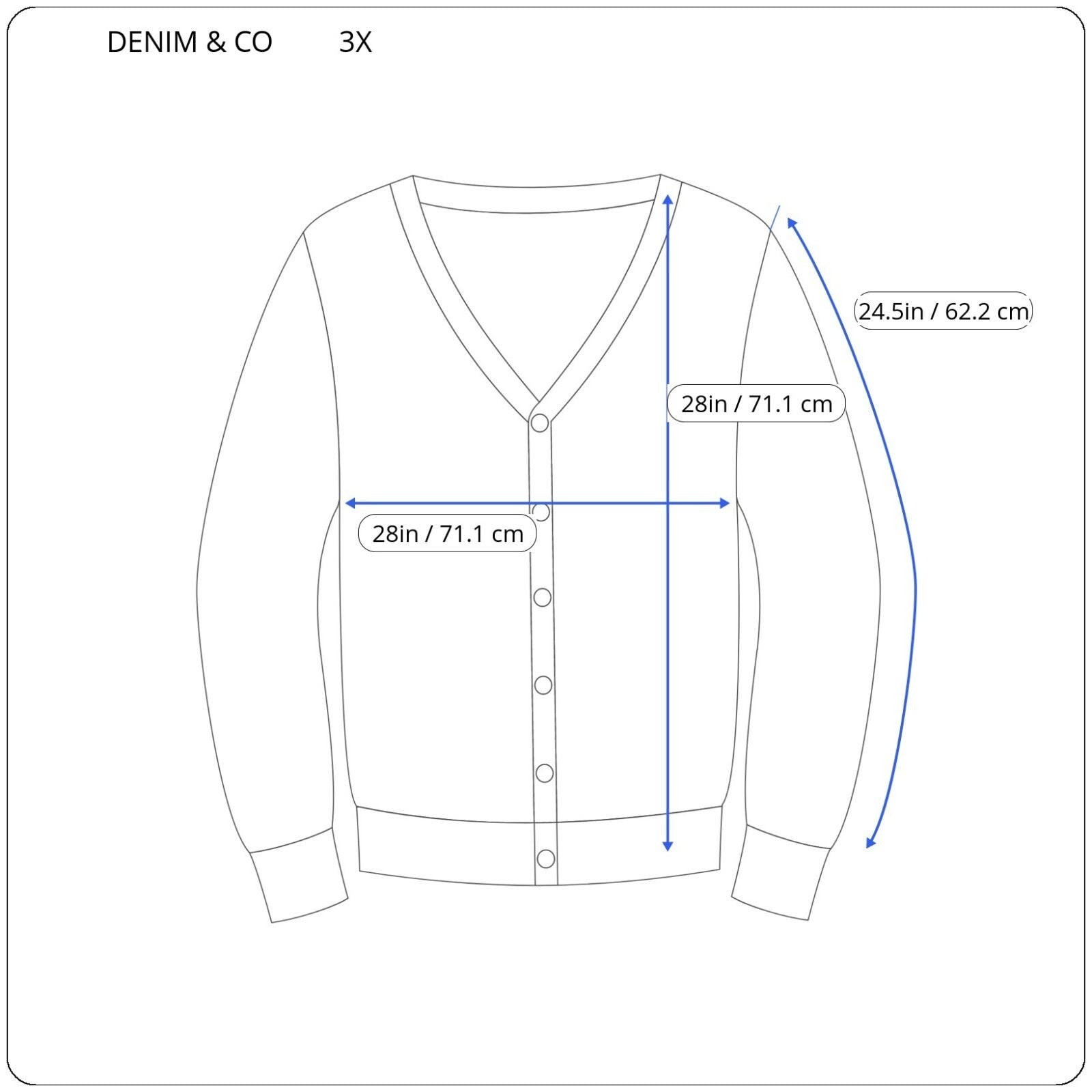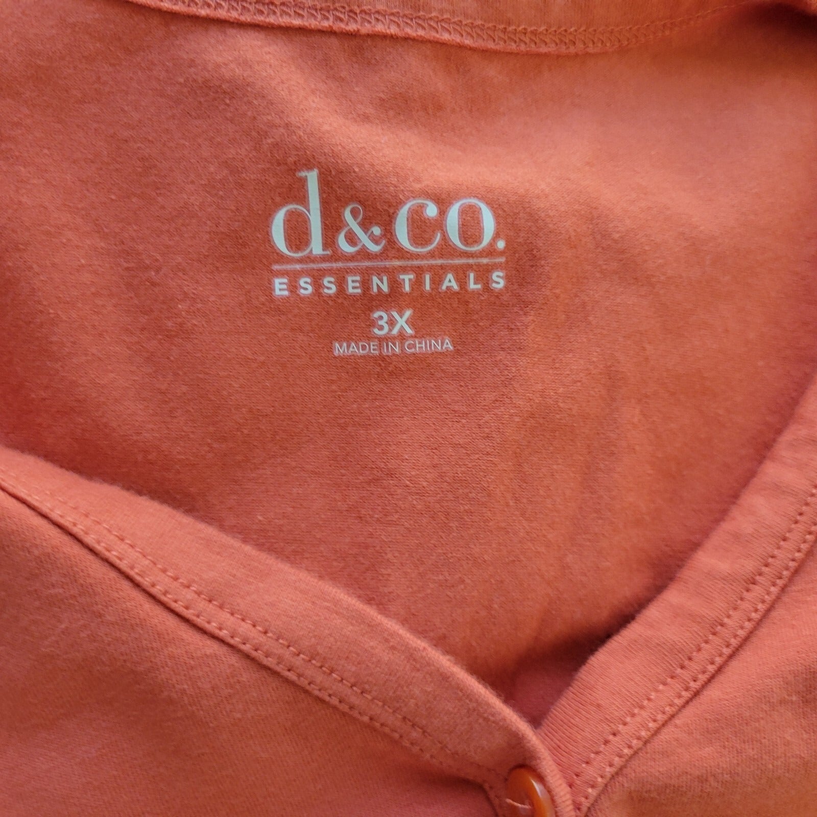Introducing a beautiful Denim & Co women's top in a vibrant orange color and size 3X. This button-up cardigan features long sleeves with casual sleeves and a solid pattern. It is perfect for any casual occasion and can be worn in any season. The top is lightweight, stretchy, and machine washable for easy care. The Denim & Co brand ensures high quality and style for any wardrobe. Get this basic piece to add a pop of color to your outfit.