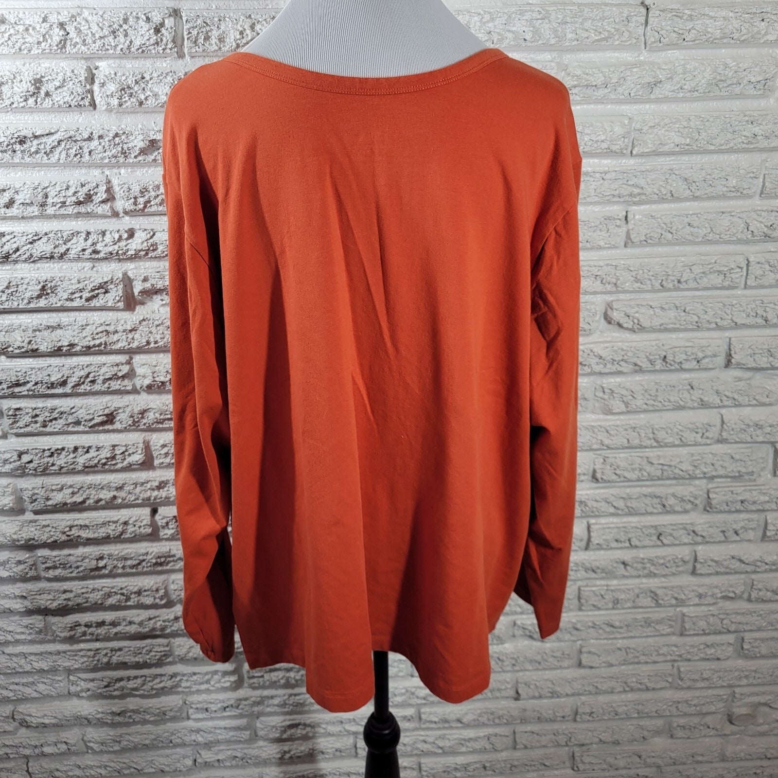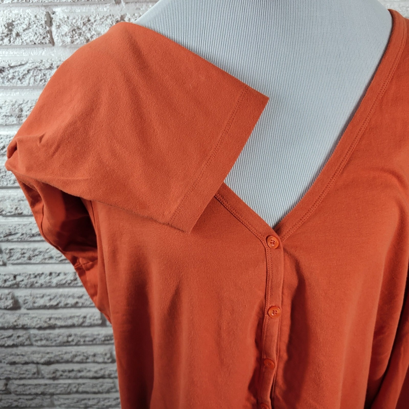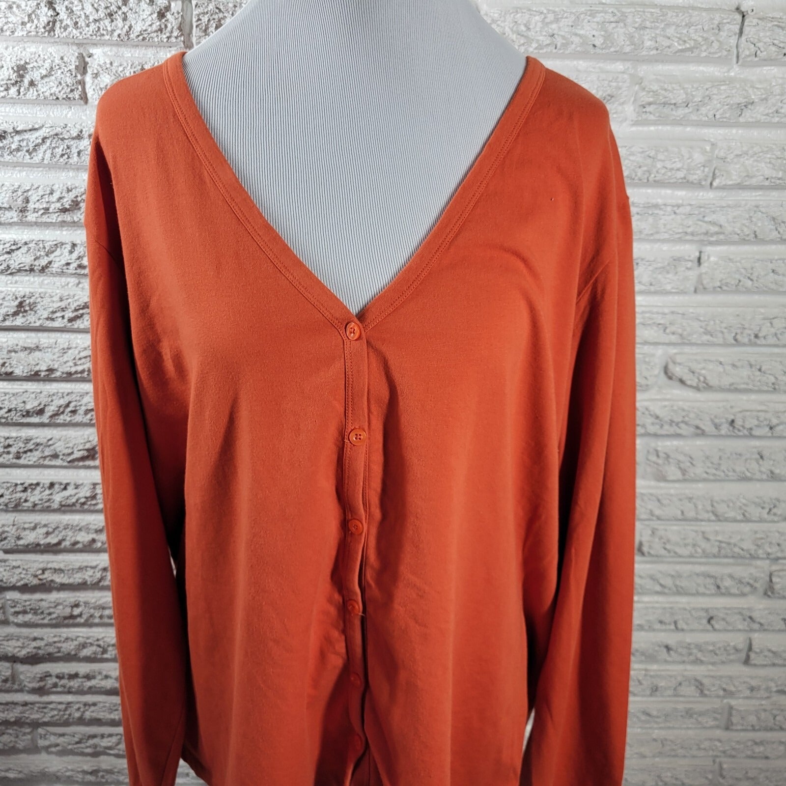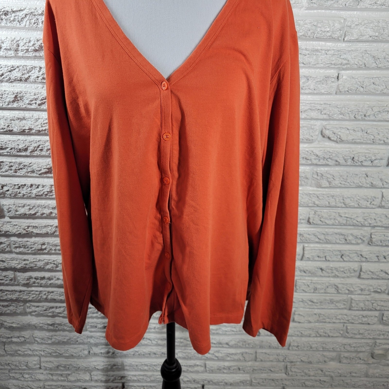Denim Co Womens Top 3X Plus Cardigan Long Sleeve Orange Button Up Lightweight