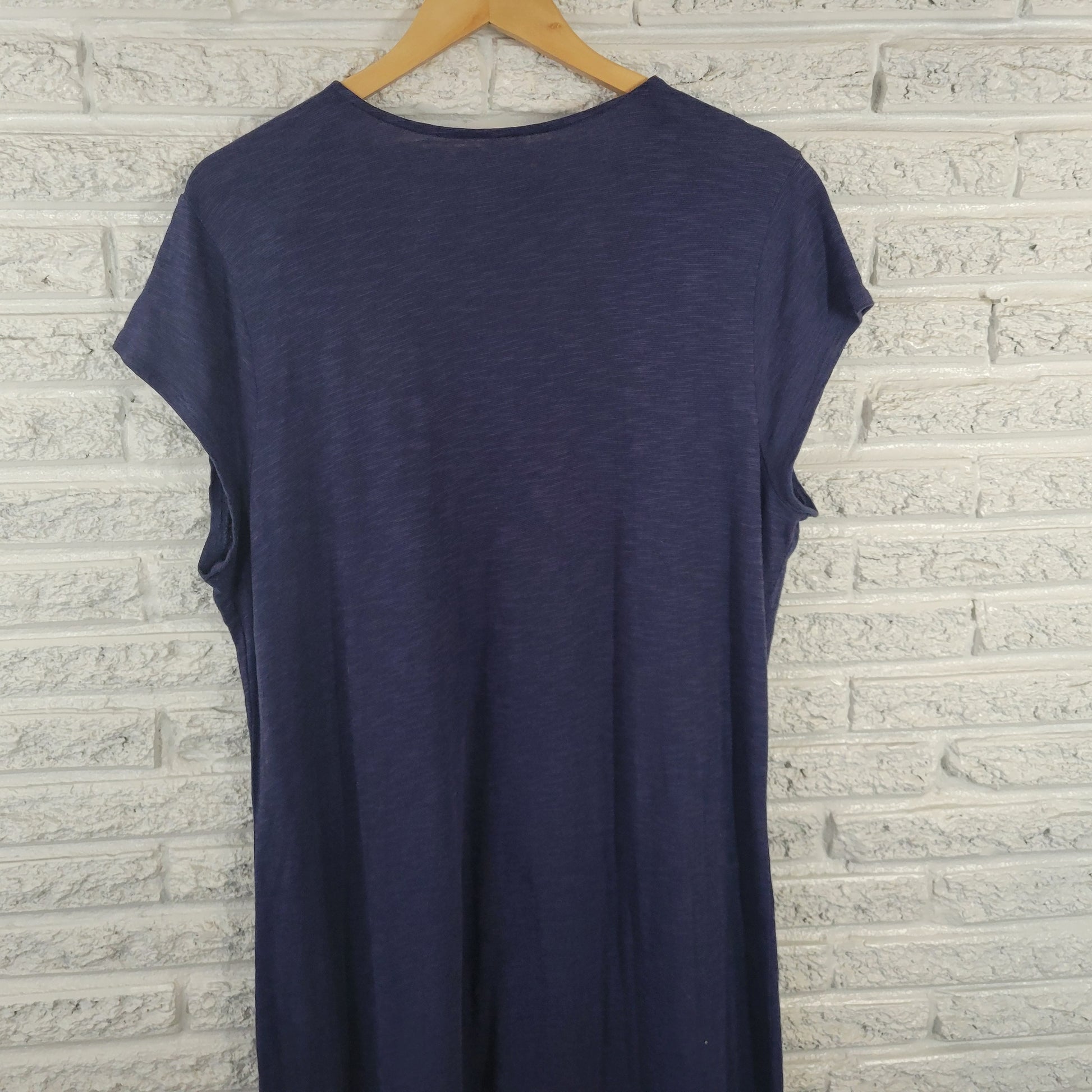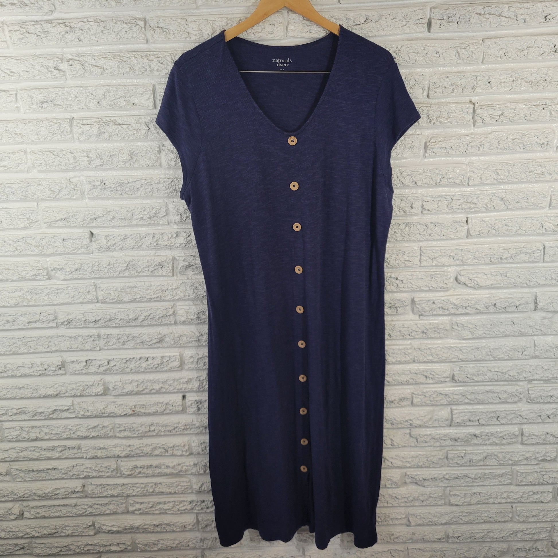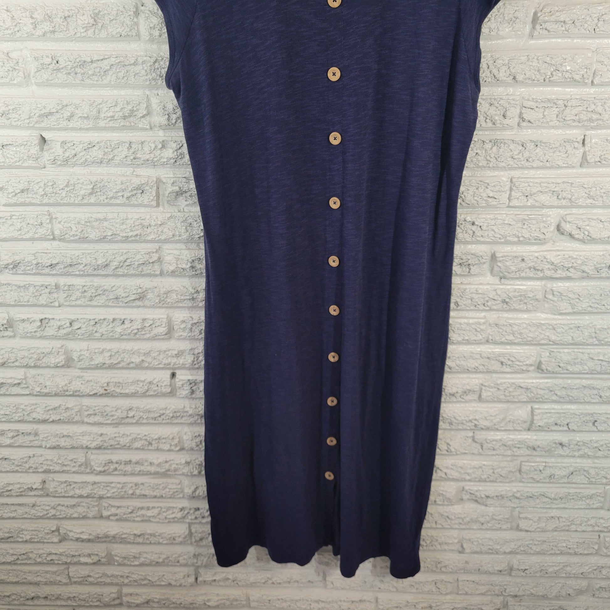 Denim & Co XL Blue Shift Dress Knee Length Cap Sleeve Deco Button BLU144E