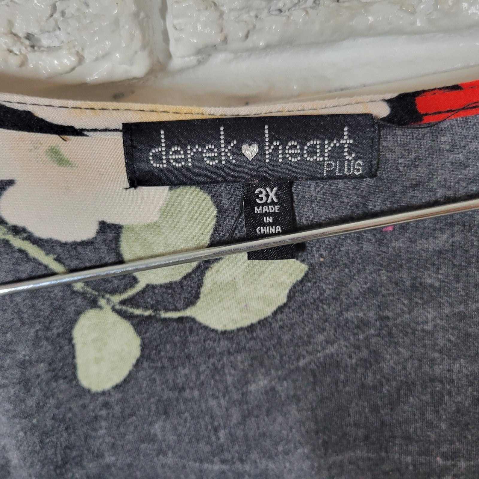 Derek Heart Women Dress 3X Plus Black Red Floral Long Sleeve Office Casual Comfy