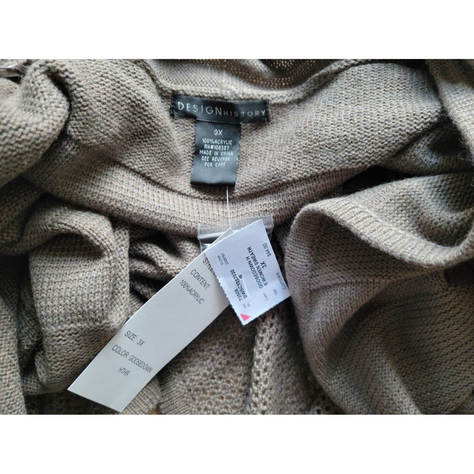Design History Womens Sweater 3X Plus Cardigan Open Gray Acrylic Office New