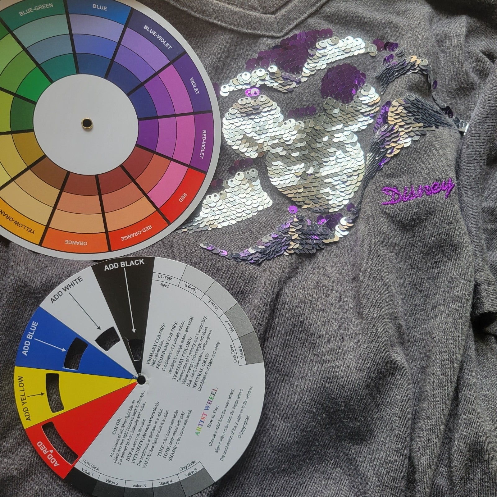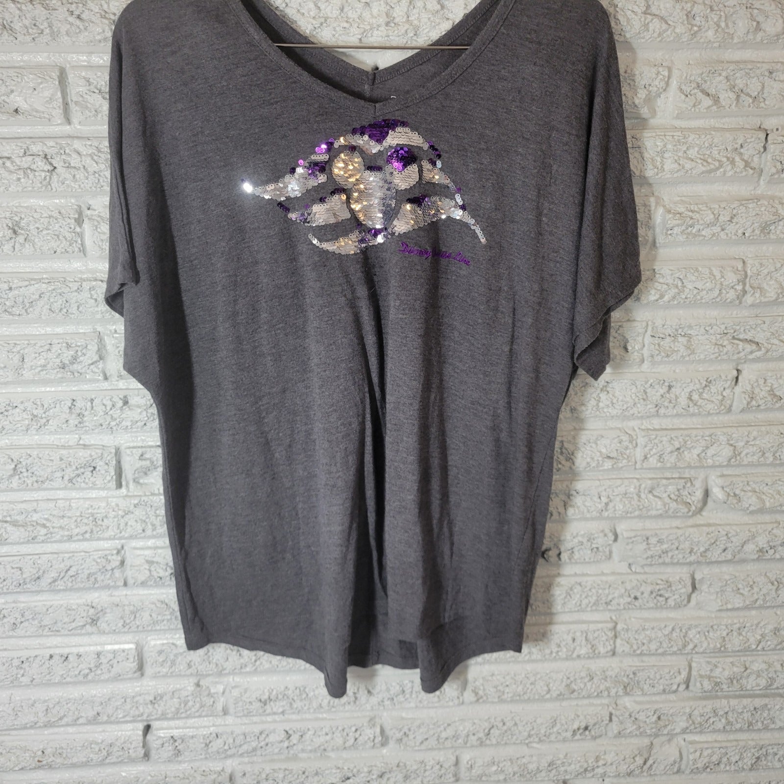Disney Cruise Lines Women Top Extra Large Tee Gray Embroidered Purple Sequins