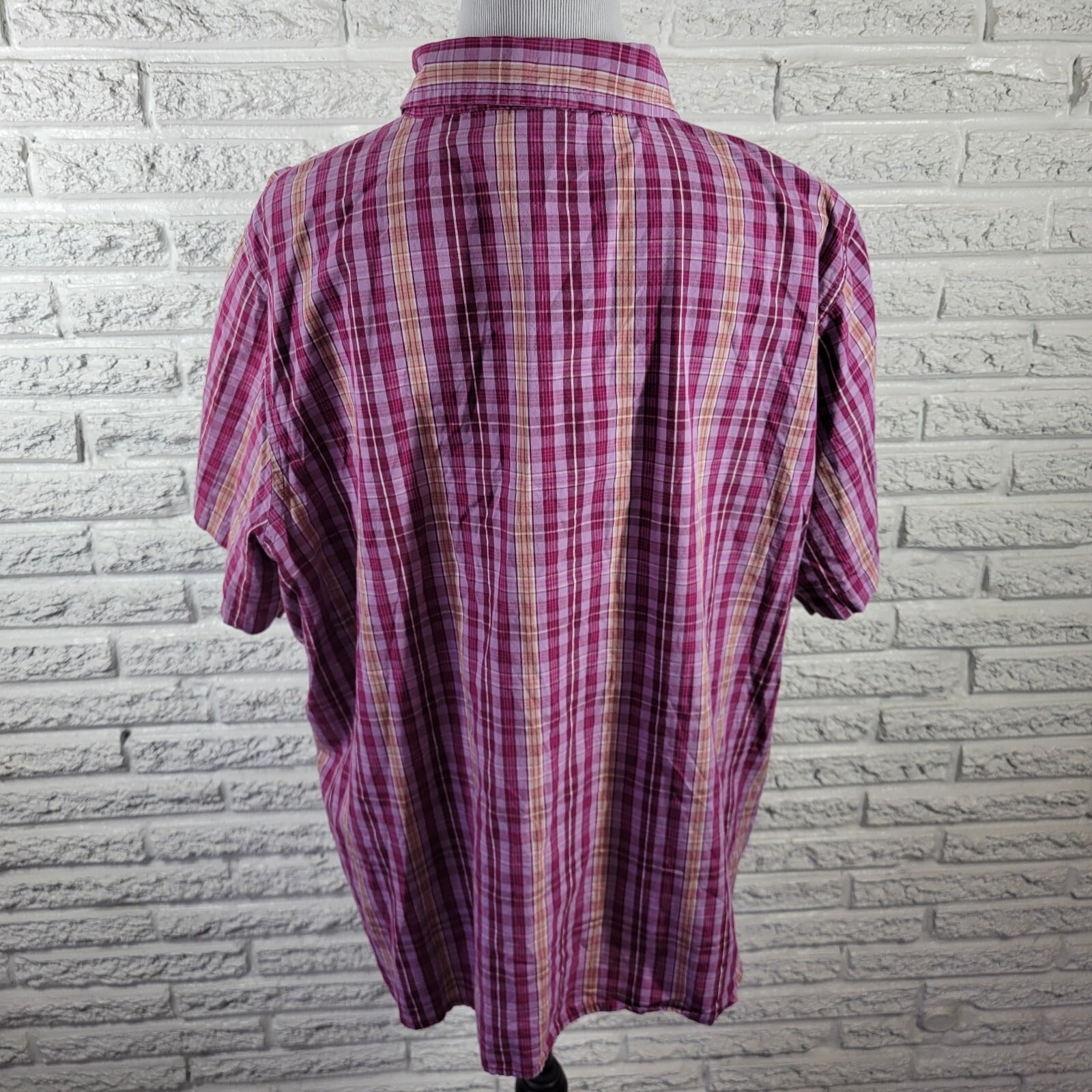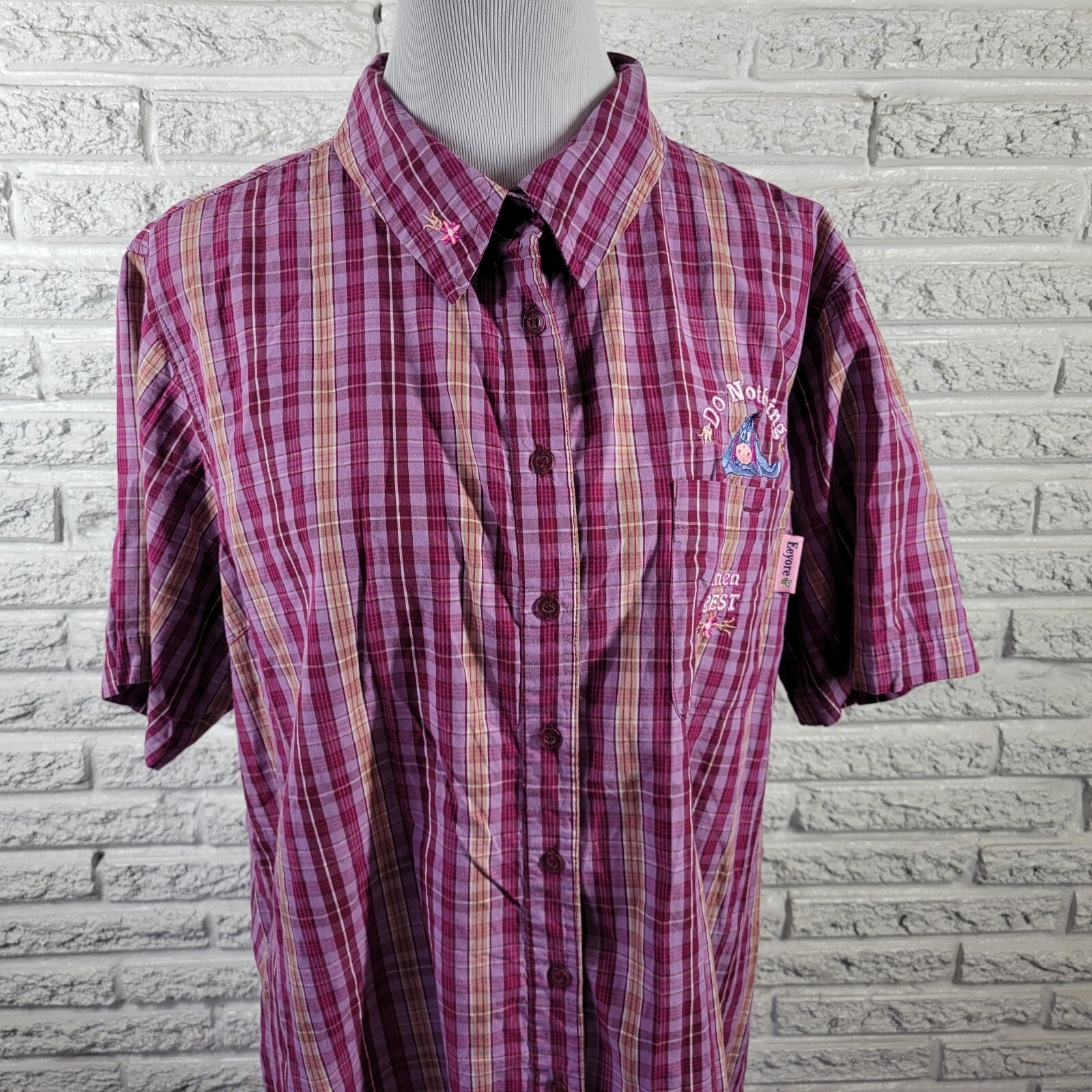 Disney Eeyore Womens Top 2X Plus Short Sleeve Purple Plaid Cotton Lightweight