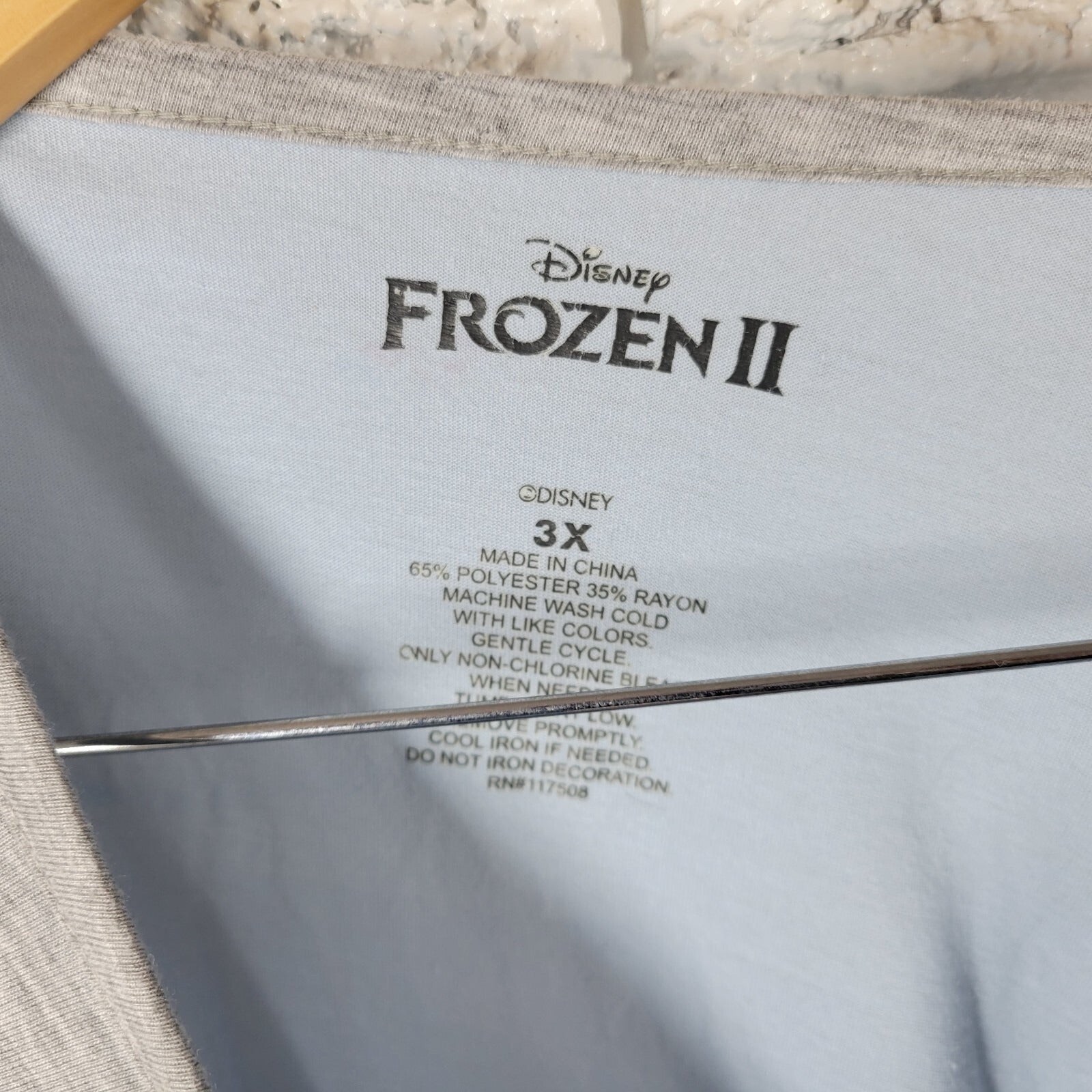 Disney Frozen II Women Pajama Top 3X Plus Raglan Sleeve Fearless Blue Gray Comfy