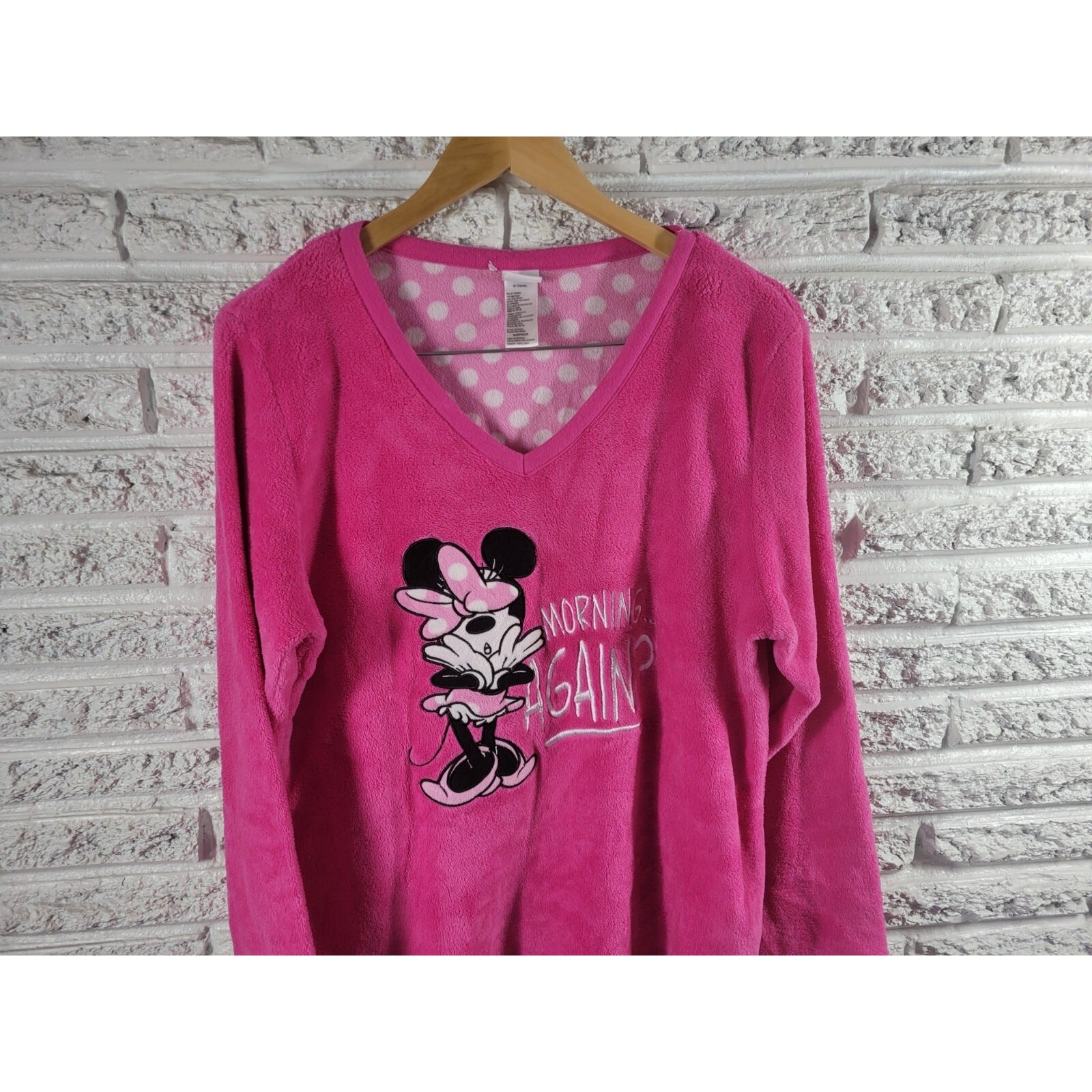 Disney Minnie Mouse Womens Pajamas Extra Large XL Top Fleece Morning Again Pink