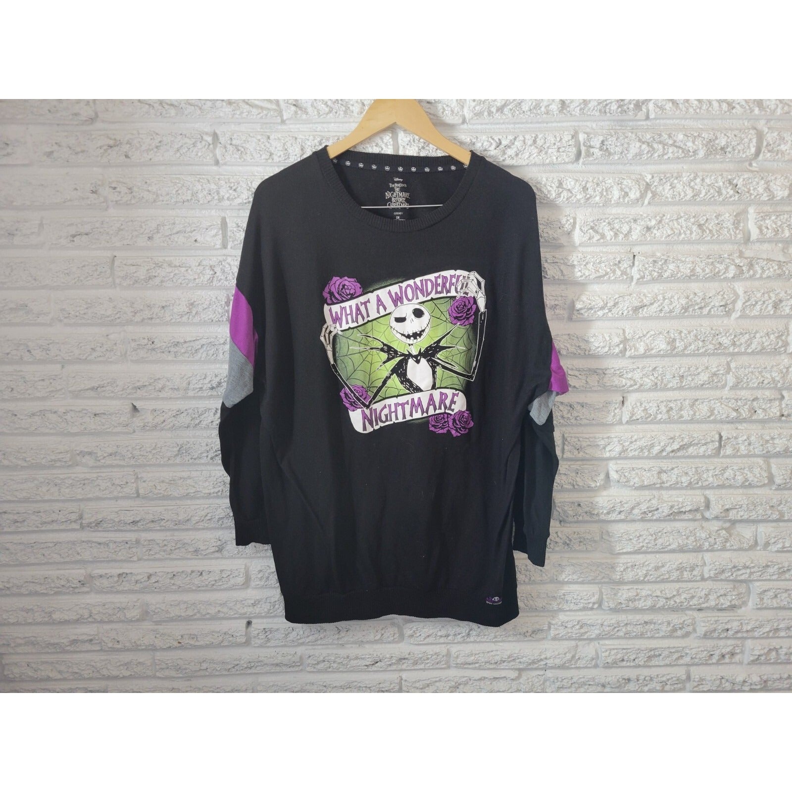 Get ready for the holiday season with this Disney Nightmare Christmas Women Top in size 2X. The black pajama top features a crew neckline and long sleeves, perfect for staying cozy during the chilly winter months. The soft poly blend material is machine washable for easy care and maintenance. The top is designed with a Christmas theme and features a DR SEUSS brand label. The garment care is machine washable, making it easy to wear and maintain. Add this pajama top to your collection and enjoy the comfortable and festive wear it provides.