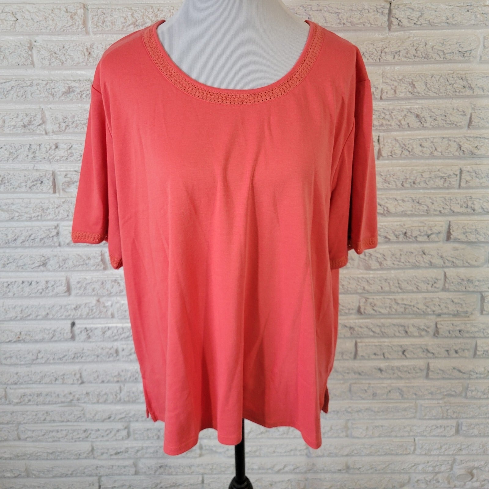 Drapers Damons Womens Top 2X Plus Tee Pink Crochet Neckline Cotton Comfy Blend