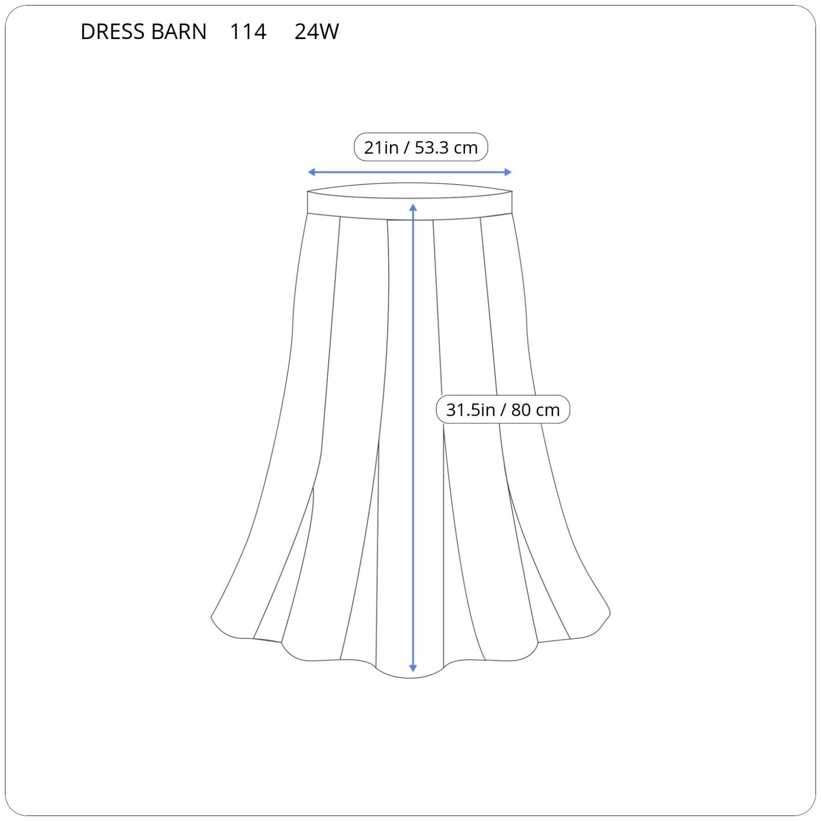 This Dress Barn Women's Skirt in size 24W is crafted from orange polyester with embroidered accents, making it a stylish and versatile addition to any wardrobe. The midi skirt features a straight and pencil style with a zip closure and is lined for added comfort. Suitable for travel, casual outings, and business settings, this skirt is designed for year-round wear and can be dried cleaned for easy maintenance. This skirt is perfect for women looking for a quality and fashionable piece of clothing.