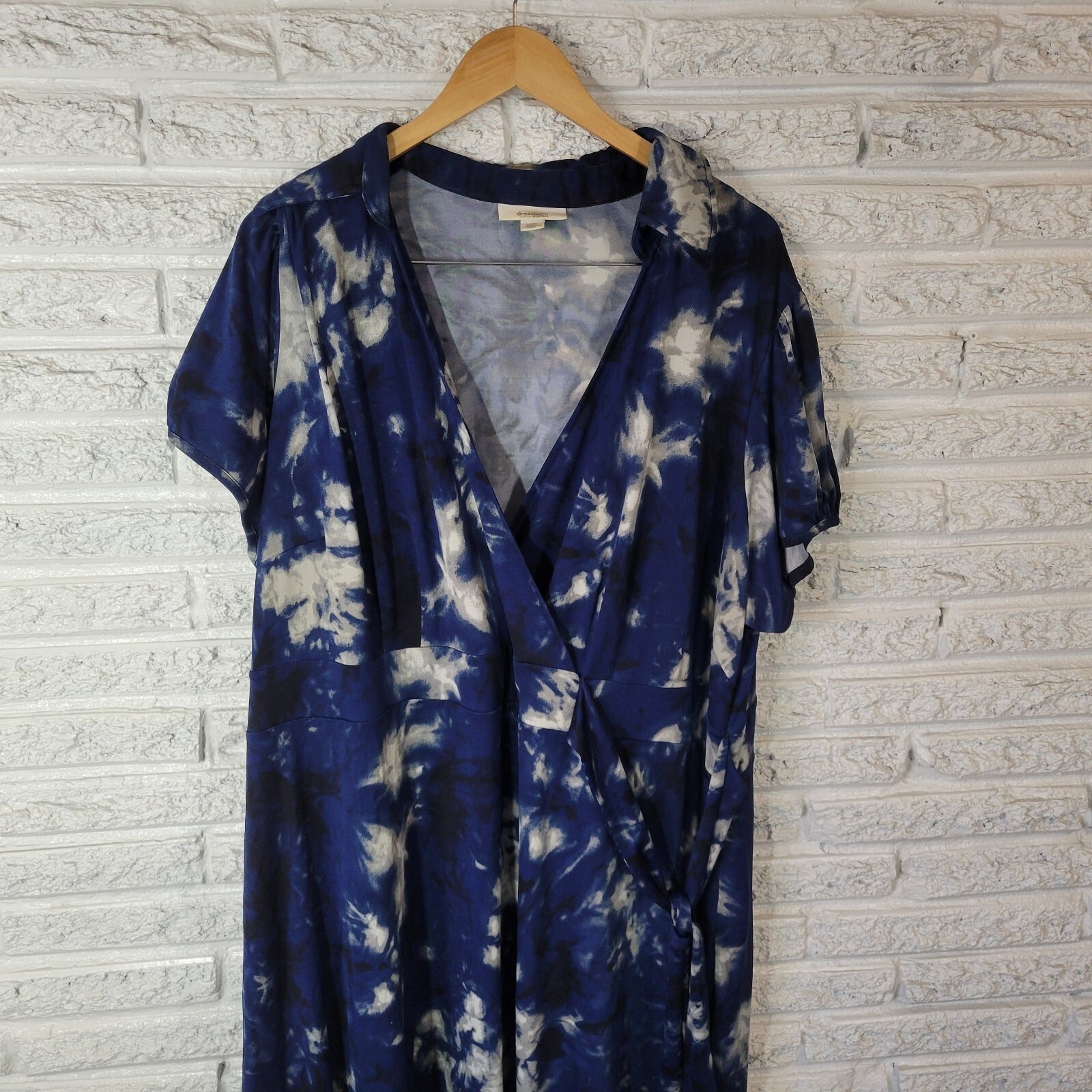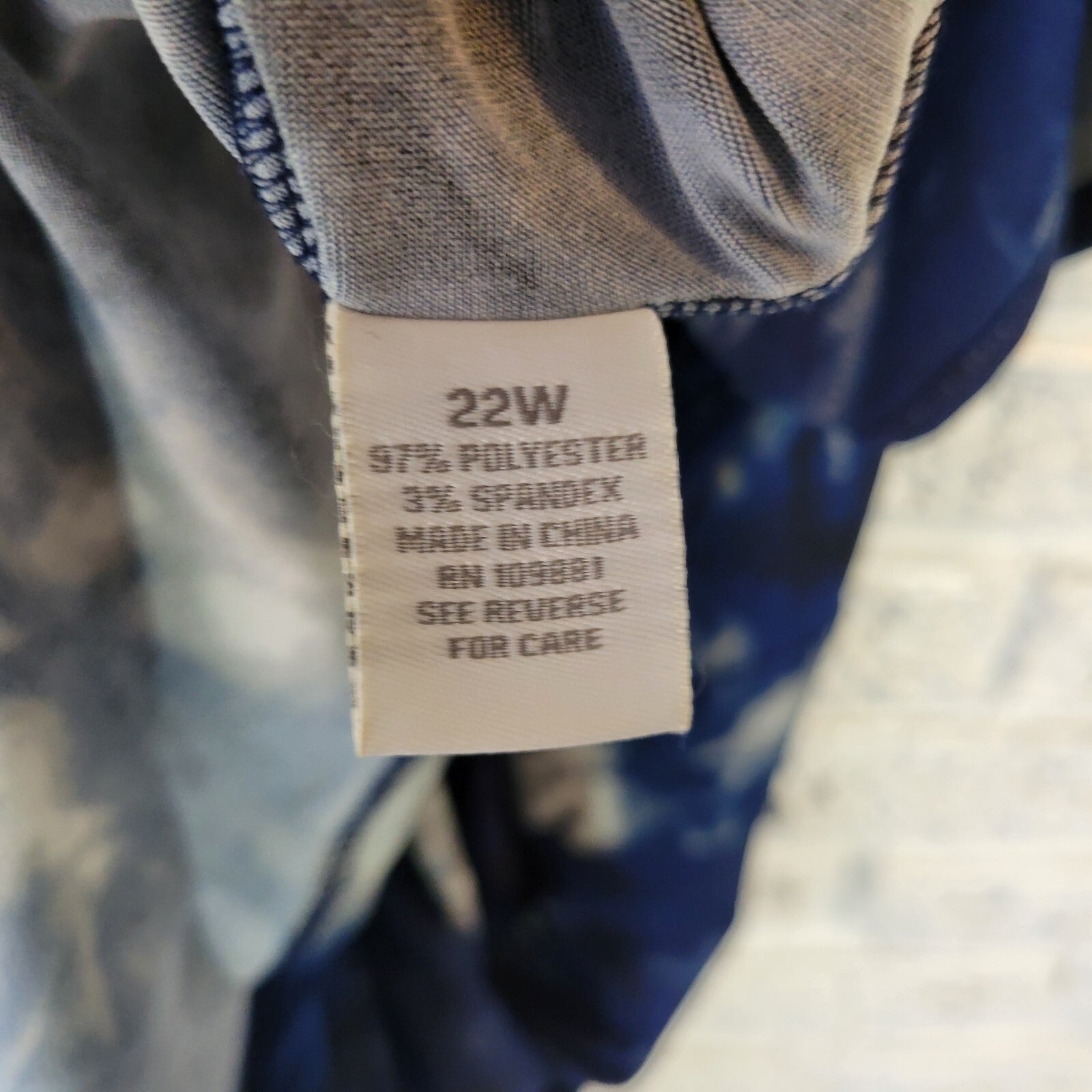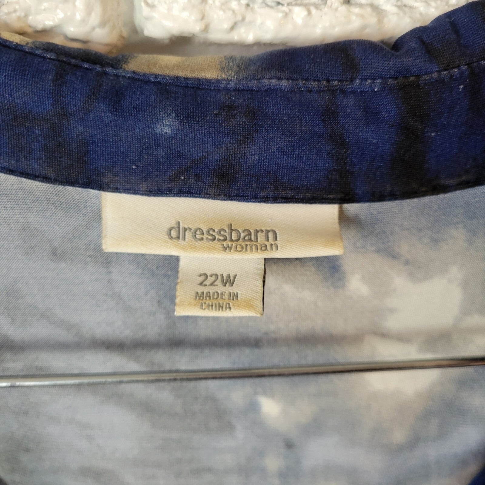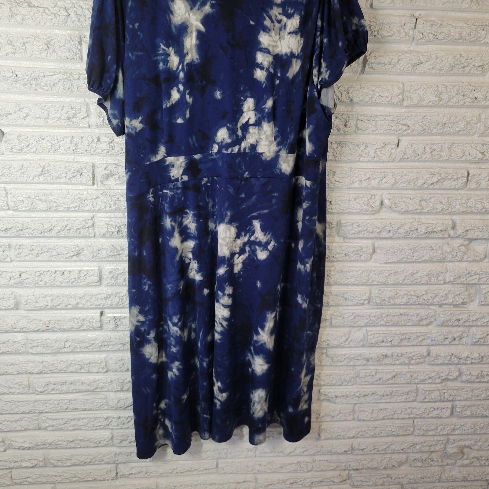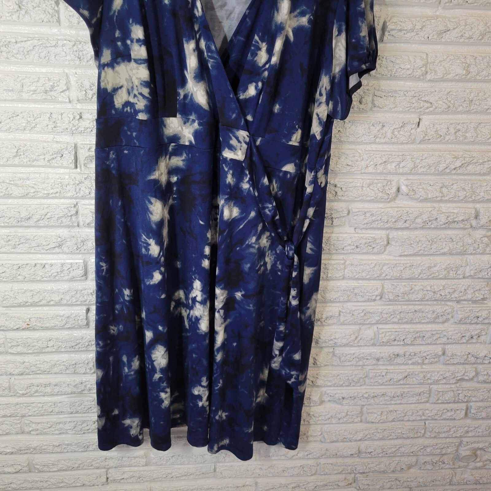 Dress Barn Womens Dress 22W Short Sleeve Blue Tie Dye Side Zip Poly Blend Sash