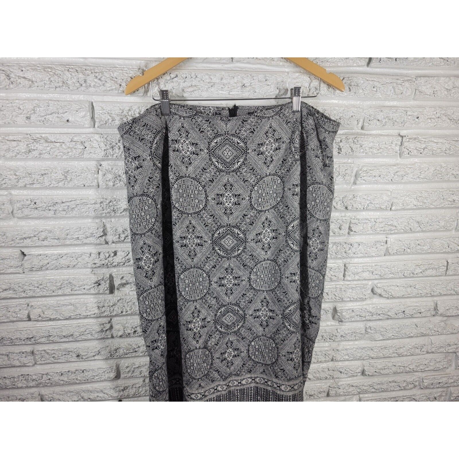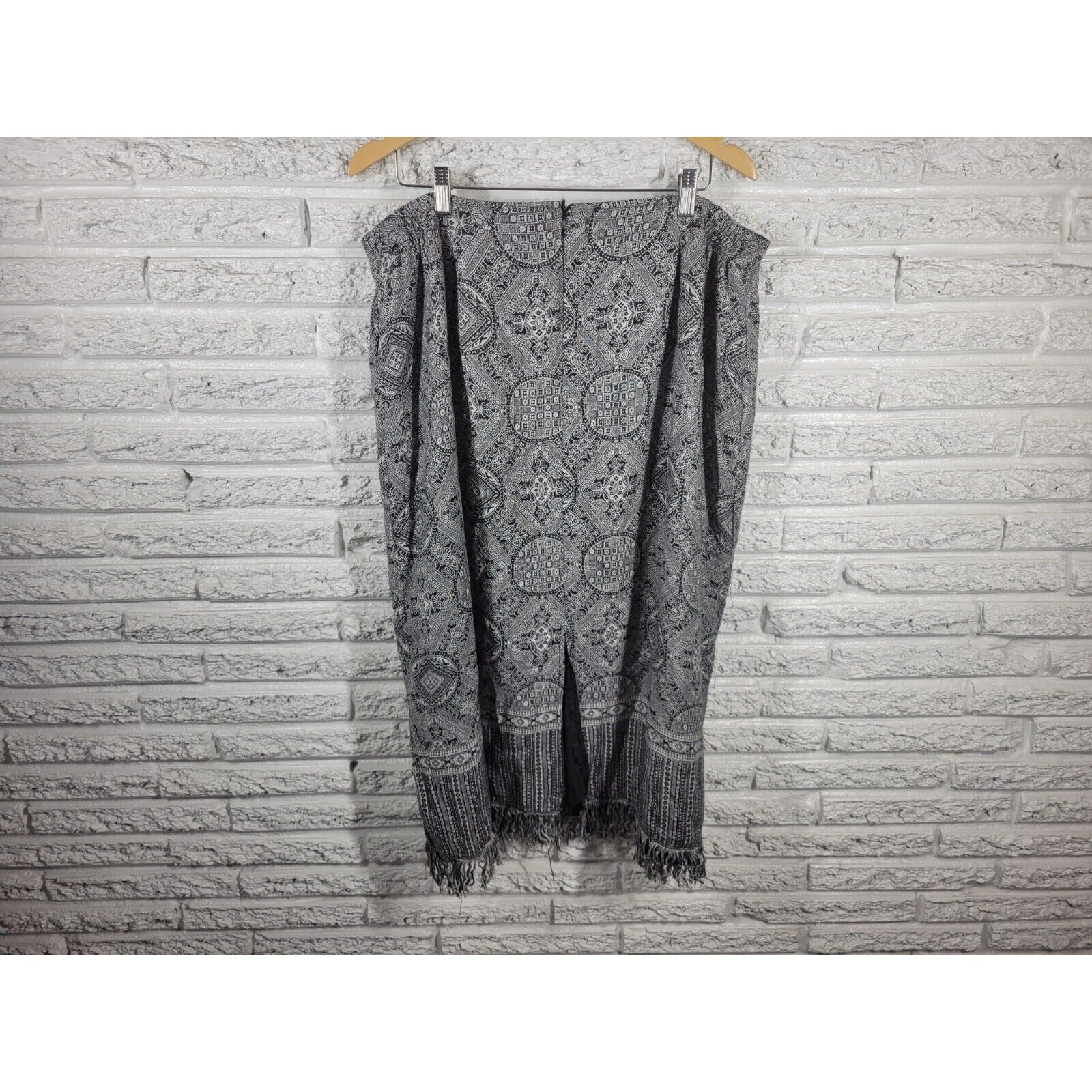 Dress Barn Womens Skirt 20 Plus Midi Pencil Straight Black Geometric Fringe