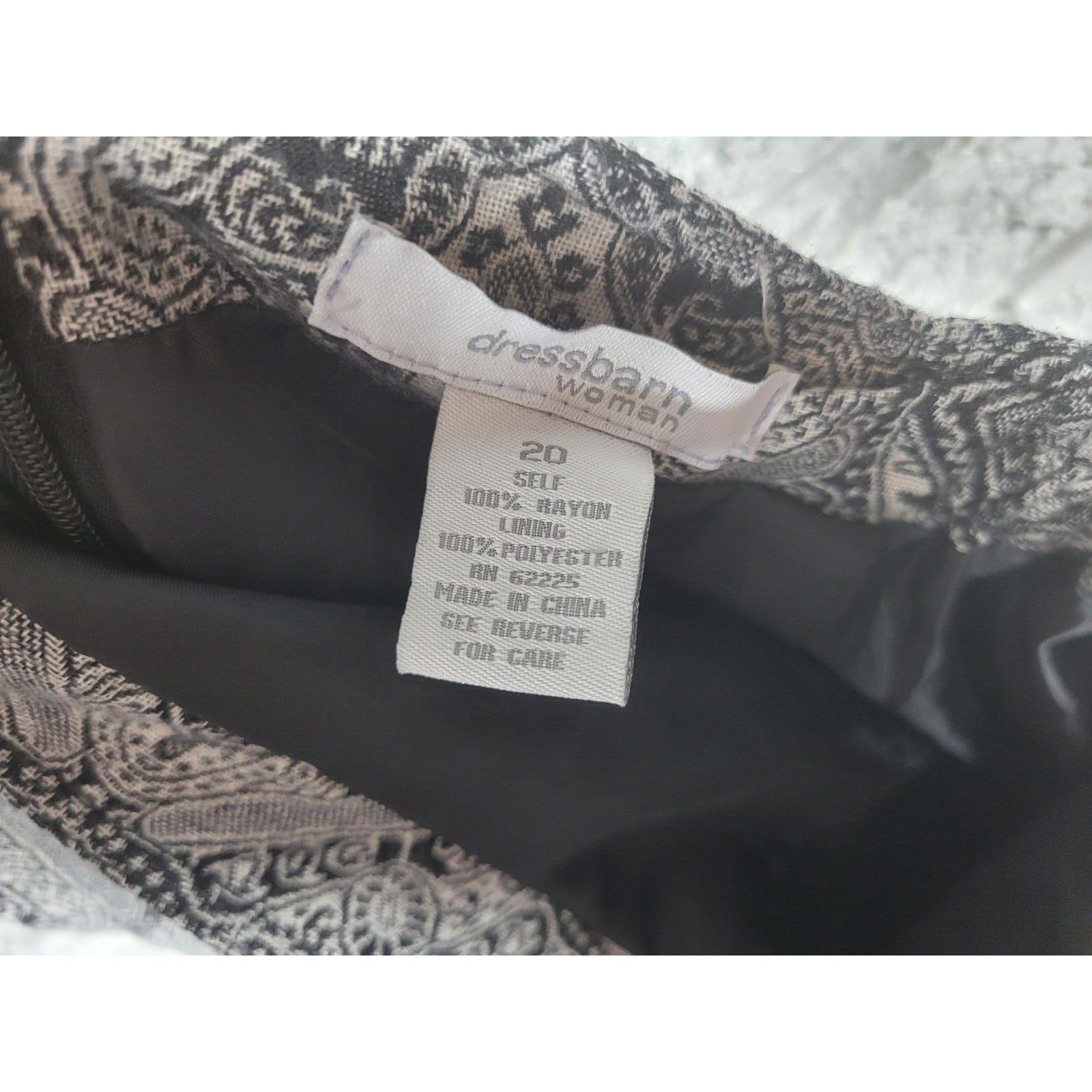 Elevate your wardrobe with this stunning black geometric pattern skirt from Dress Barn. This versatile piece features a zip closure and is perfect for both casual and business occasions. The skirt is made of soft and comfortable rayon material and is lined for added comfort. The elastic waistband ensures a flattering fit for all seasons, while the fringe accents add a touch of sophistication. This straight and pencil style skirt is available in size 20, making it the perfect addition to any plus-sized wardrobe. This skirt is dry clean only.
