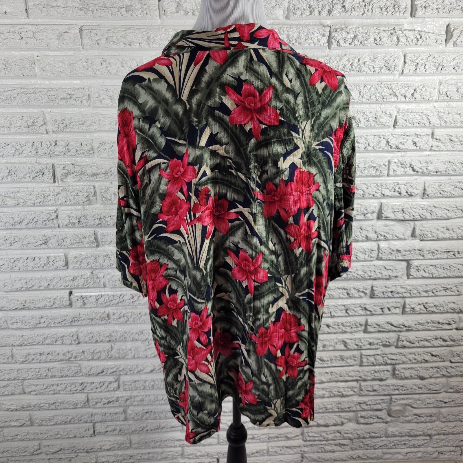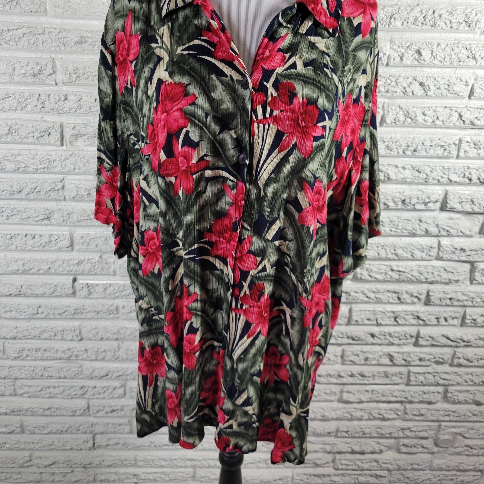 Dress Barn Womens Top 22 24 Plus Short Sleeve Button Up Red Green Floral Rayon