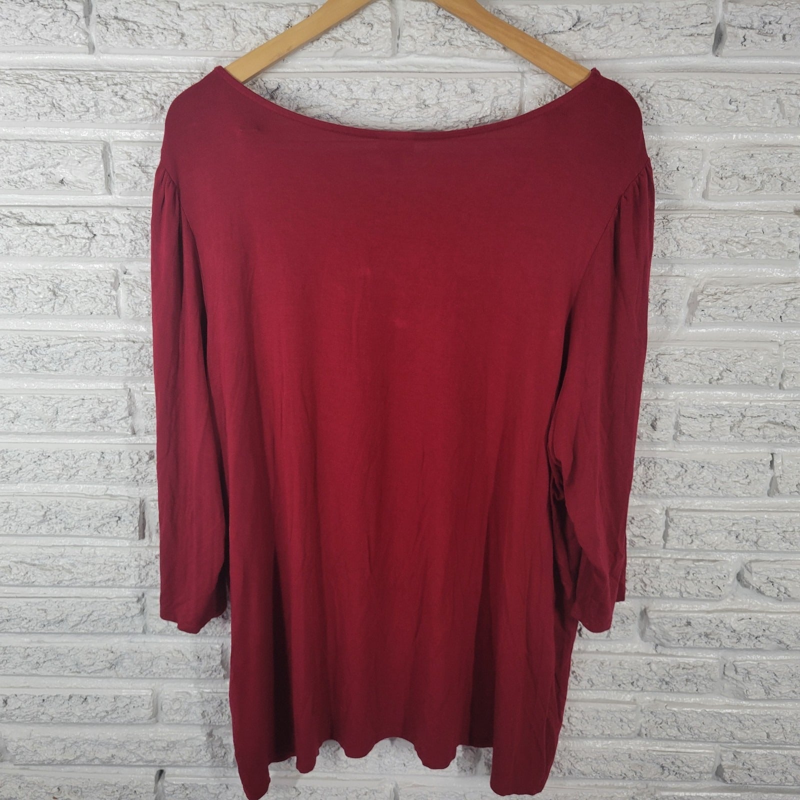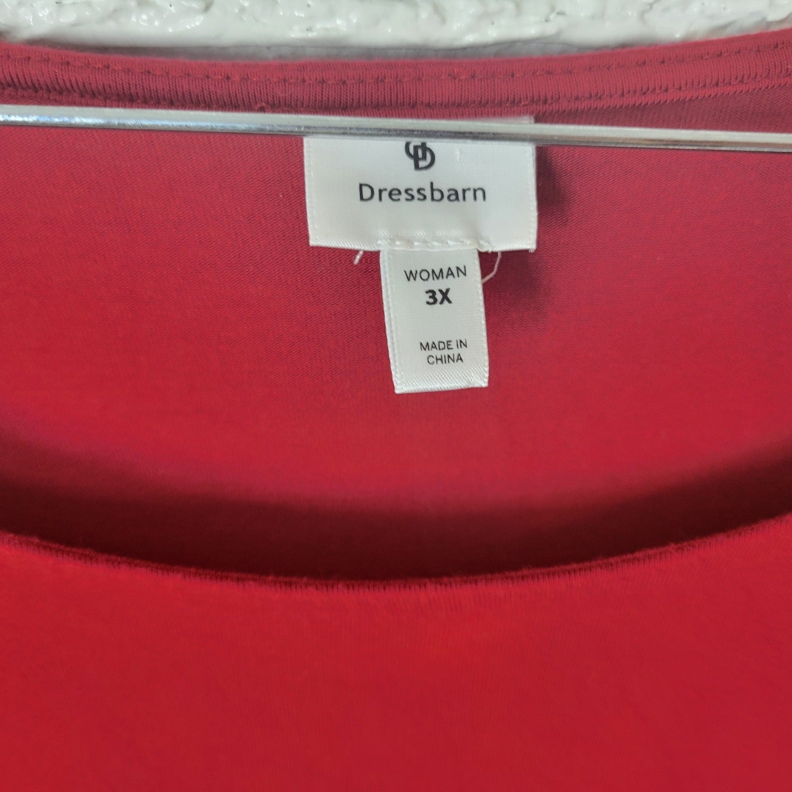 Dress Barn Womens Top 3X Plus 3/4 Sleeve Red Ruffle Rayon Blend Comfy Casual