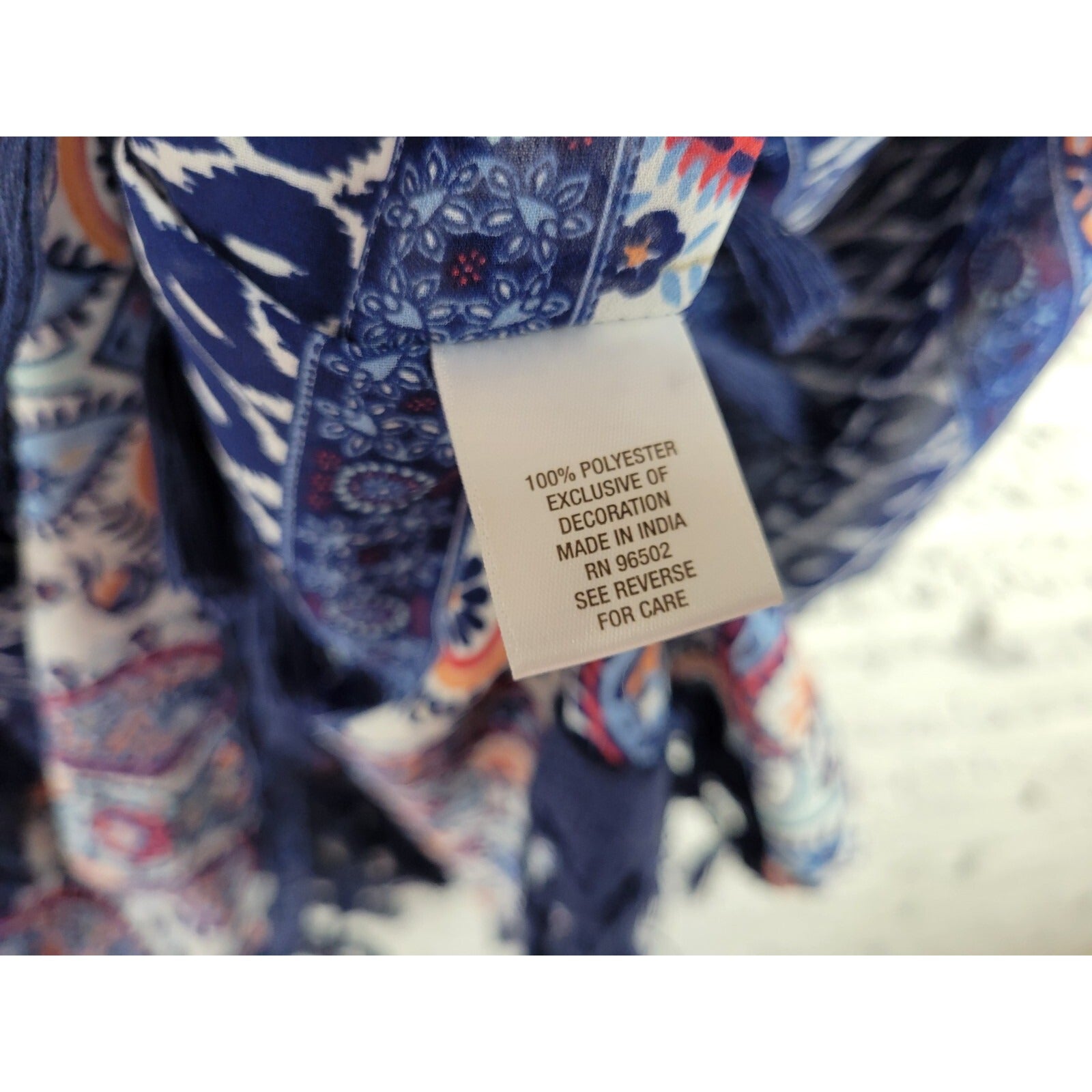 Dress Barn Womens Top Extra Large Kimono Sleeve Fringe Sheer Blue Paisley
