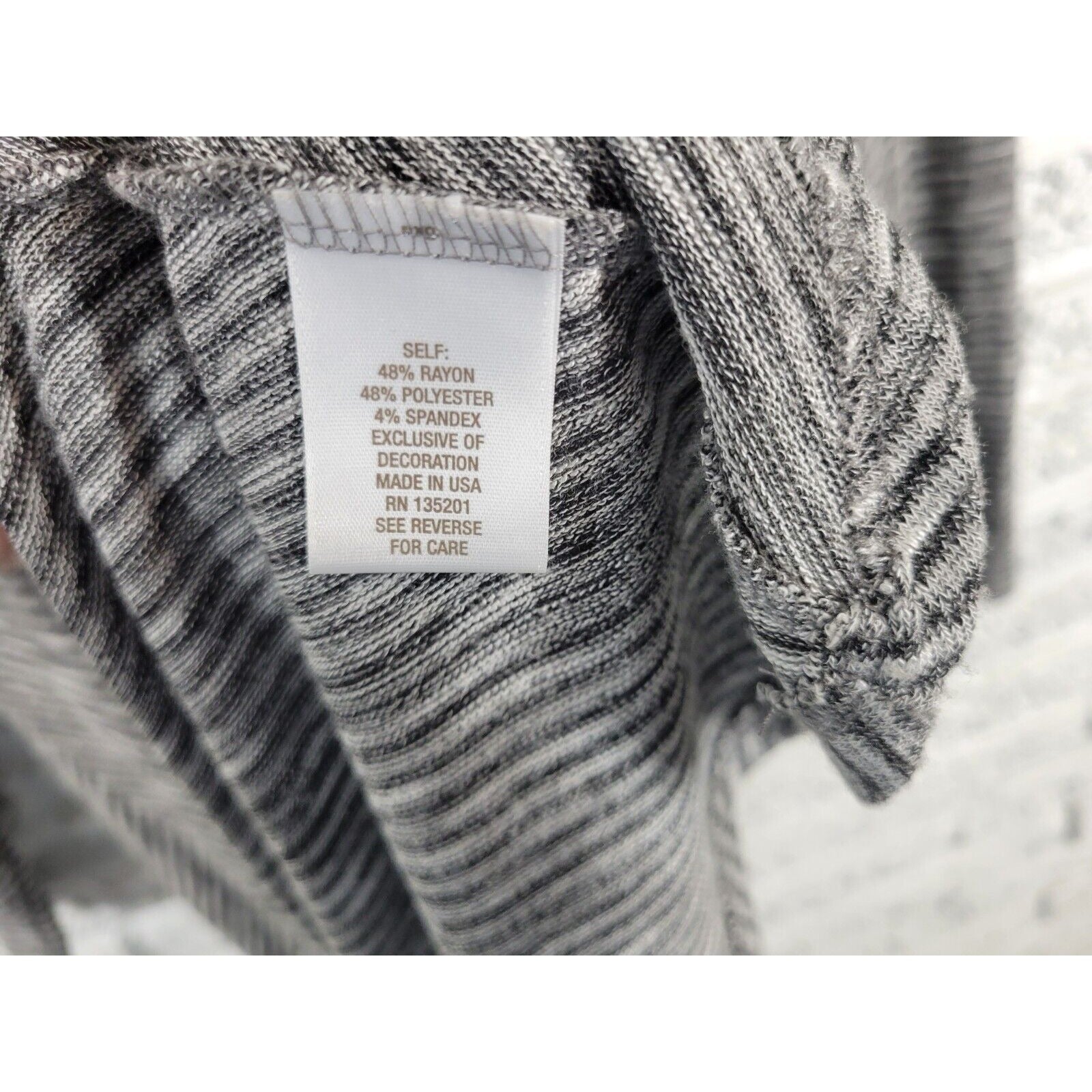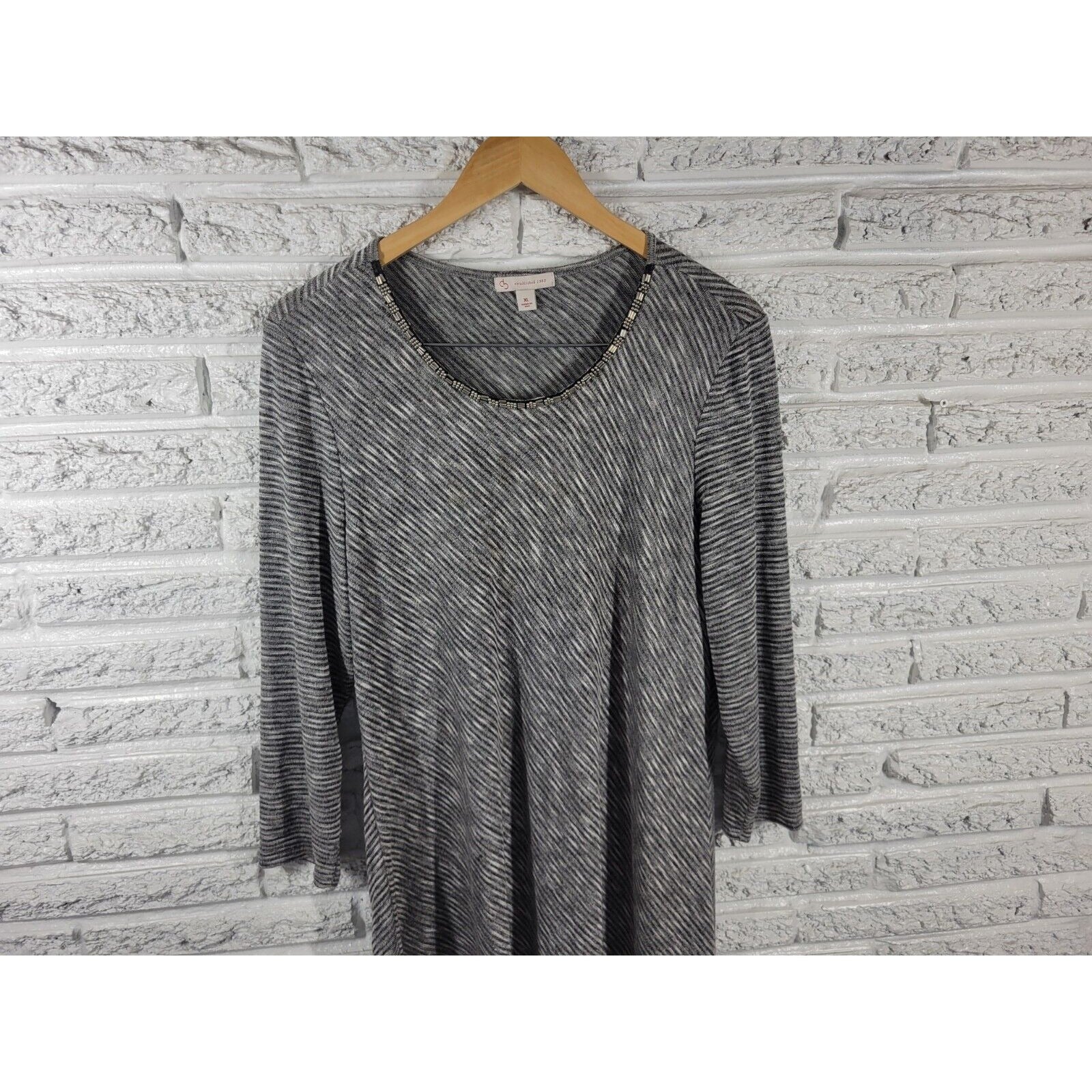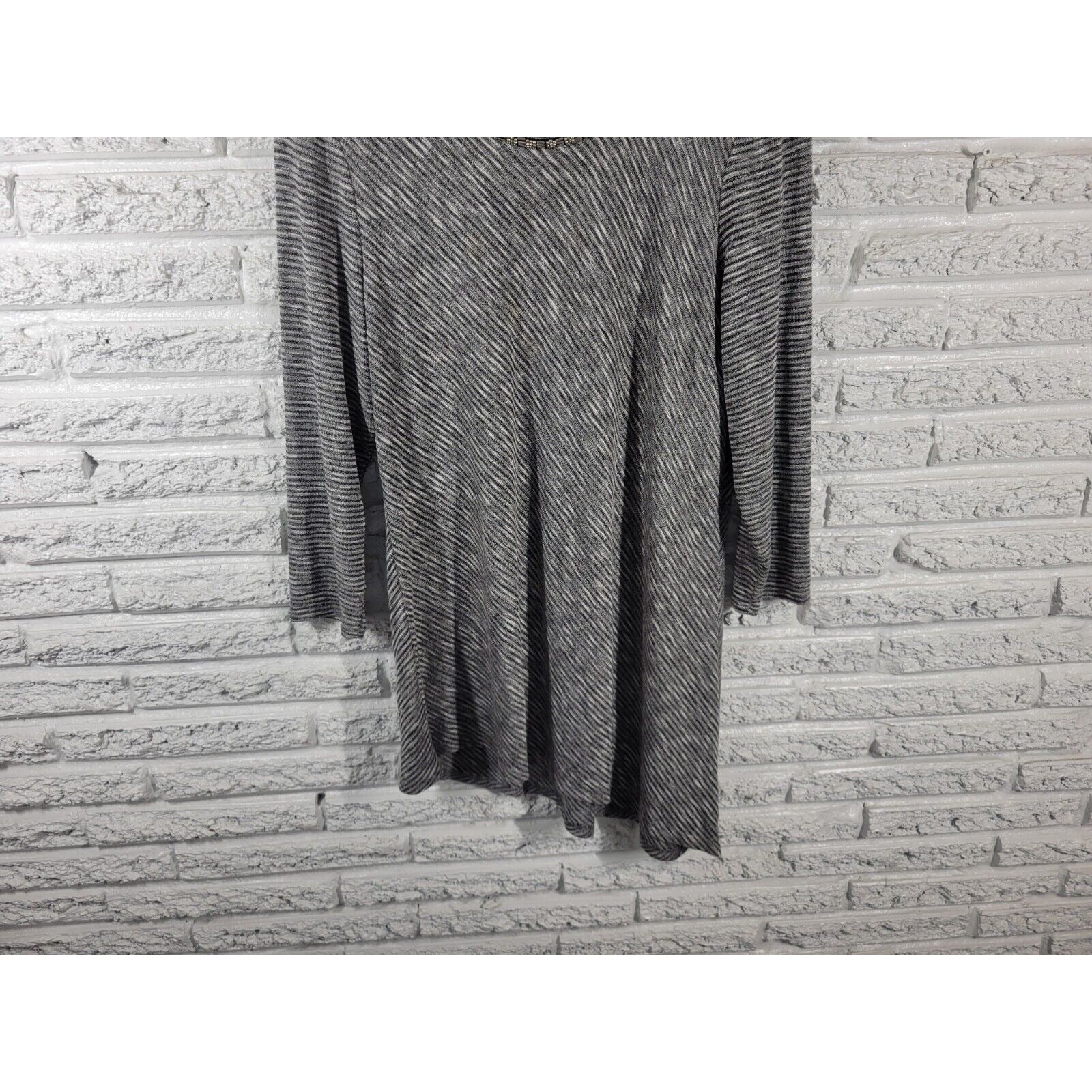 Dress Barn Womens Top Extra Large XL Tunic Knit Black Stripe Asymmetric Beaded