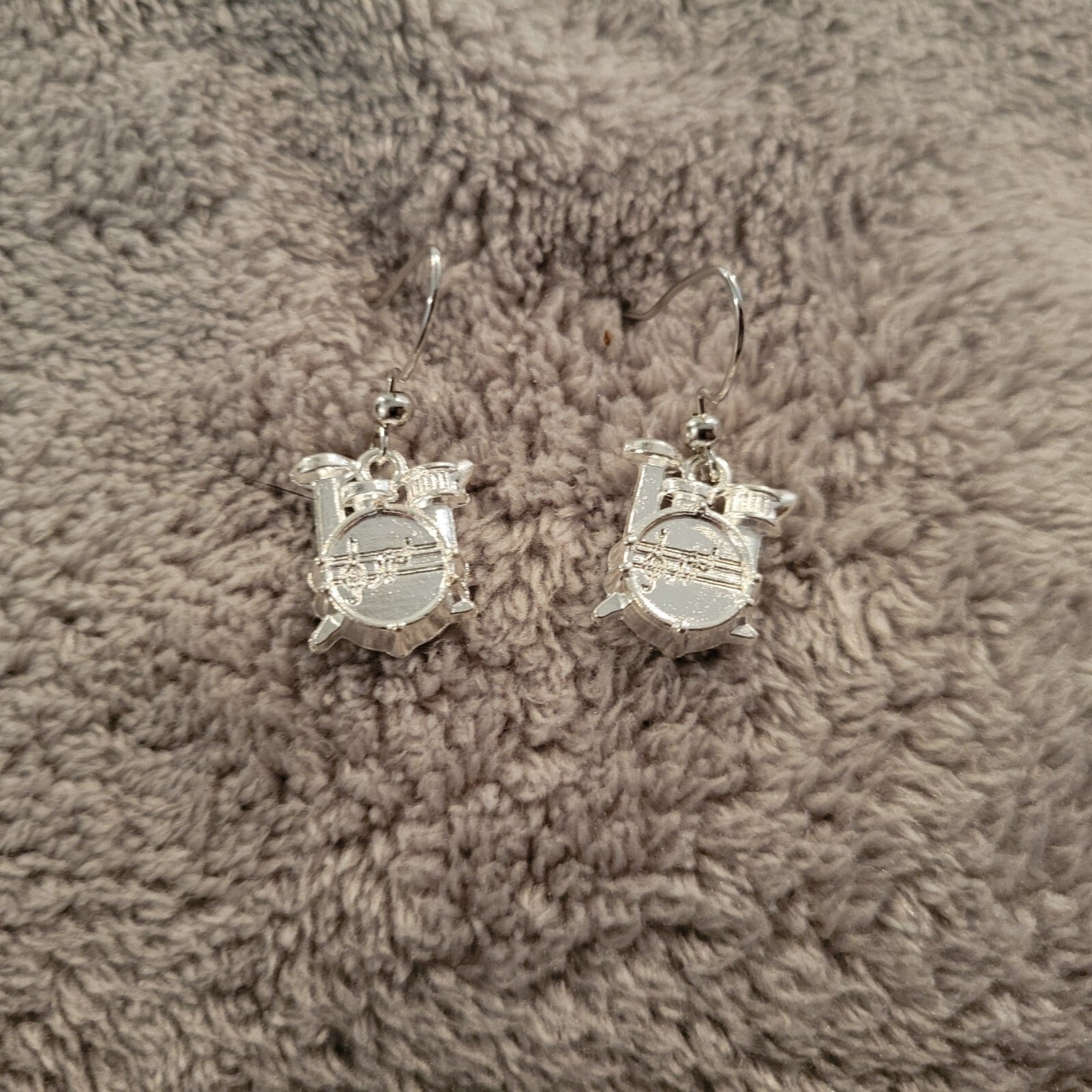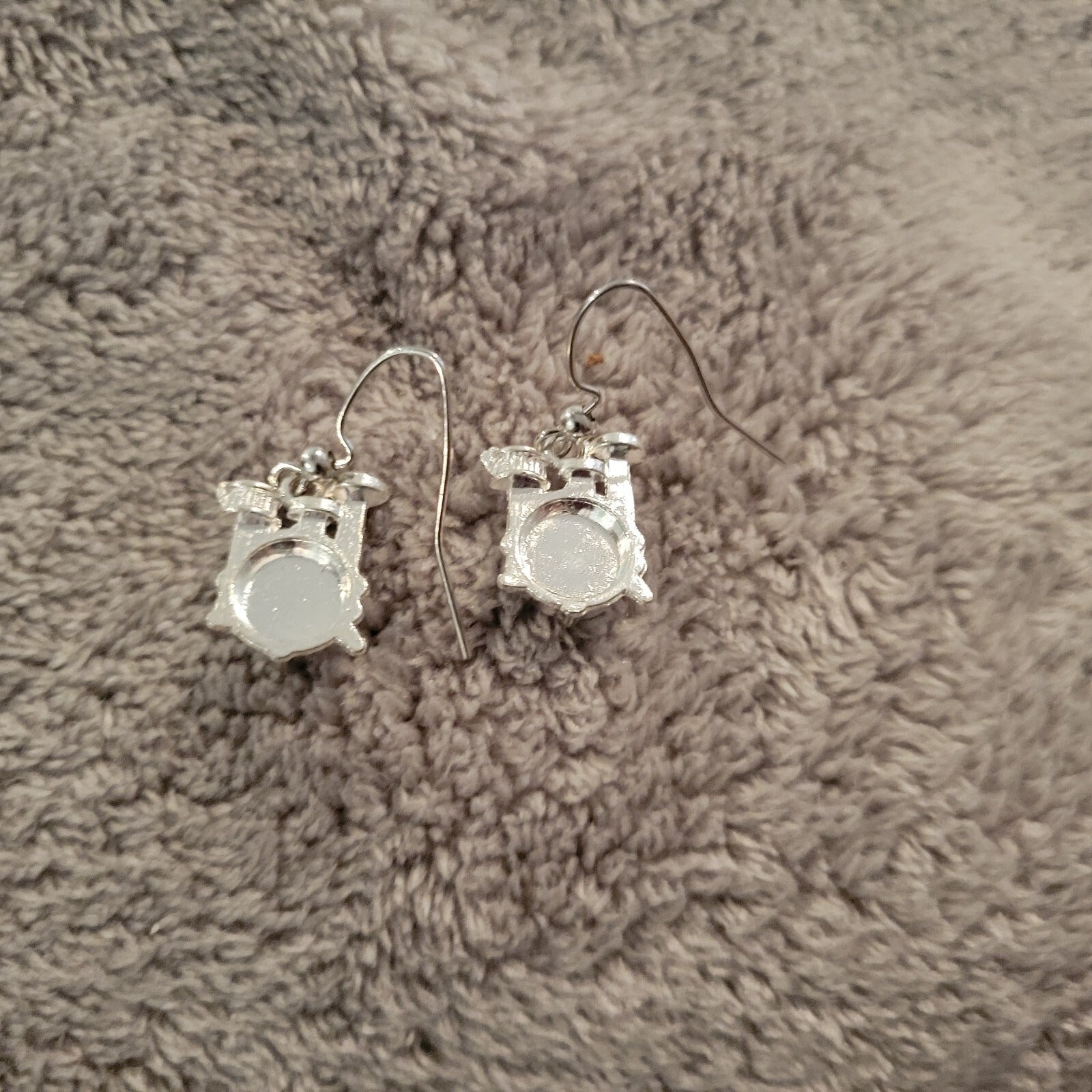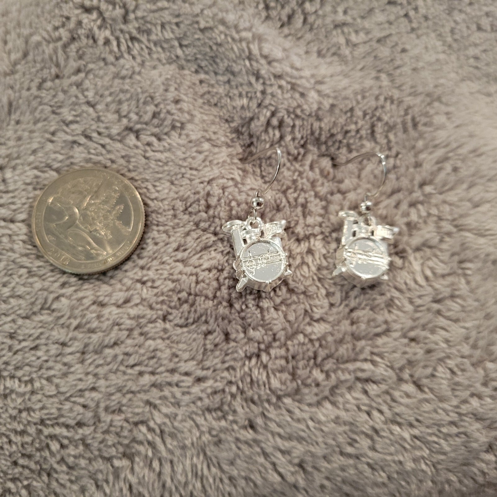 Drum Set Womens Earrings One Pair Music Silver Tone Alloy Band Percussion Dangle