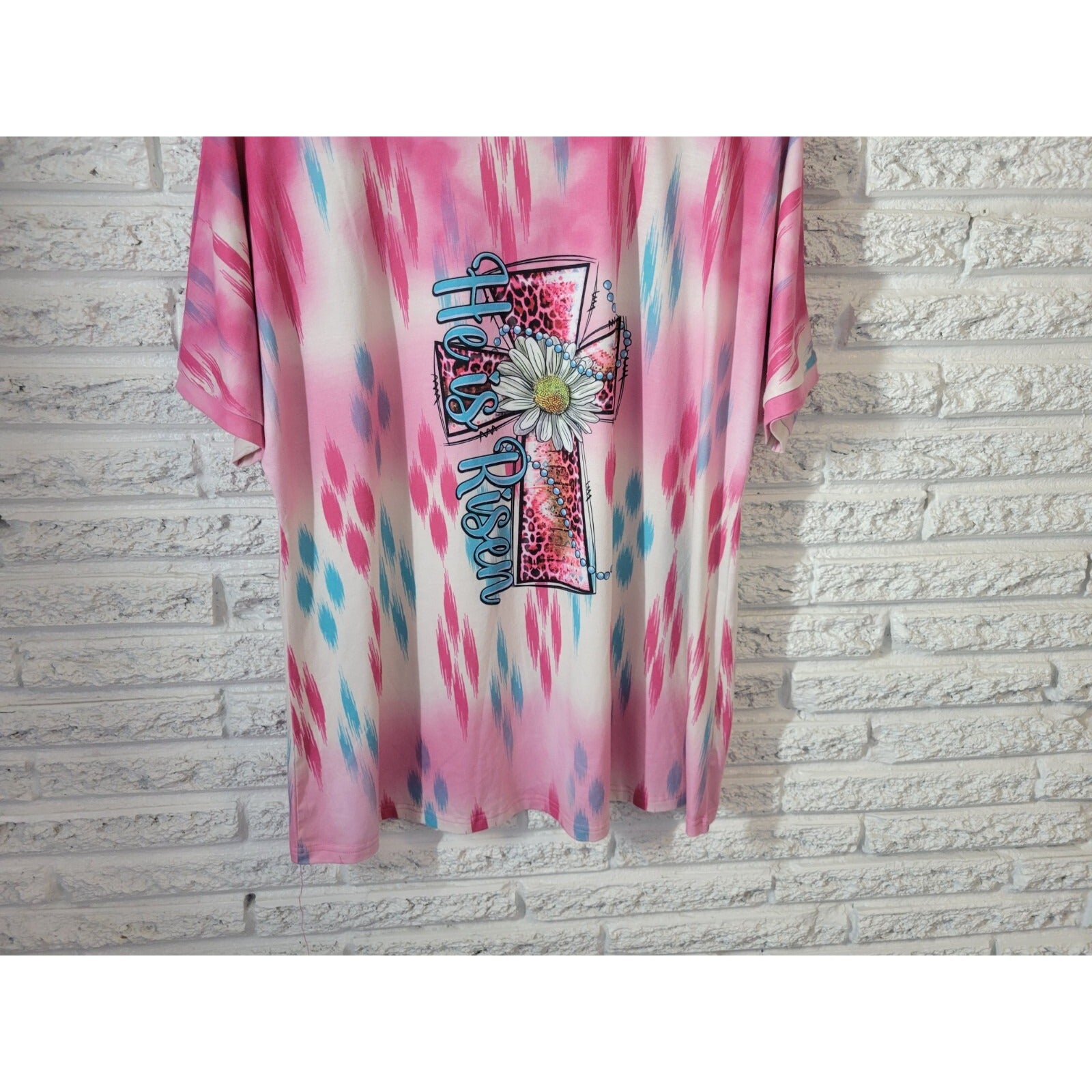 Easter Southern Stitch Women Top Extra Large XL Tee Pink He is Risen Cross Daisy