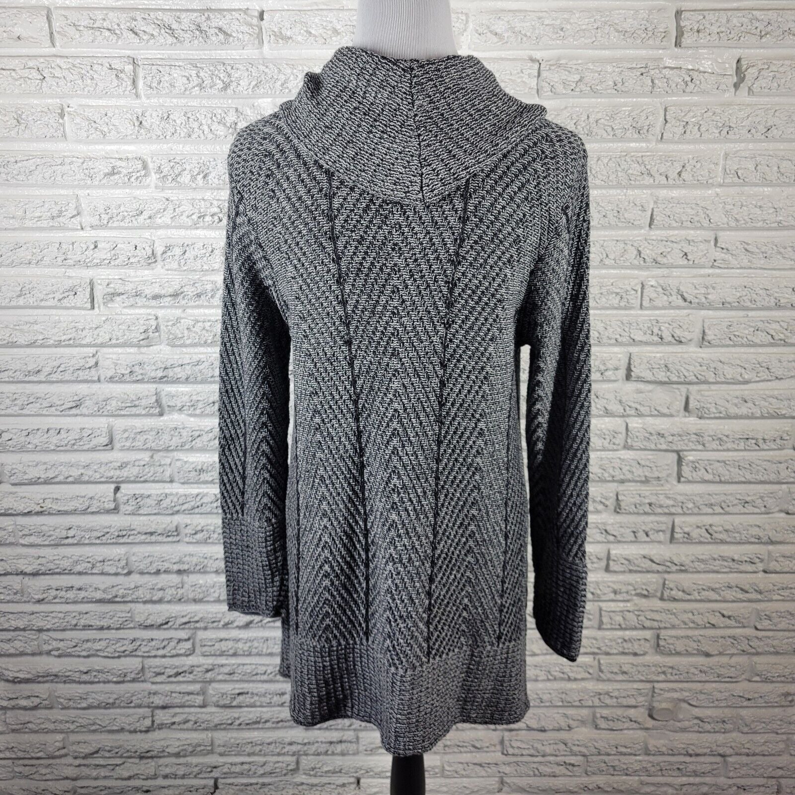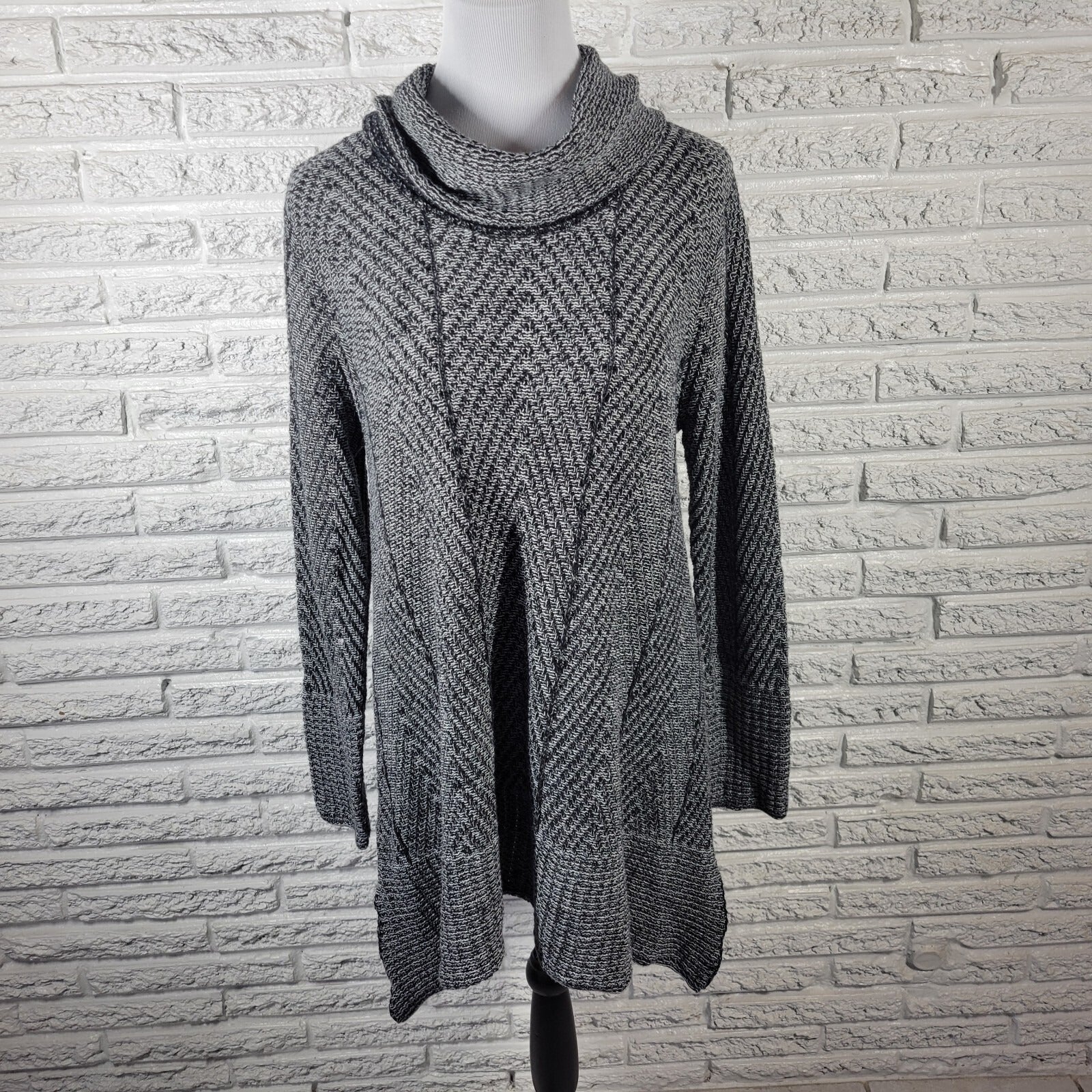 Eight Eight Eight Womens Sweater XL Tunic Cowl Neck Black Marled Office Cotton