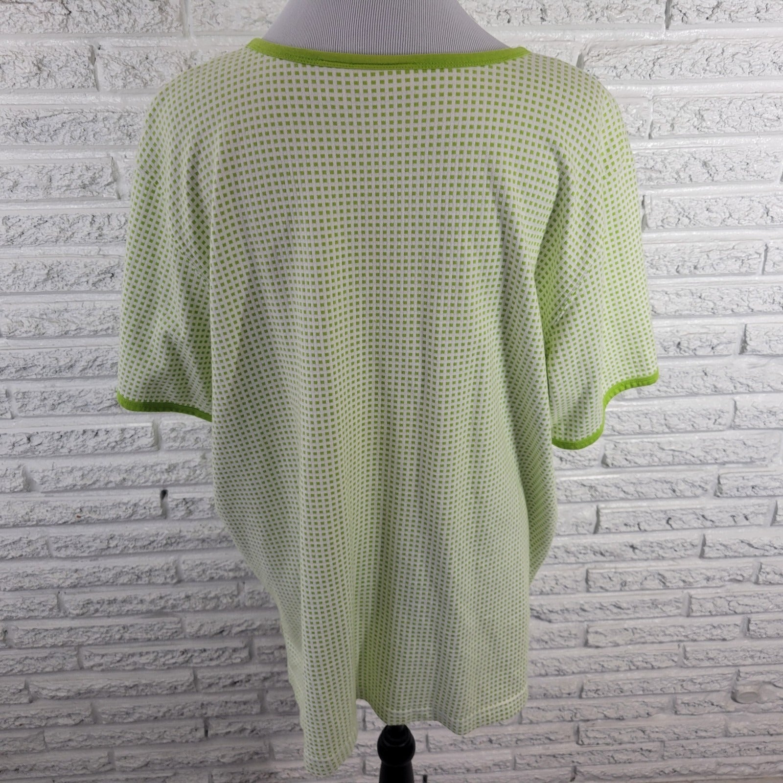 Elisabeth Liz Claiborne Womens Top 2 2X Plus Zip Up Green Tiny Squares Cotton