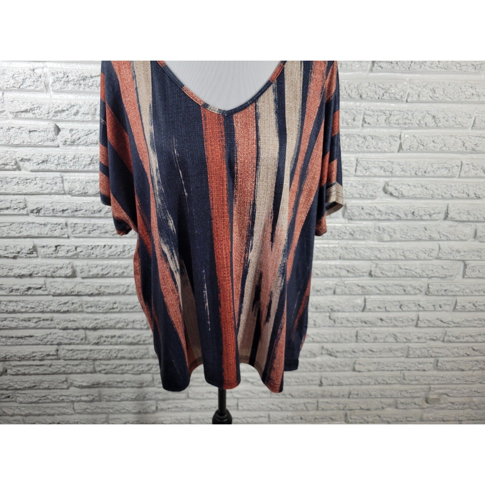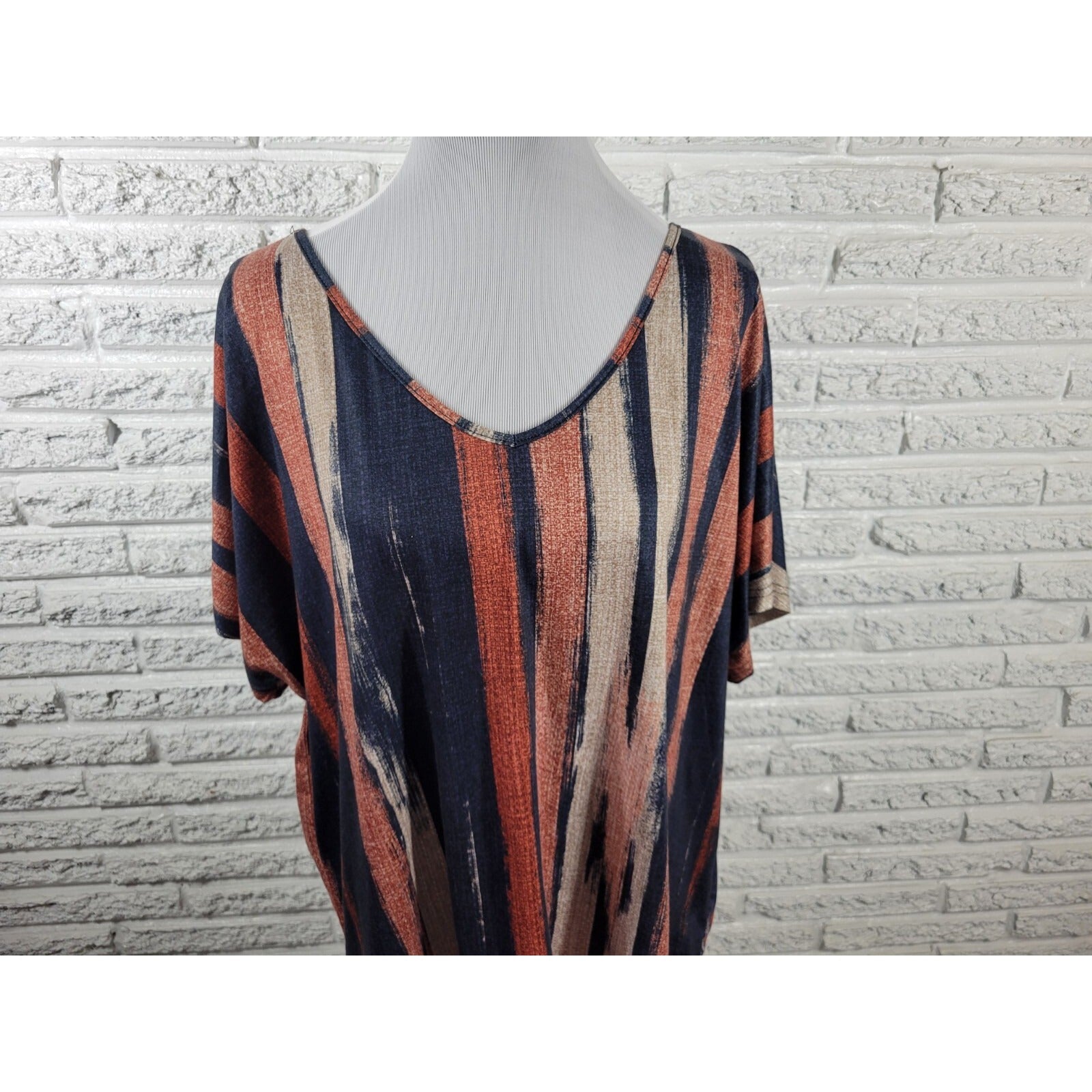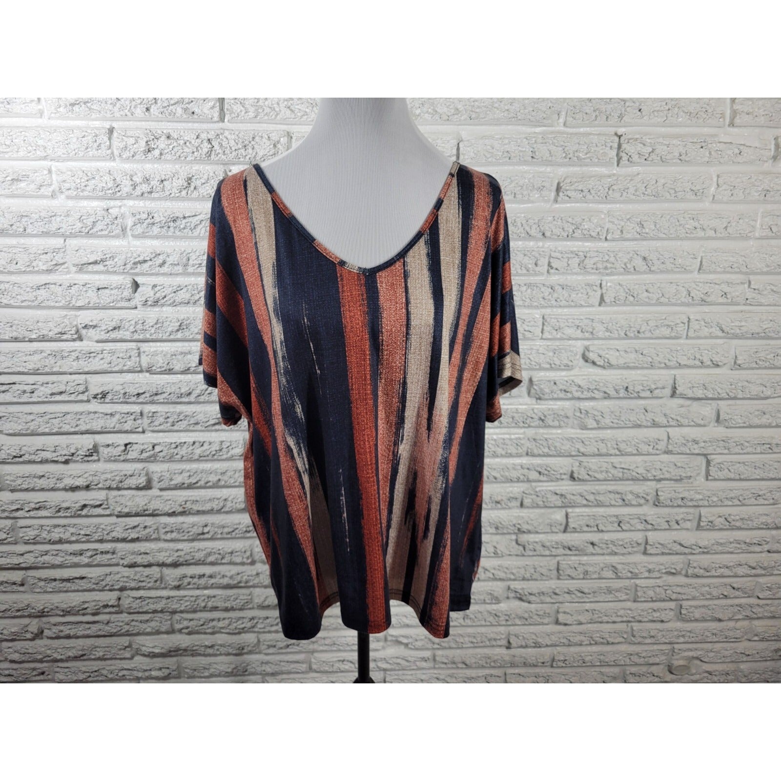 Emery Rose Women Top 1XL Plus Tee Cap Sleeve Poly Blend Earth Tones Brown Stripe