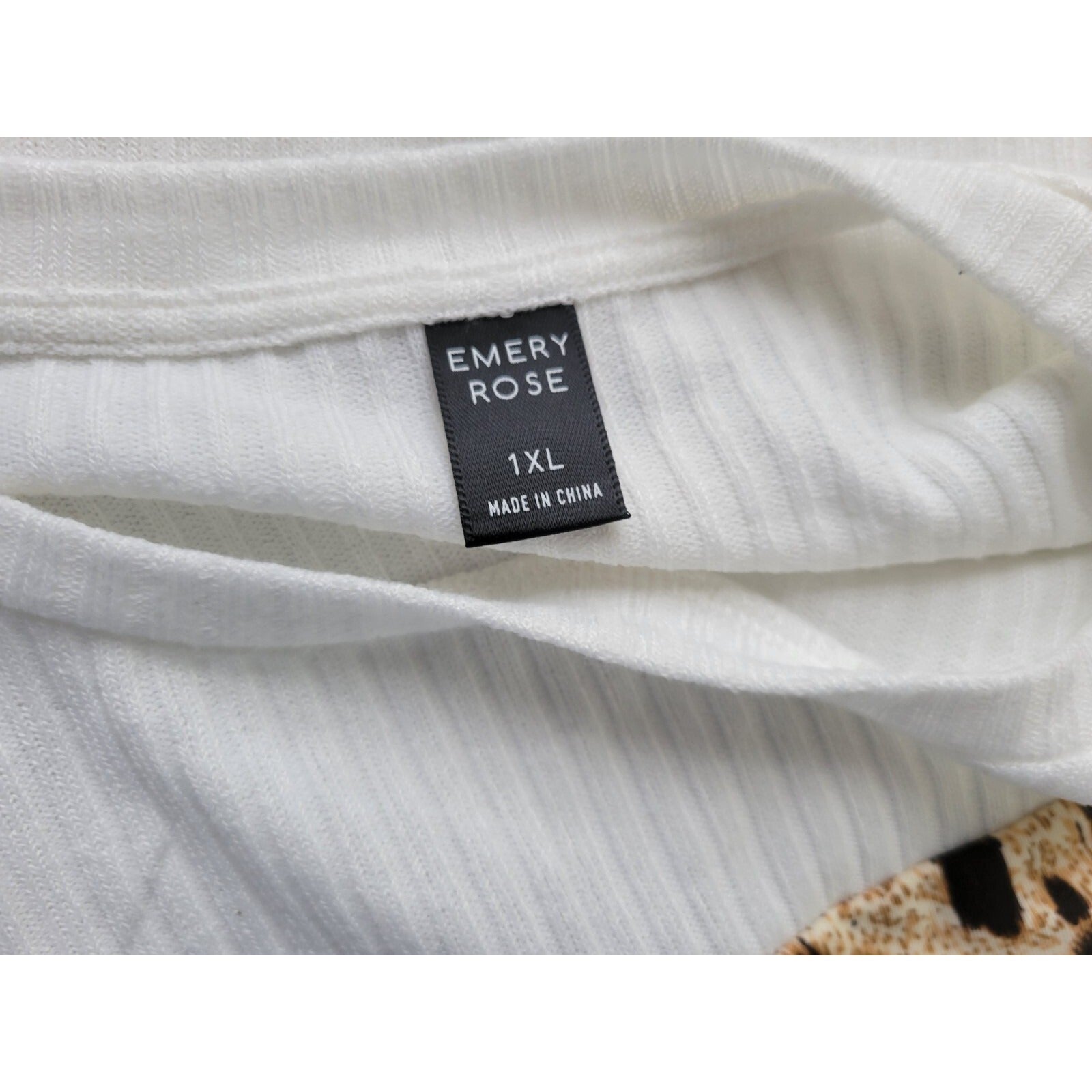 Update your wardrobe with this stylish and trendy Emery Rose women's top. The top comes in a size 1X, with long sleeves and a crew neckline. It features a tight-knit pattern of animal print in a beautiful brown color.   This lightweight sweater is perfect for any casual occasion OR SLEEPING and can be worn in any season. It is made of high-quality knit fabric that is machine washable and easy to care for. The TOP has a regular fit and is designed to stretch, making it comfortable and stylish. Add this top to your collection today and make a fashion statement.