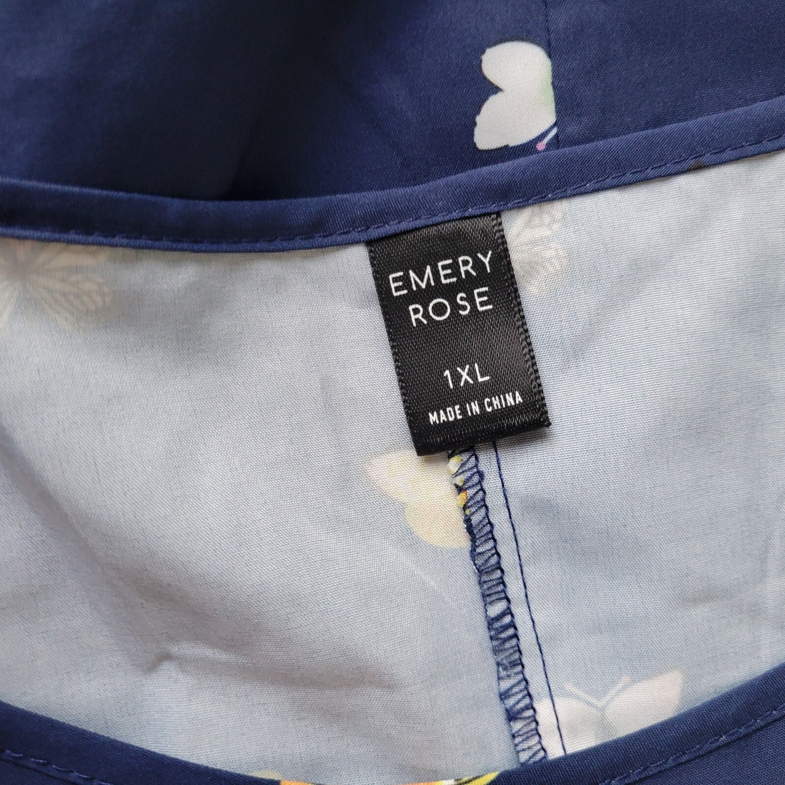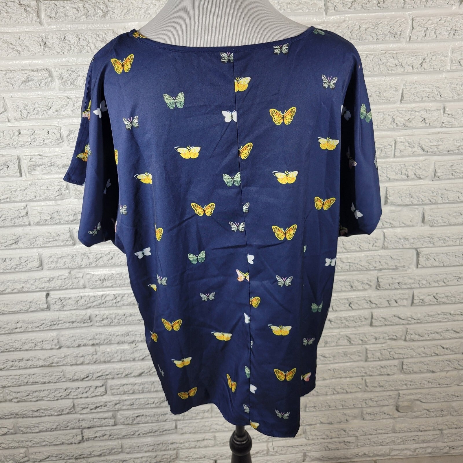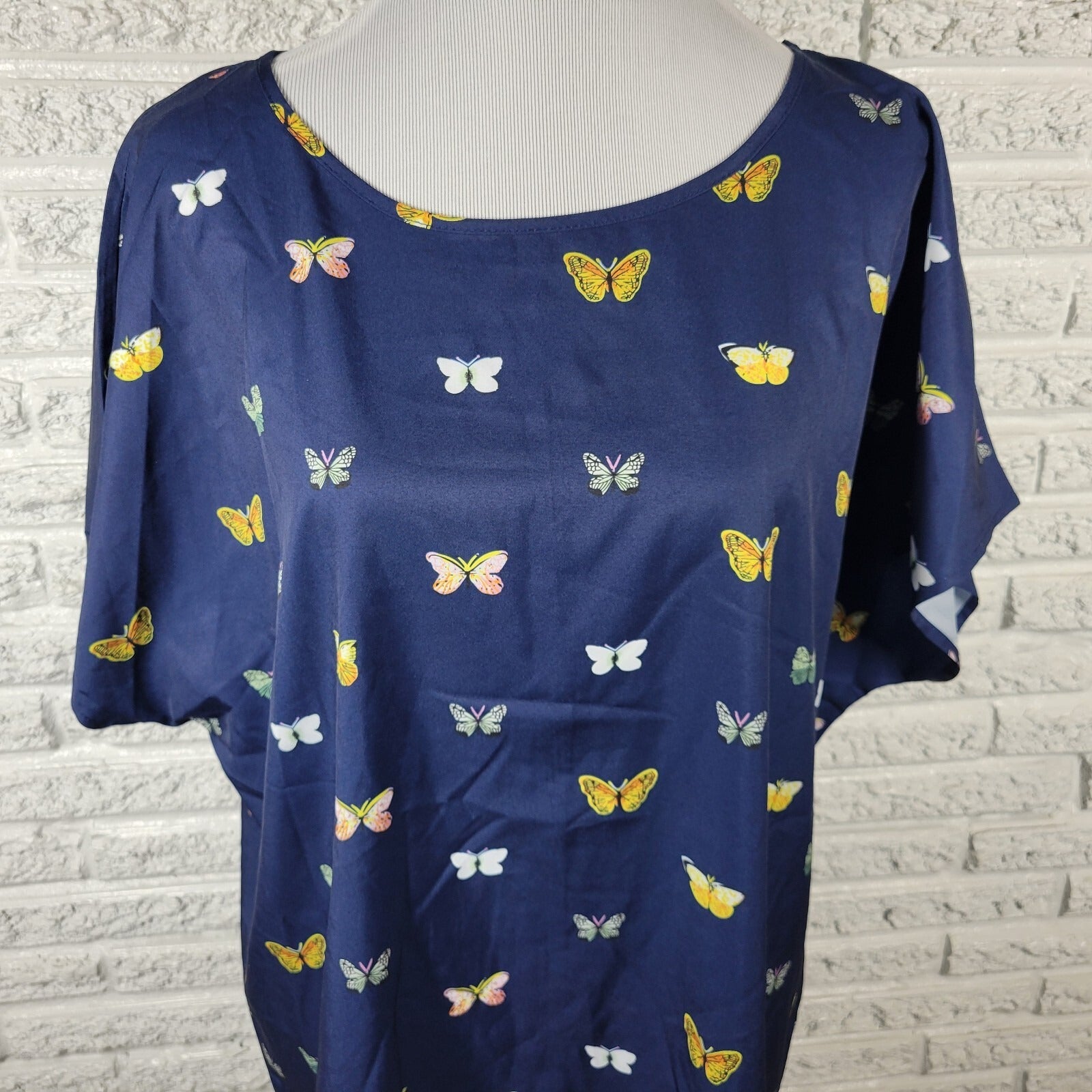 Emery Rose Womens Top 1XL Short Sleeve Blue Butterflies Lightweight Poly Blend