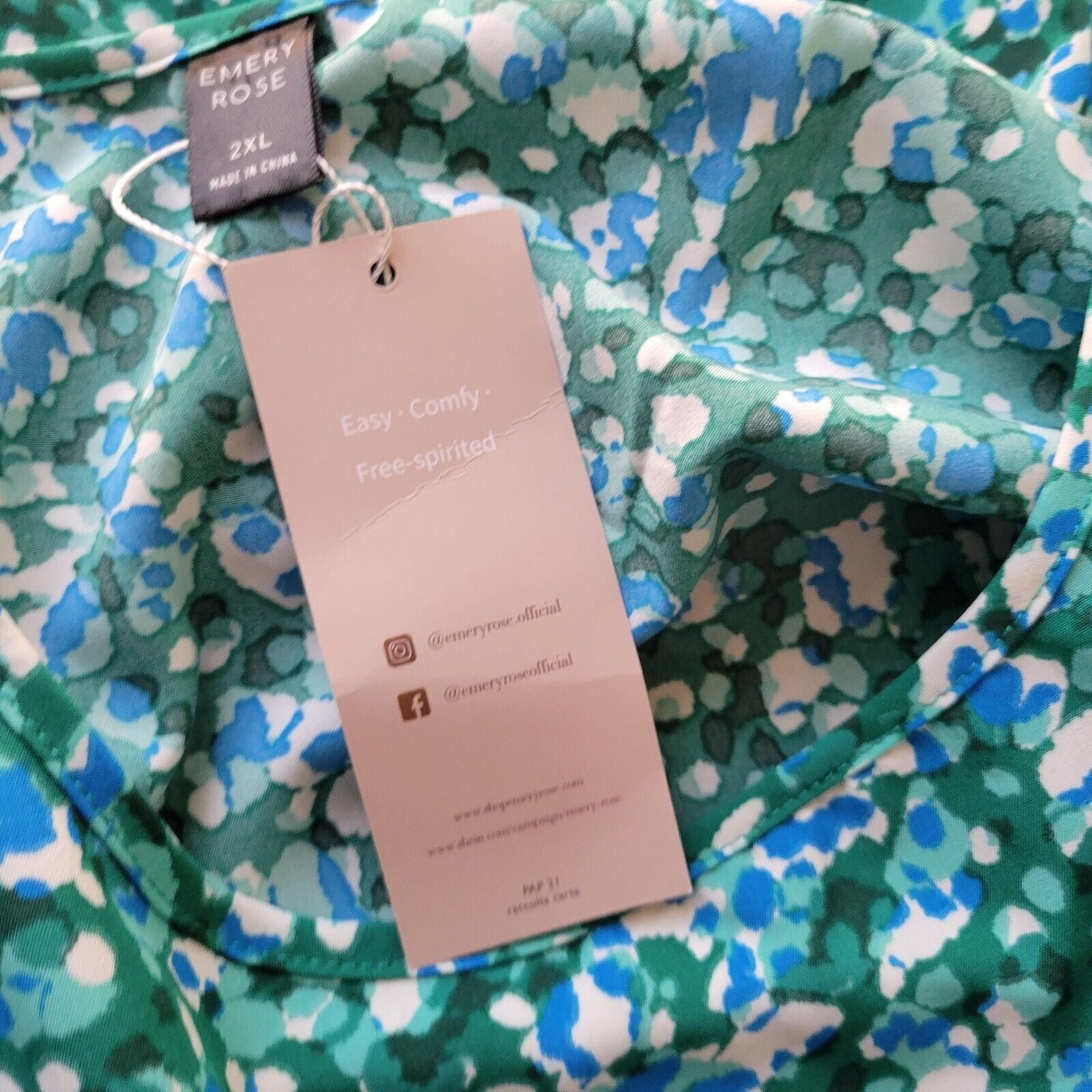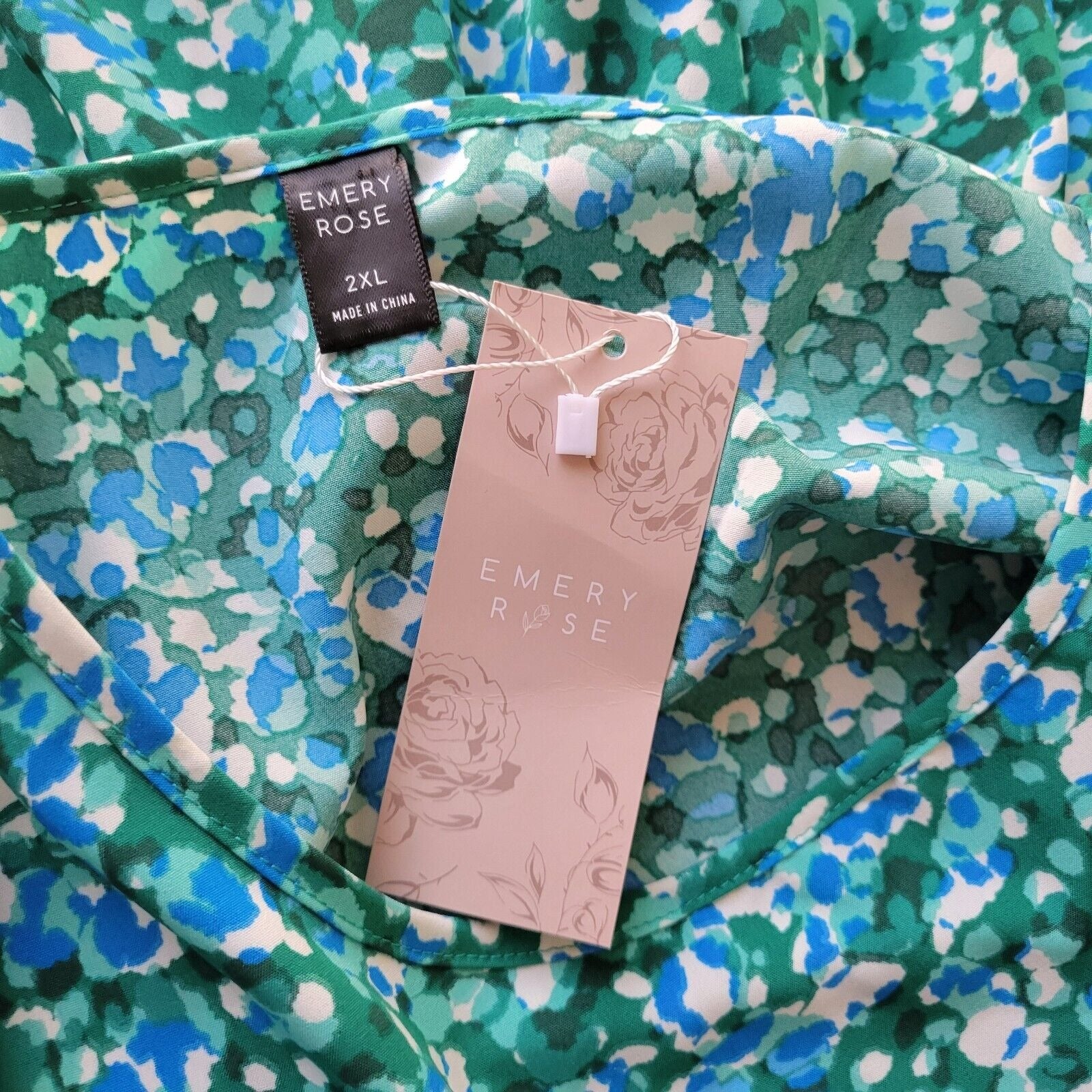 Emery Rose Womens Top 2XL Plus Tunic Baby Doll Green Watercolor Poly Blend