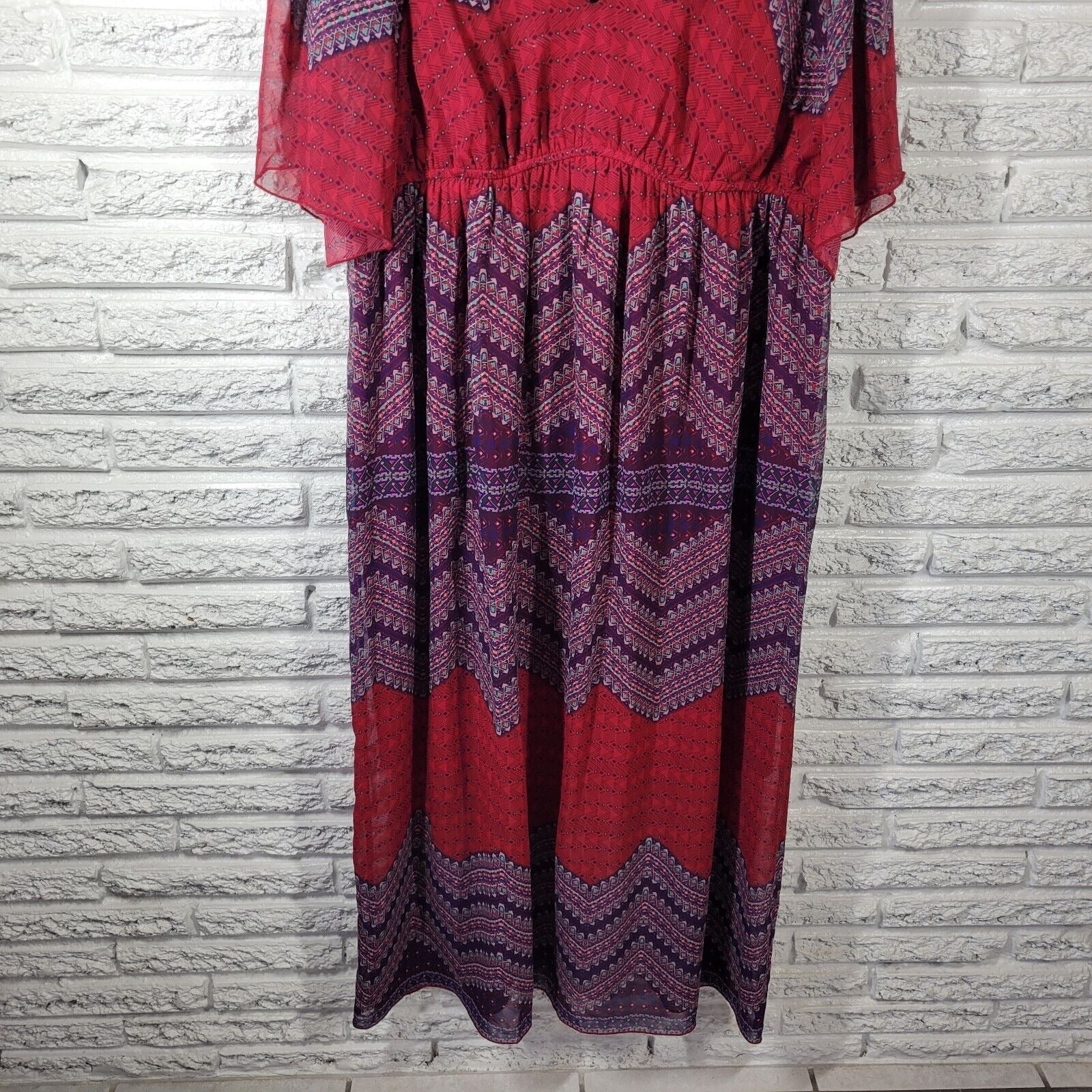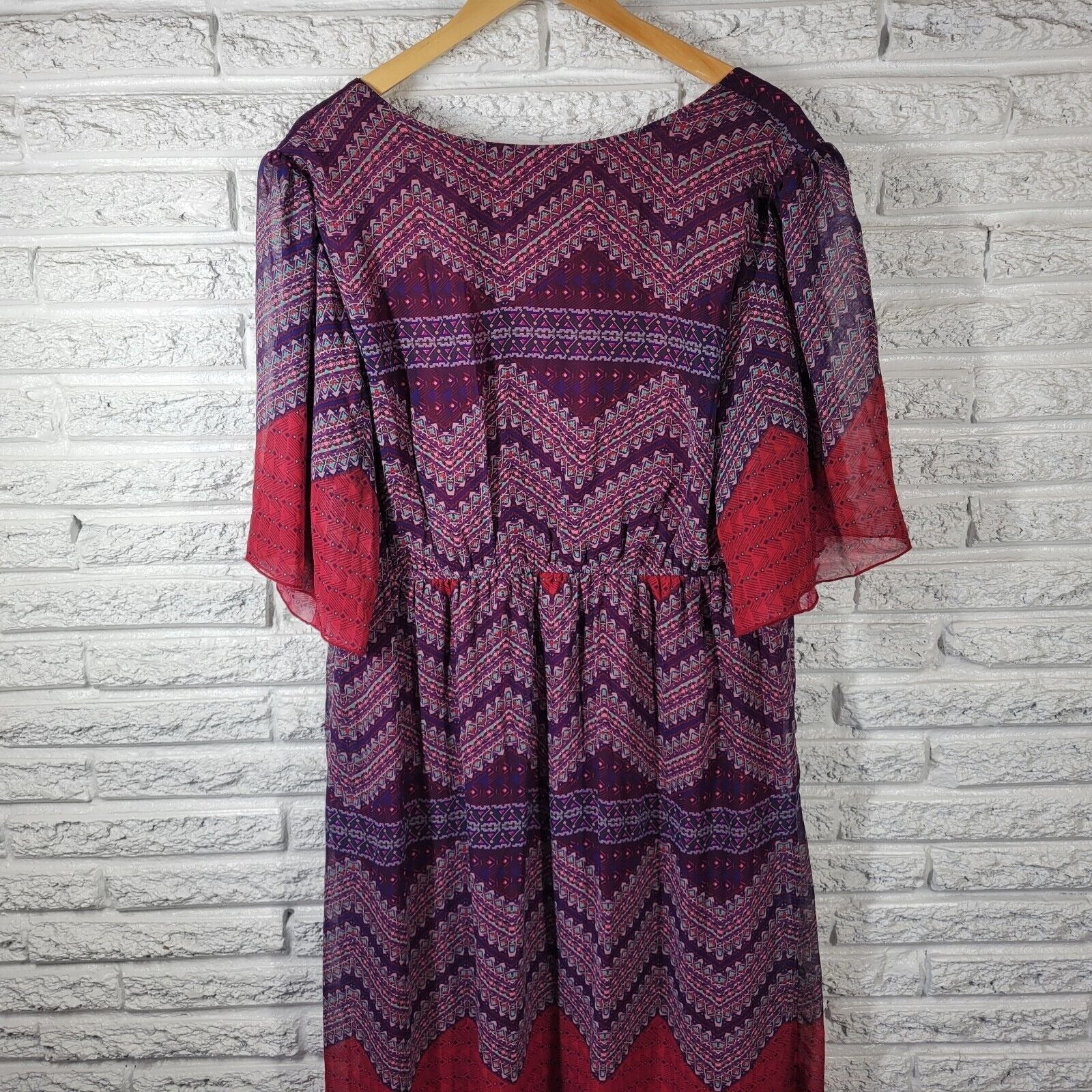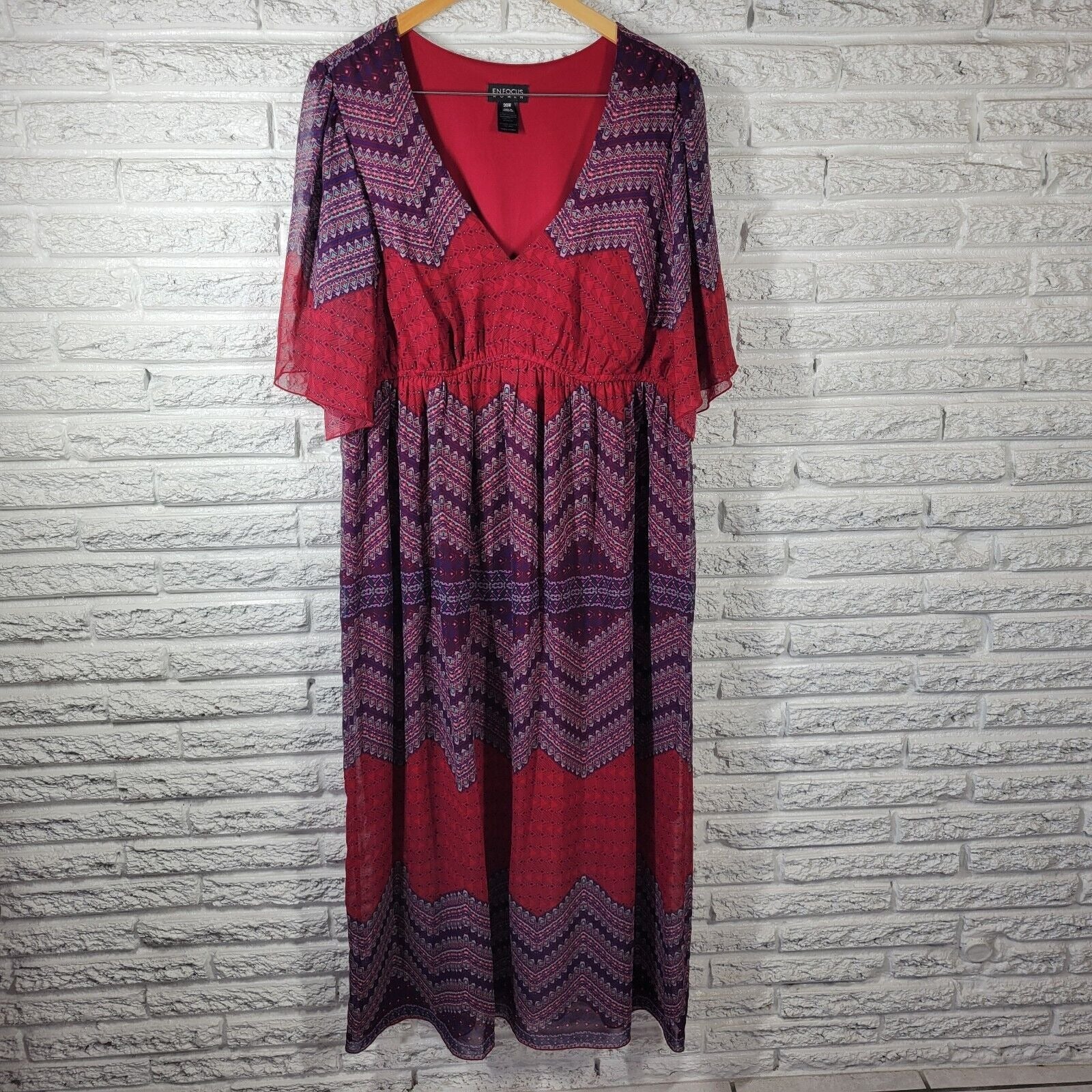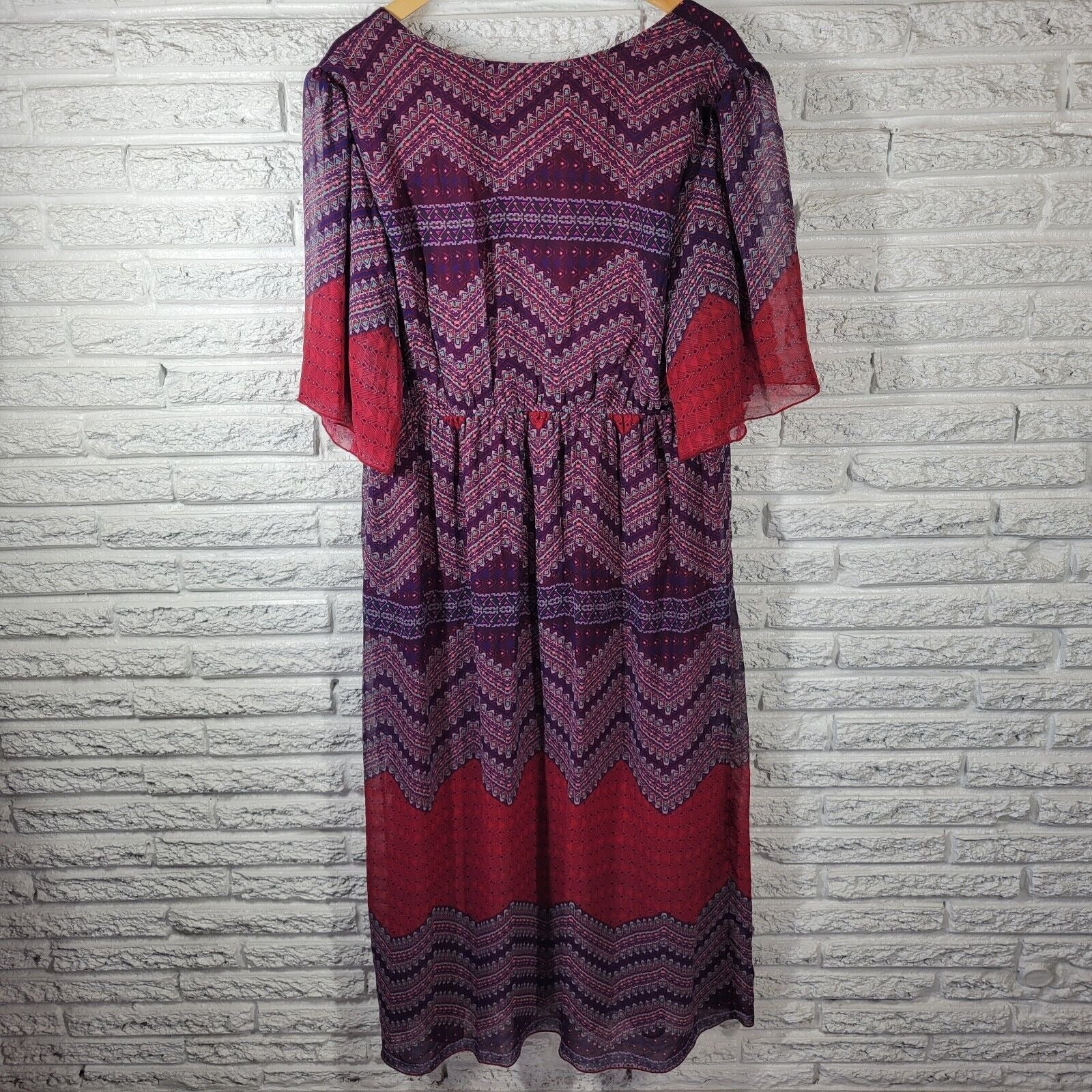 Enfocus Womens Dress 20W Plus Midi Sheath Sheer Sleeve Purple Red Geometric