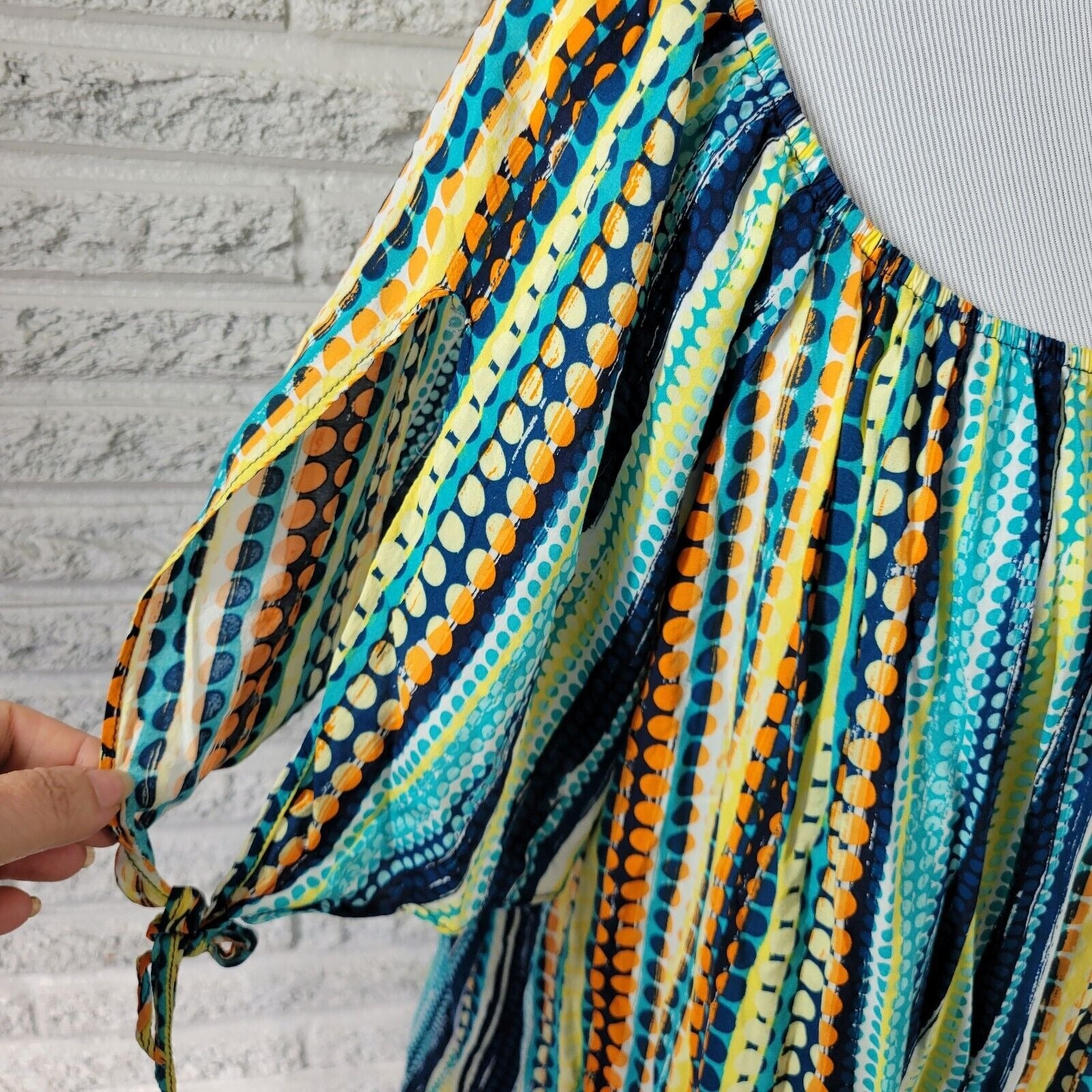 Est 1946 Womens Top 18W 20W On Off Shoulder Blue Geometric Ric Rac Lightweight