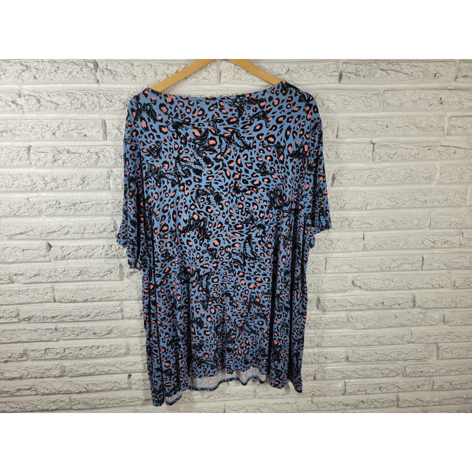 Evans Womens Top 30 32 Plus Tee Tunic Short Sleeve Blue Butterflies Casual