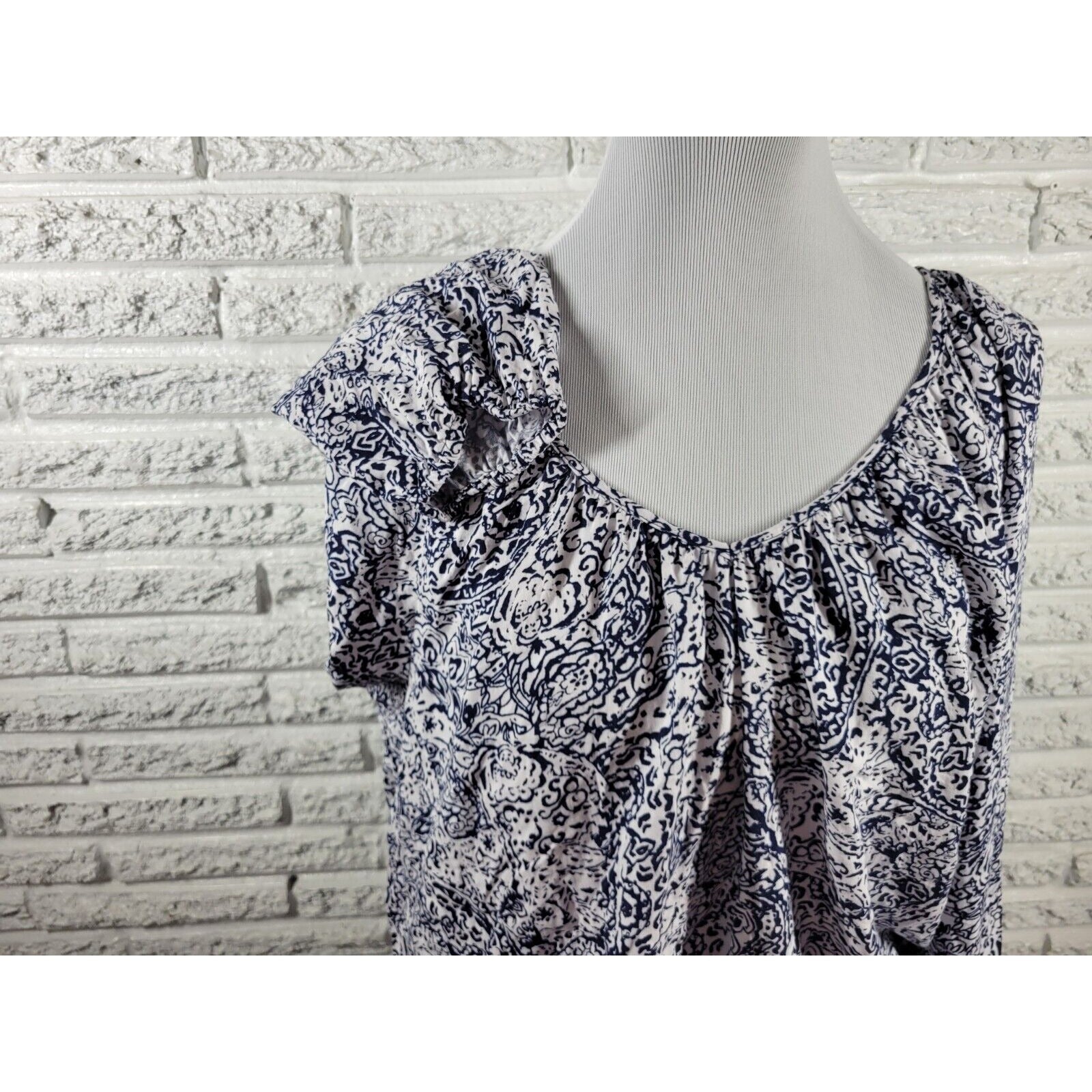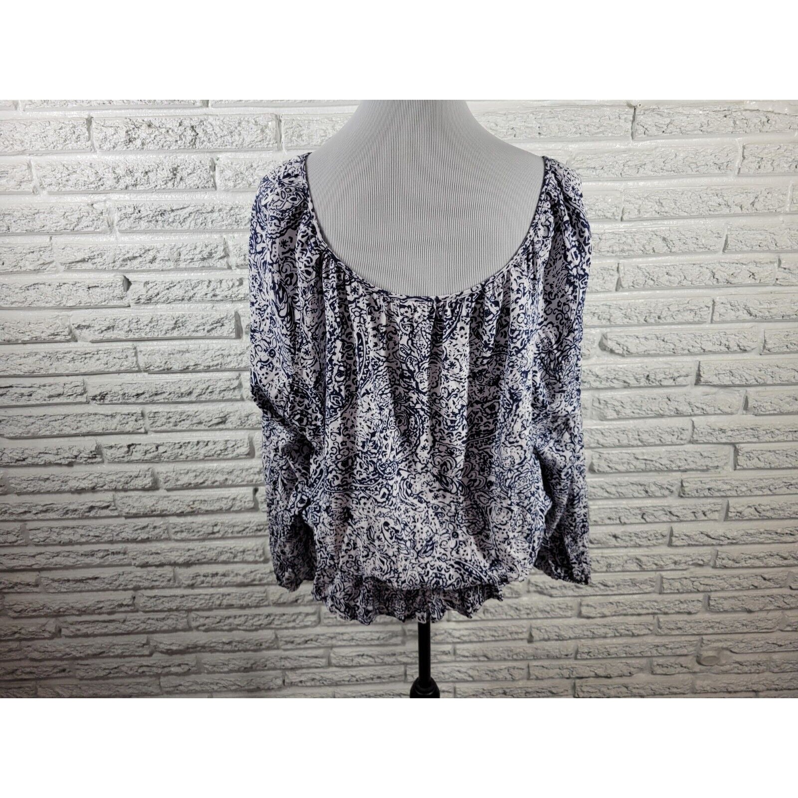 Faded Glory Women Top XXL 20 Long Sleeve Peplum Blue Floral Pleated Lightweight