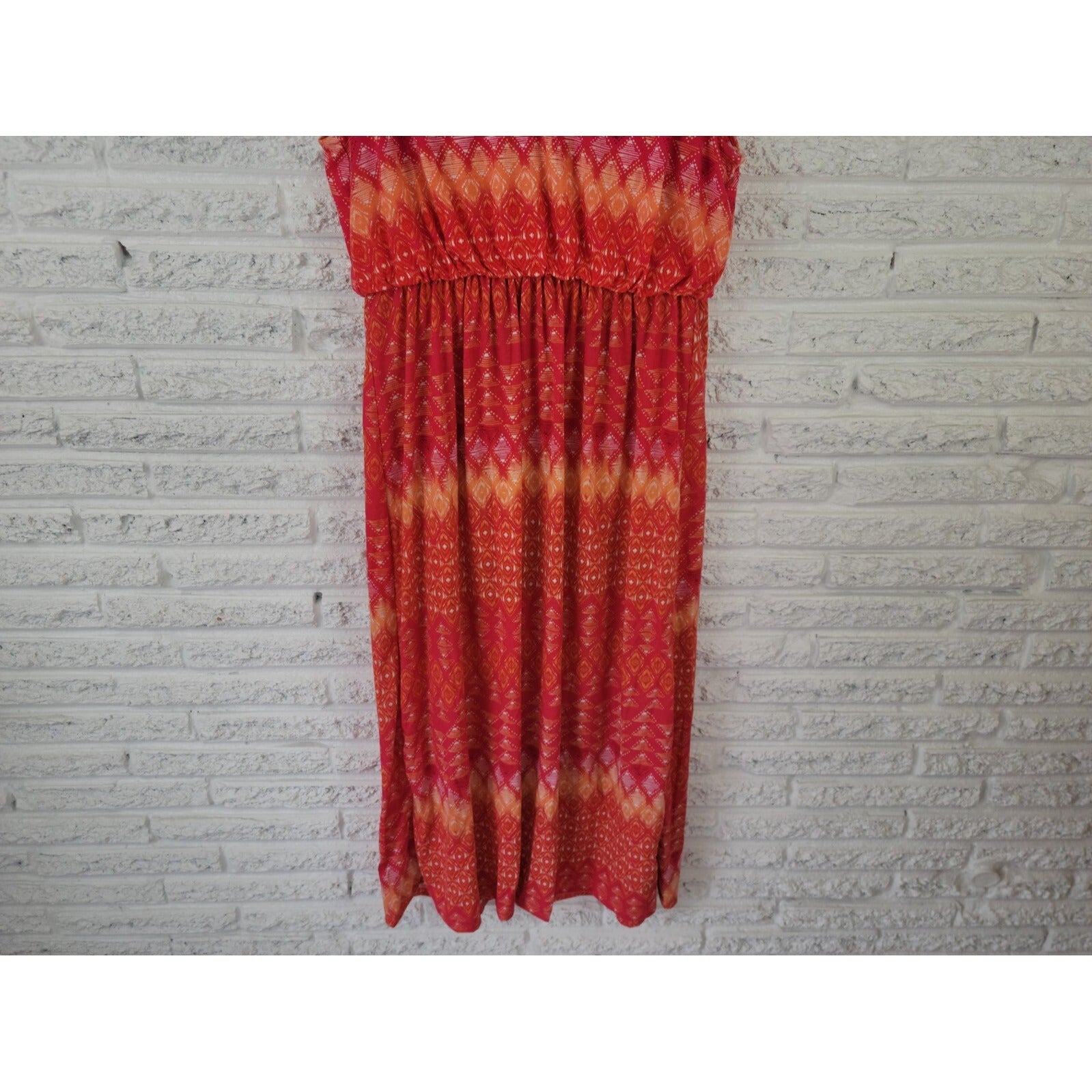 This Faded Glory women's dress is perfect for any casual occasion. The sleeveless tank sheath design features a beautiful red geometric pattern that will make you stand out. The dress is made from a comfortable polyester blend material that is machine washable and easy to care for. It has a V-neckline and pullover closure, making it convenient to wear. The dress is available in size 2X and is perfect for plus-size women. The dress is suitable for all seasons, including winter, summer, fall, and spring. It is a great addition to any wardrobe and can be worn for a variety of occasions.