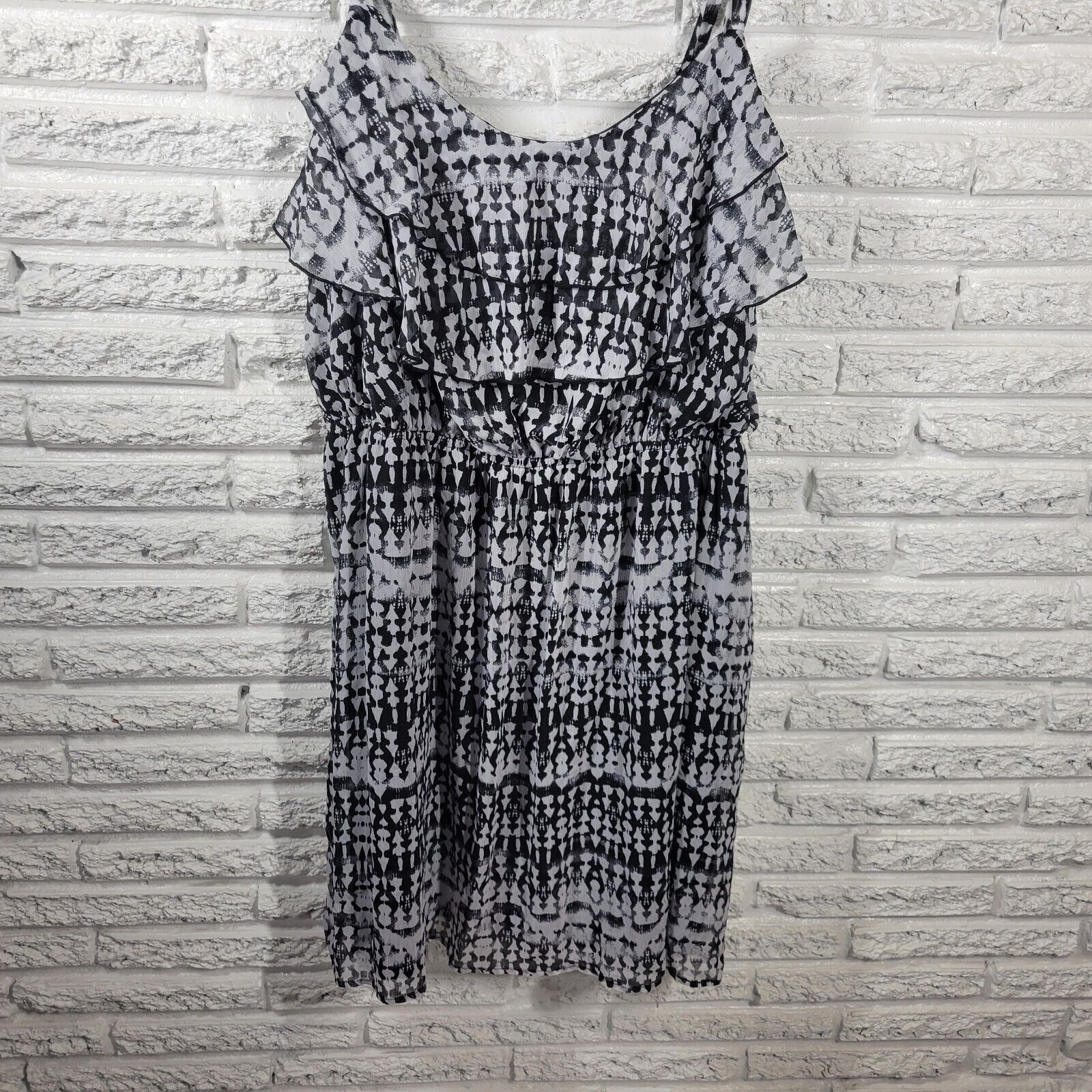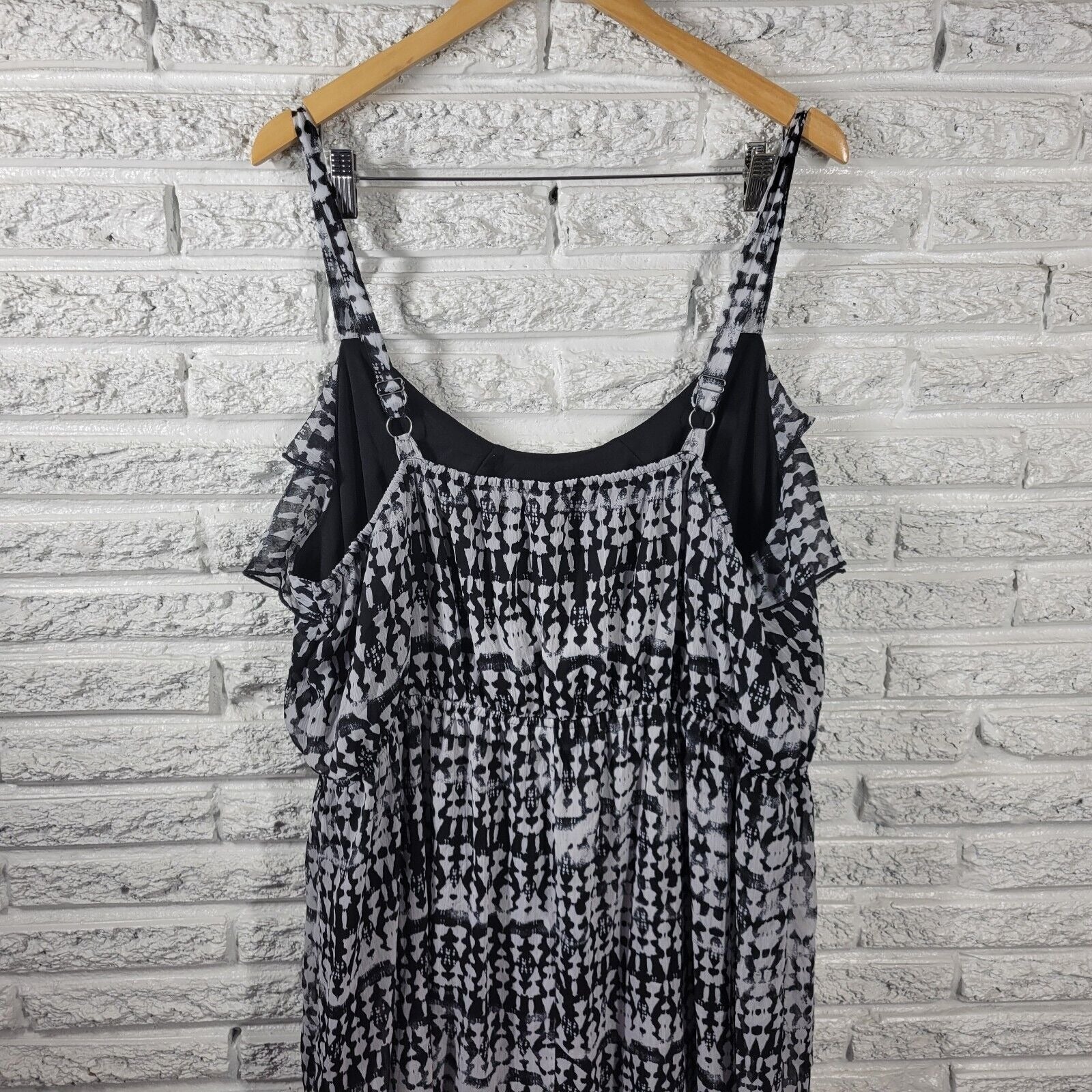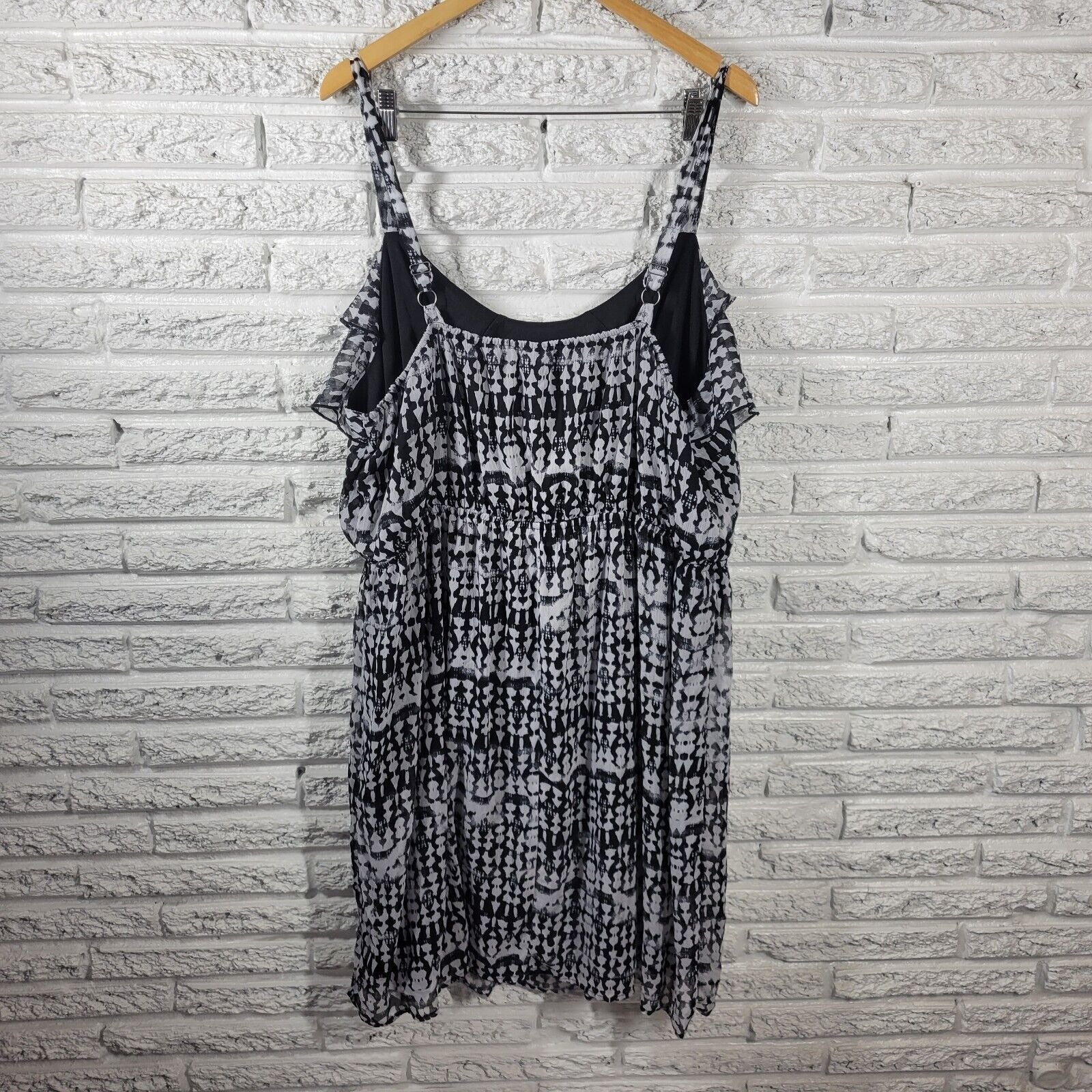 Faded Glory Womens Dress 4X Slip Sheath Adjustable Spaghetti Black Geometric